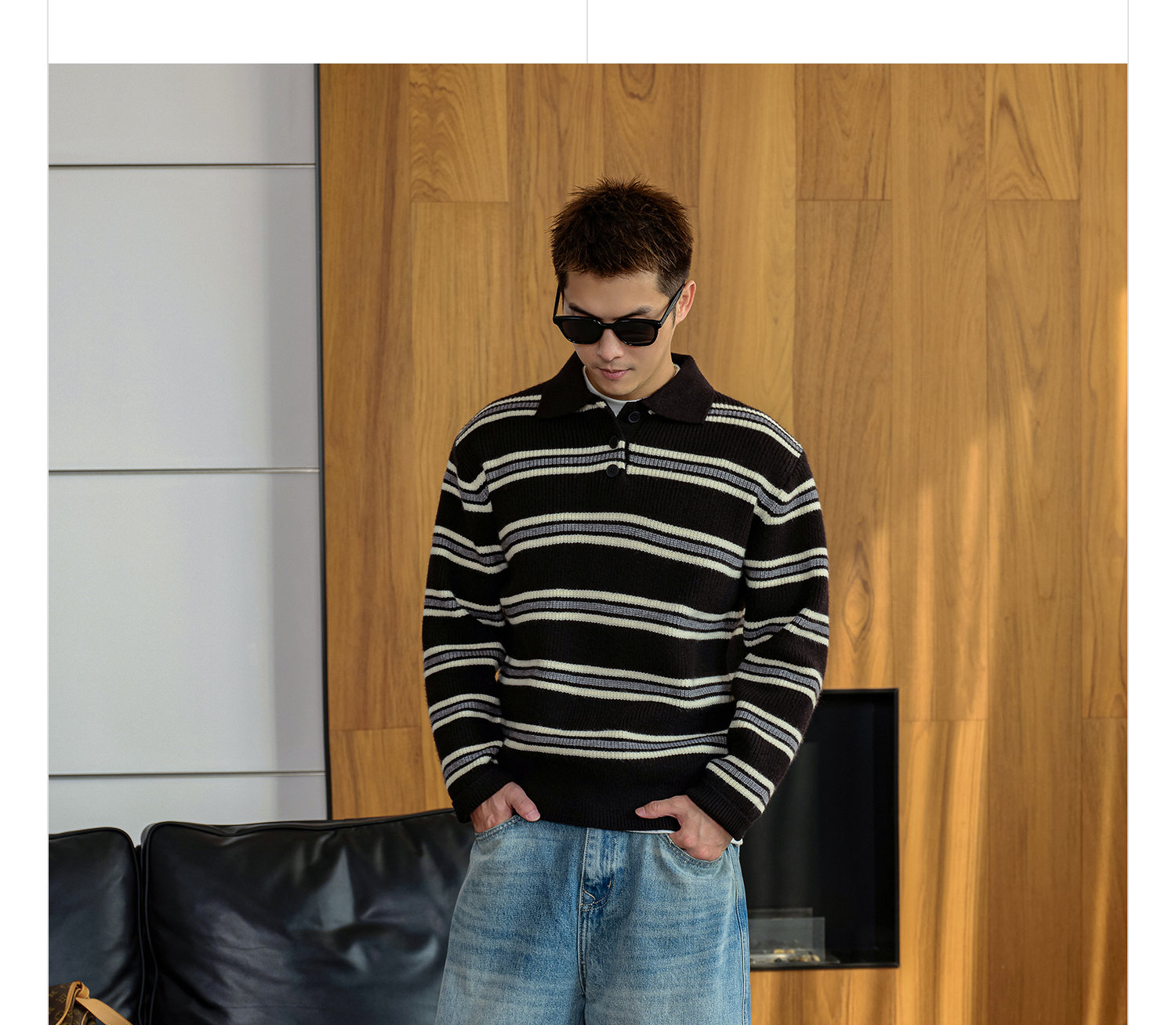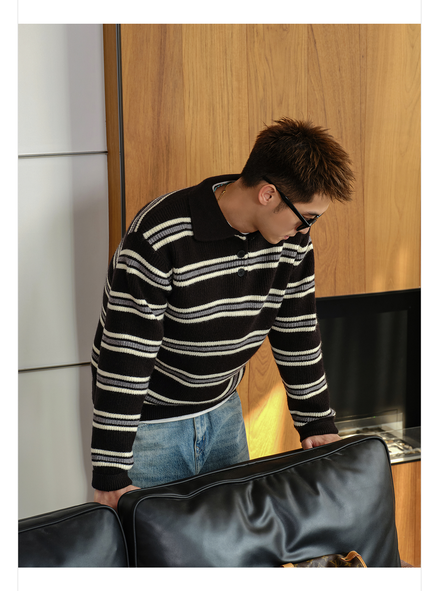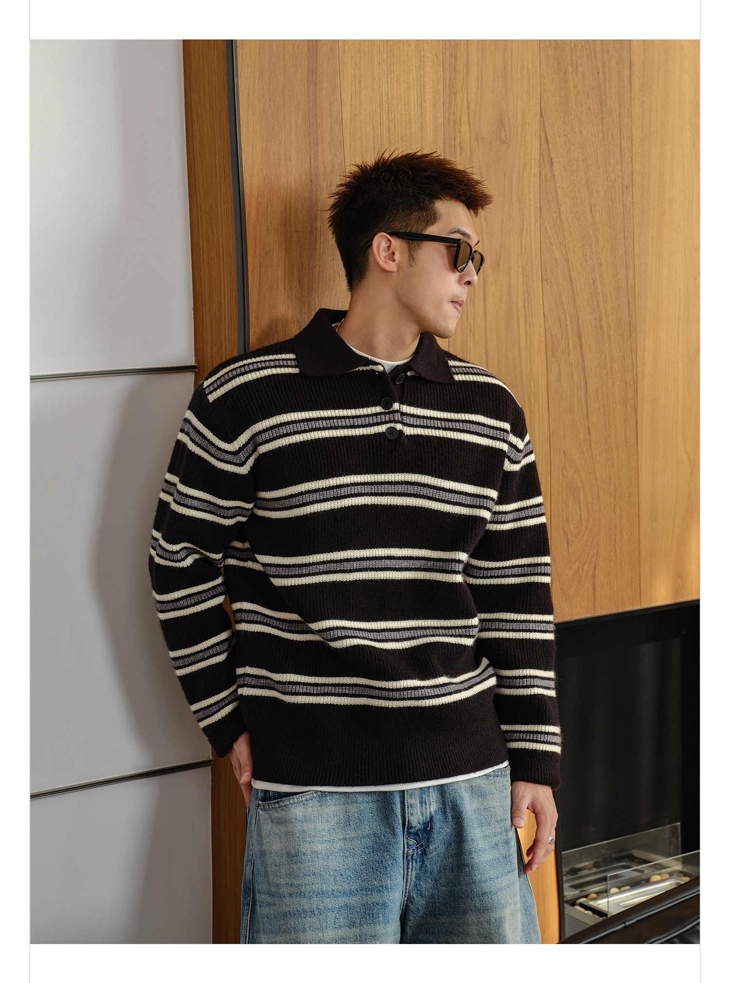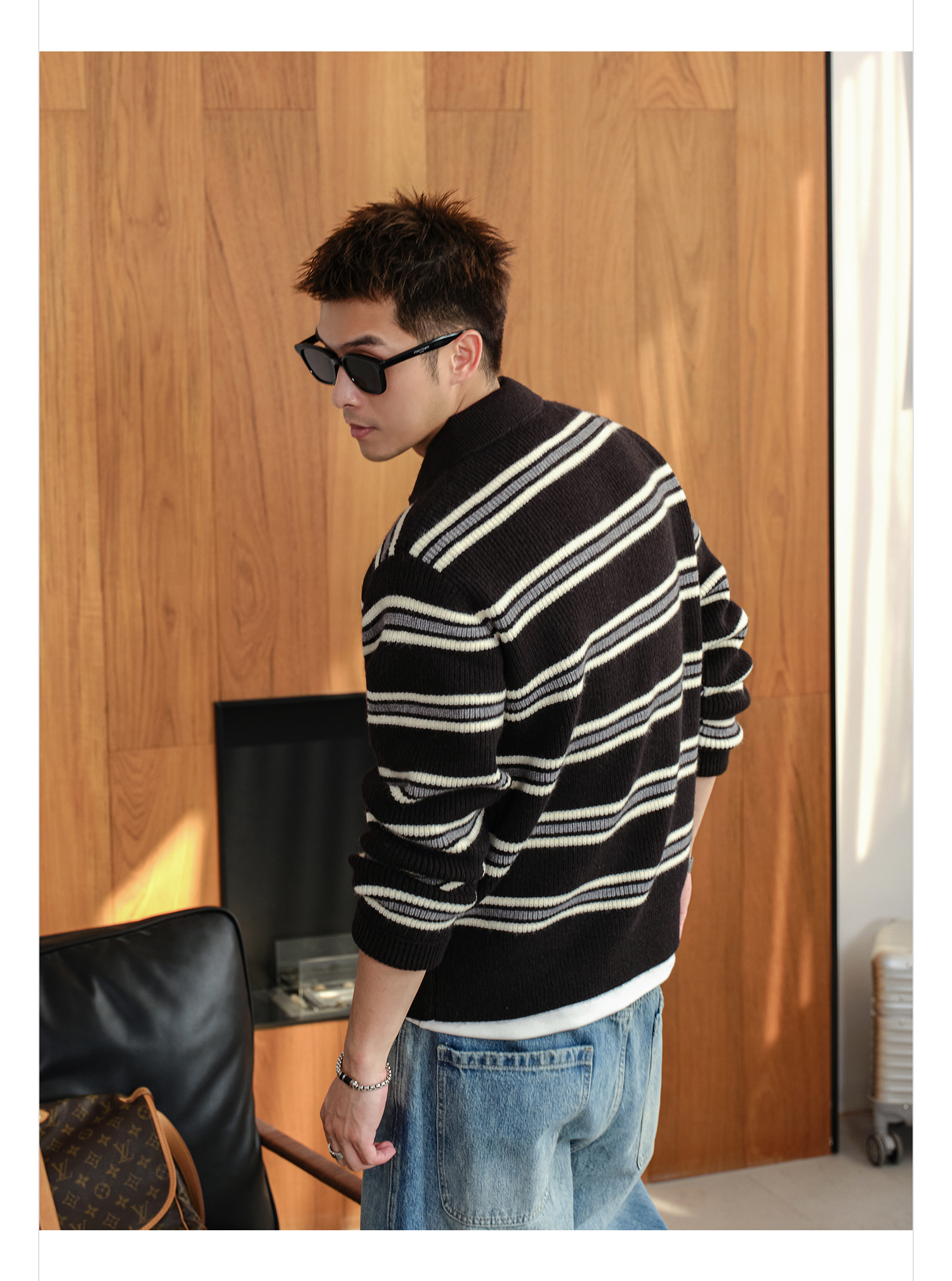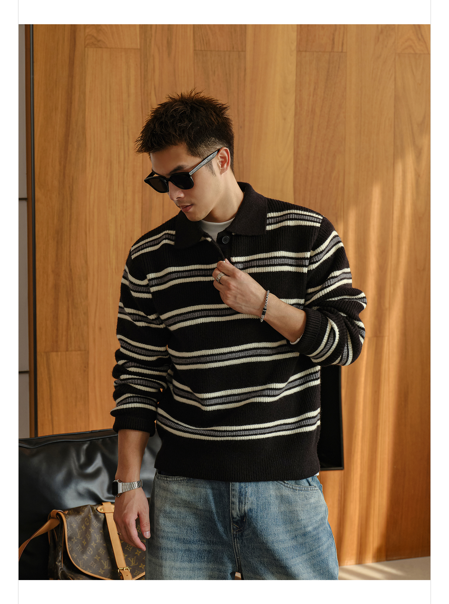 徐太浪【900g重磅 撞色条纹】亨利领毛衣男秋冬男装高级感针织衫