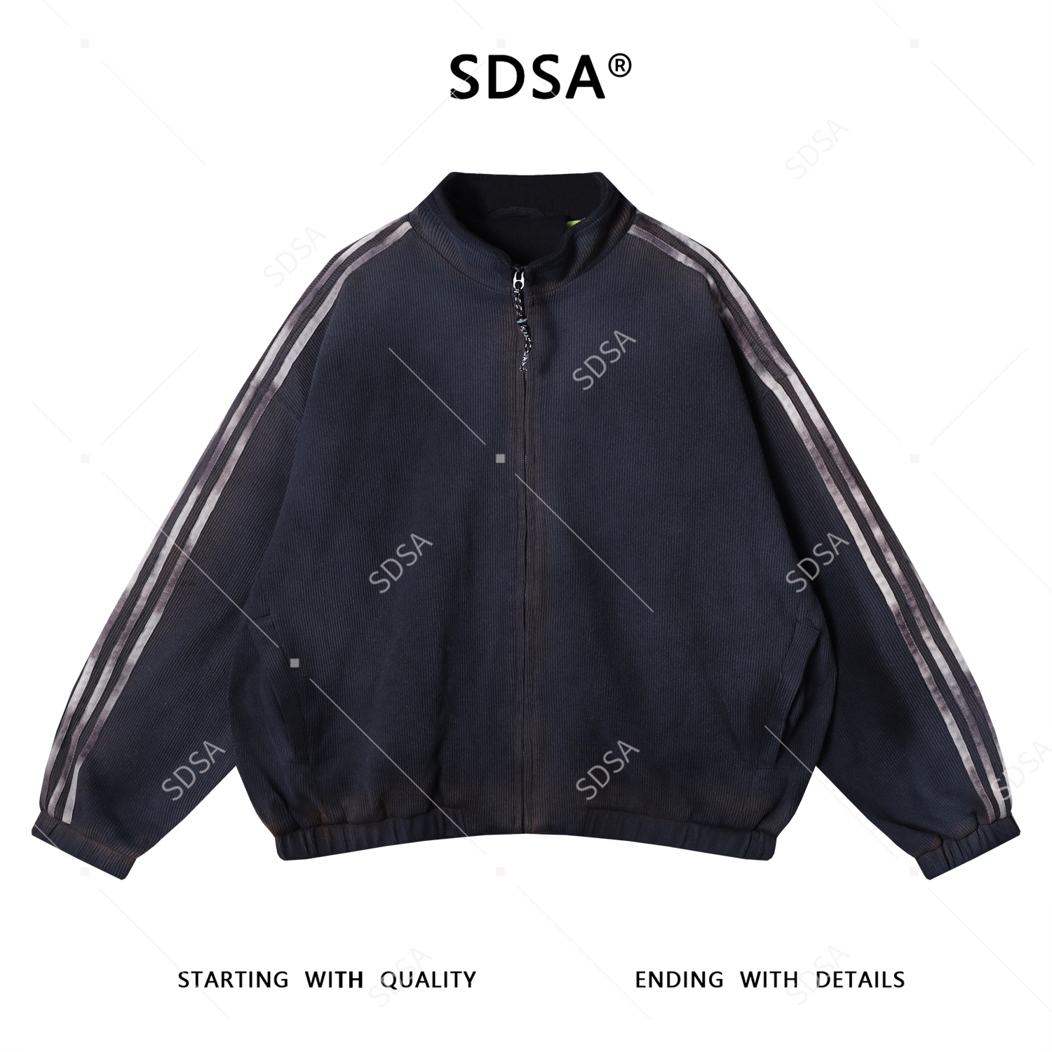 38292SDSA男士秋冬新款痞帅男装潮牌肌理感三条杠立领拉链卫衣外套百搭