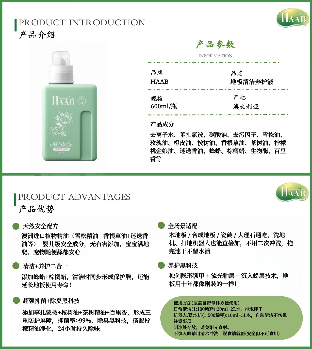 【世货优选】澳洲HAAB地板清洁液 600ml/瓶
