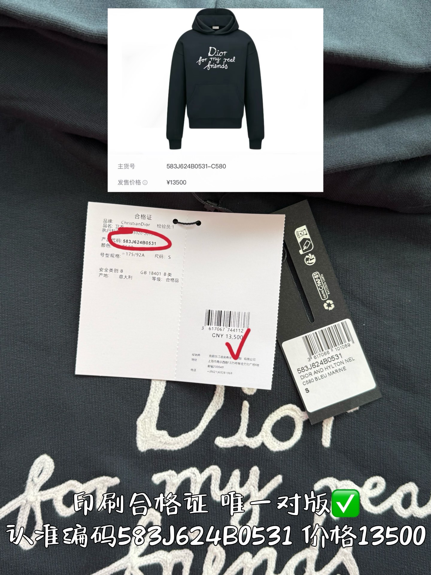 印刷合格证代码583J624B0531 唯一对版✅