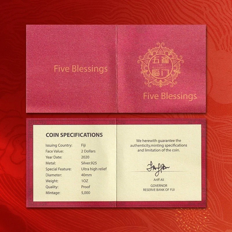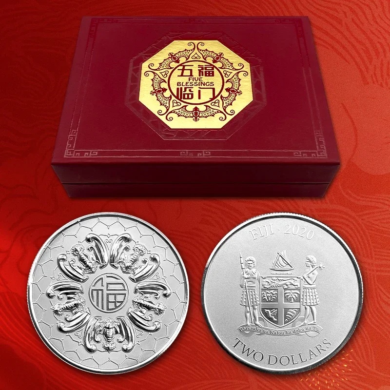 五福临门超高浮雕银币 重1盎司 原盒原证 斐济发行