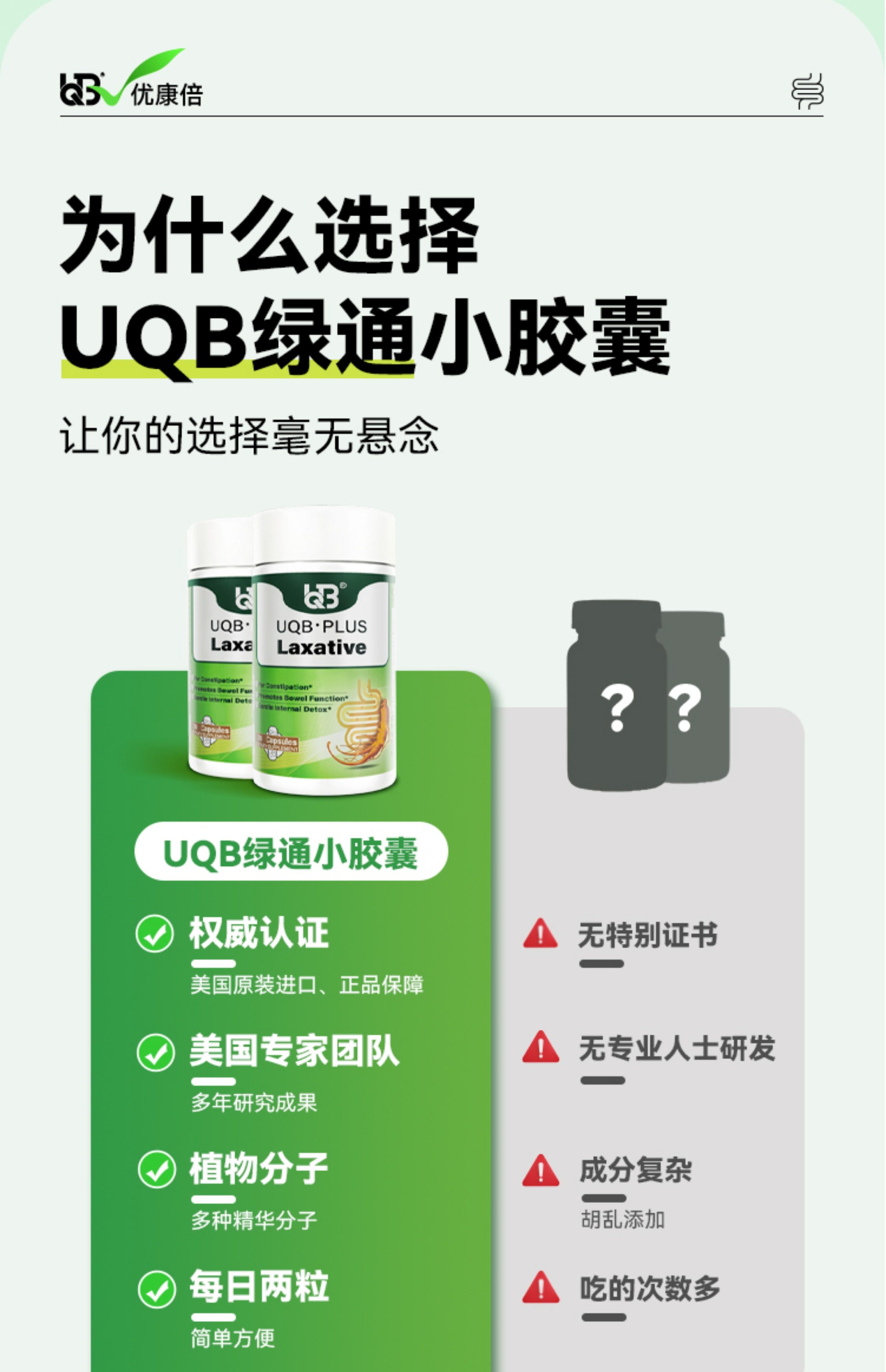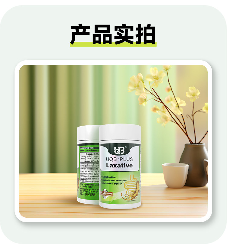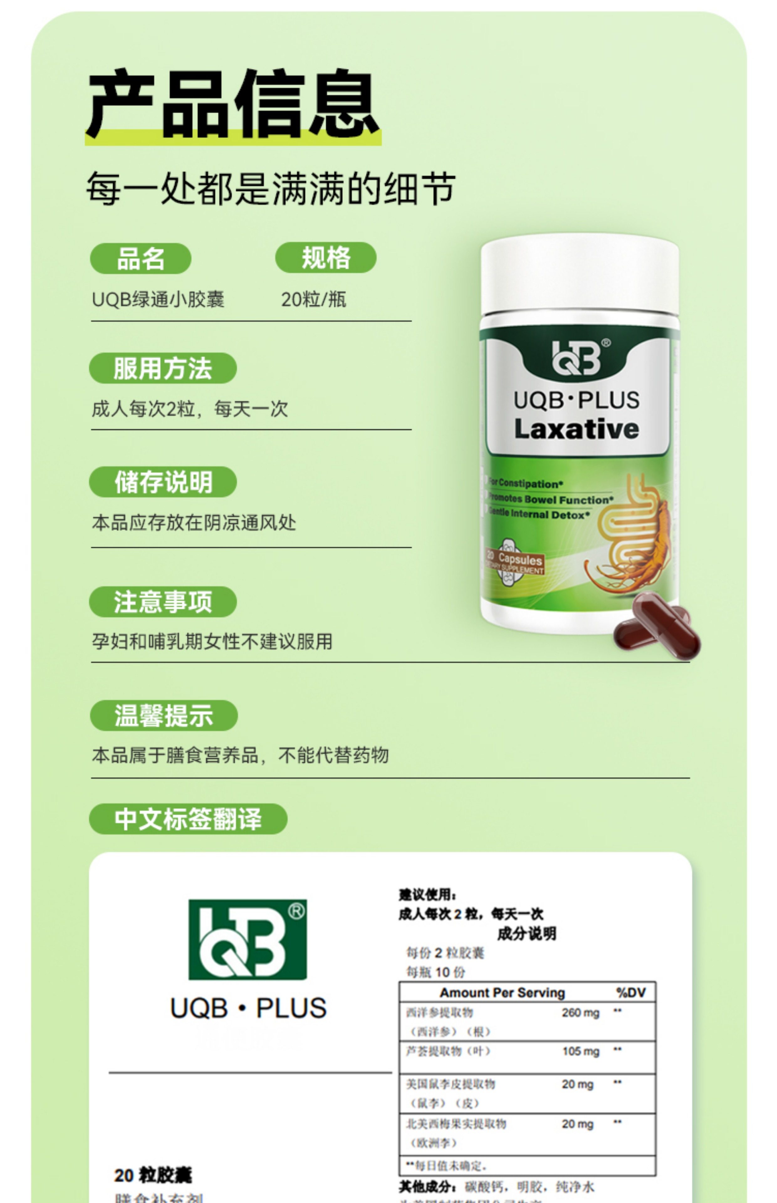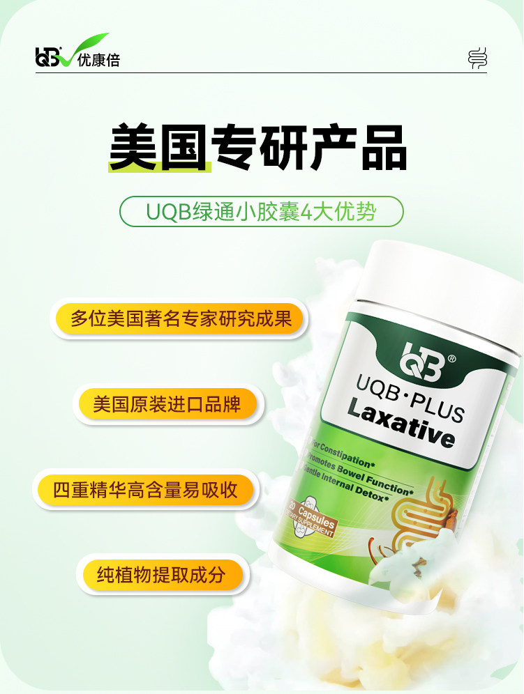 UQB美国原装进口小绿瓶排便丸 植物成分 每日两粒 顺畅排便