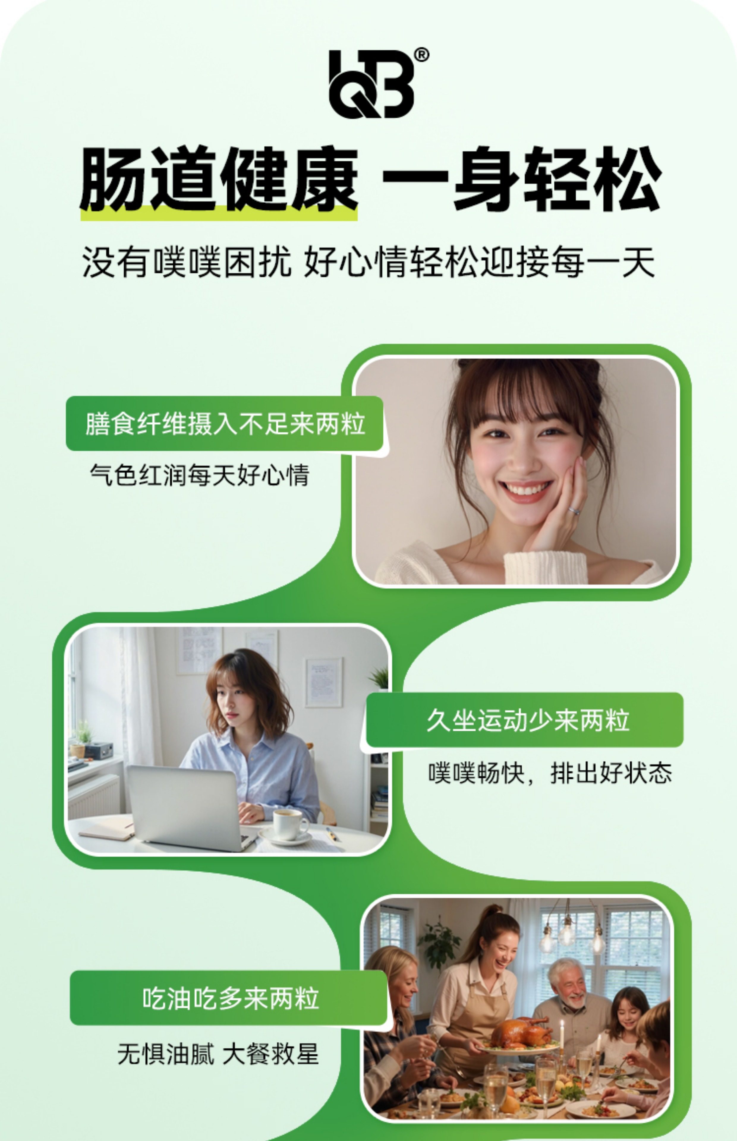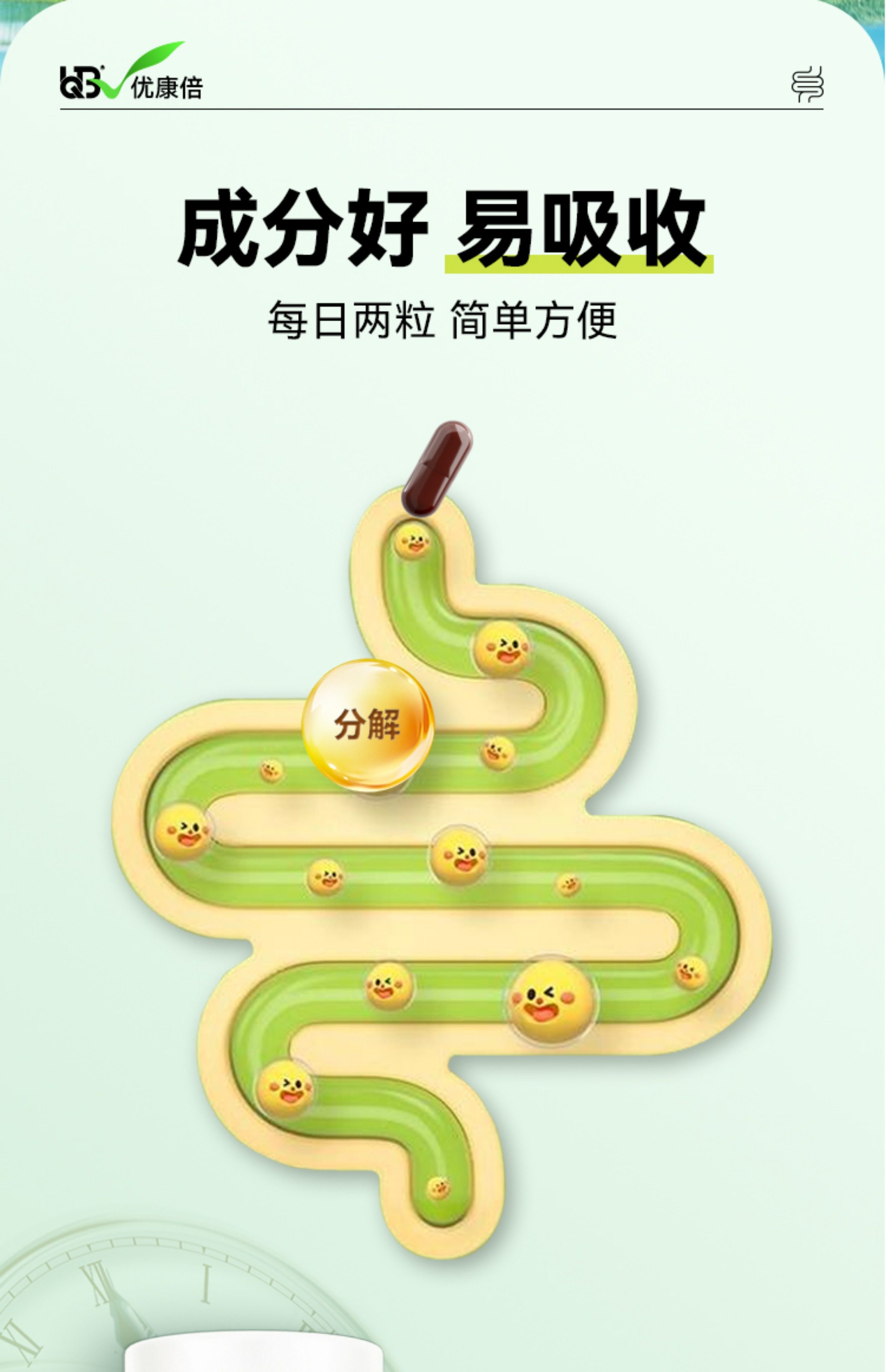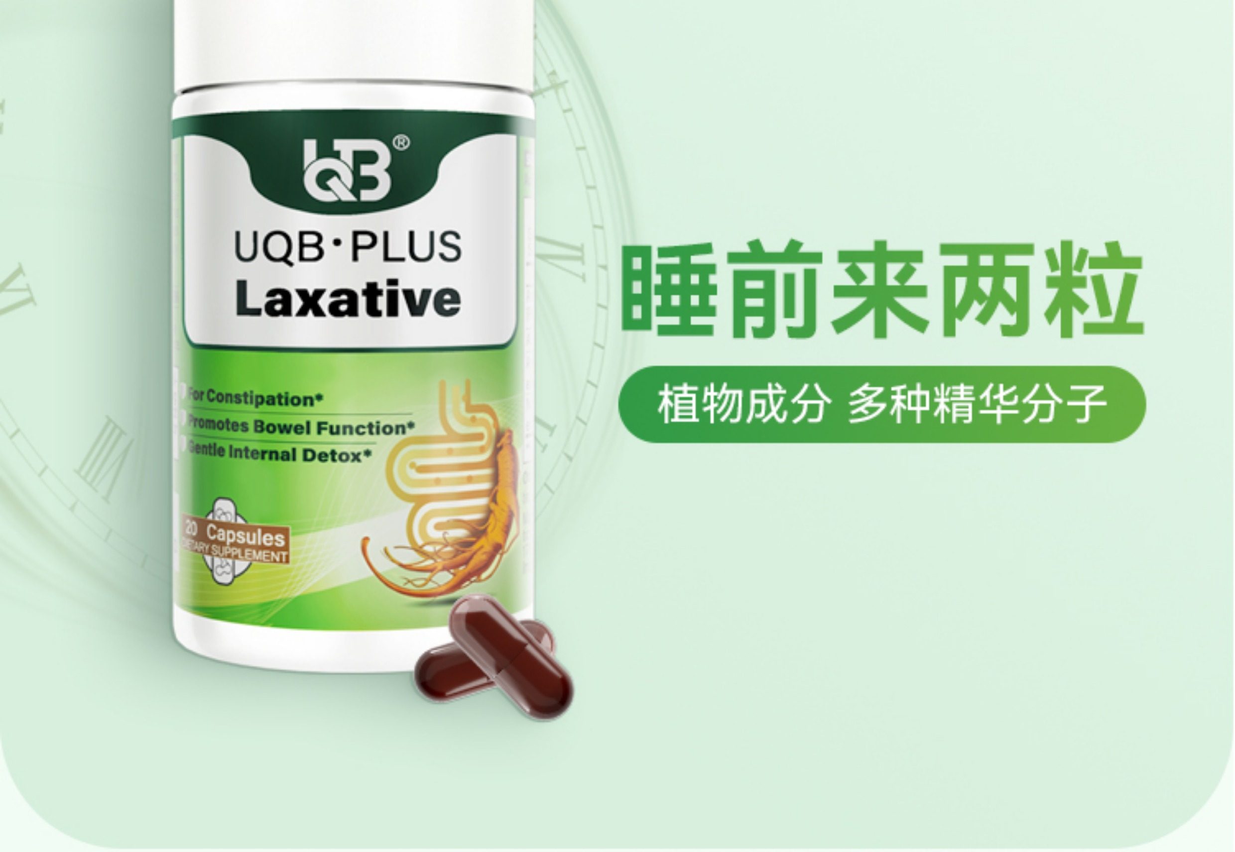 UQB美国原装进口小绿瓶排便丸 植物成分 每日两粒 顺畅排便