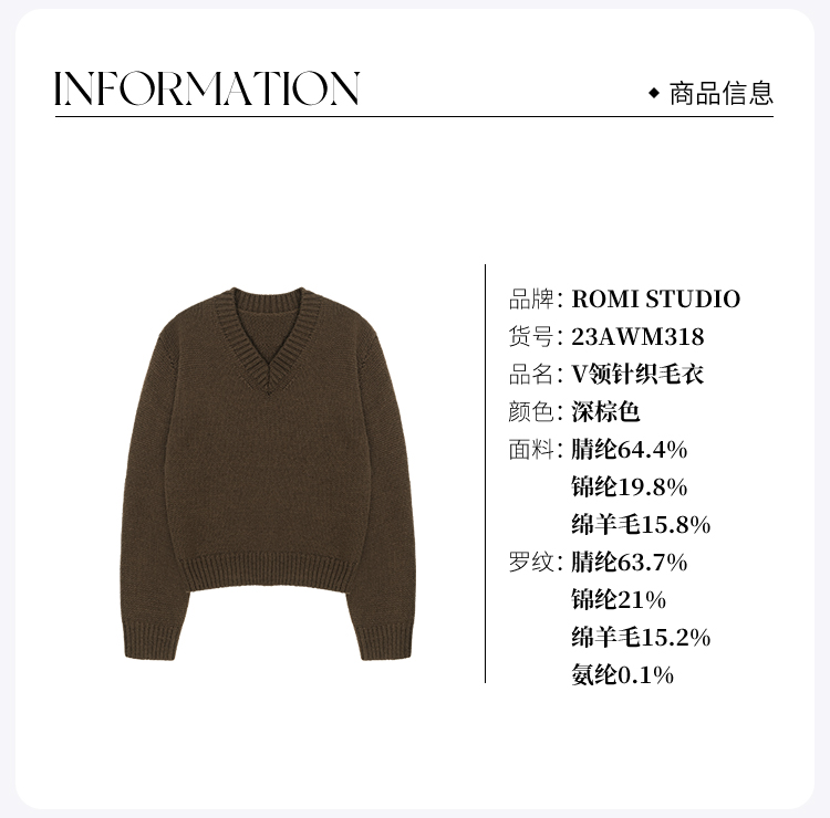 ROMI STUDIO“优雅过冬” 绵羊毛混纺腔调穿搭V领针织毛衣 23AWM318