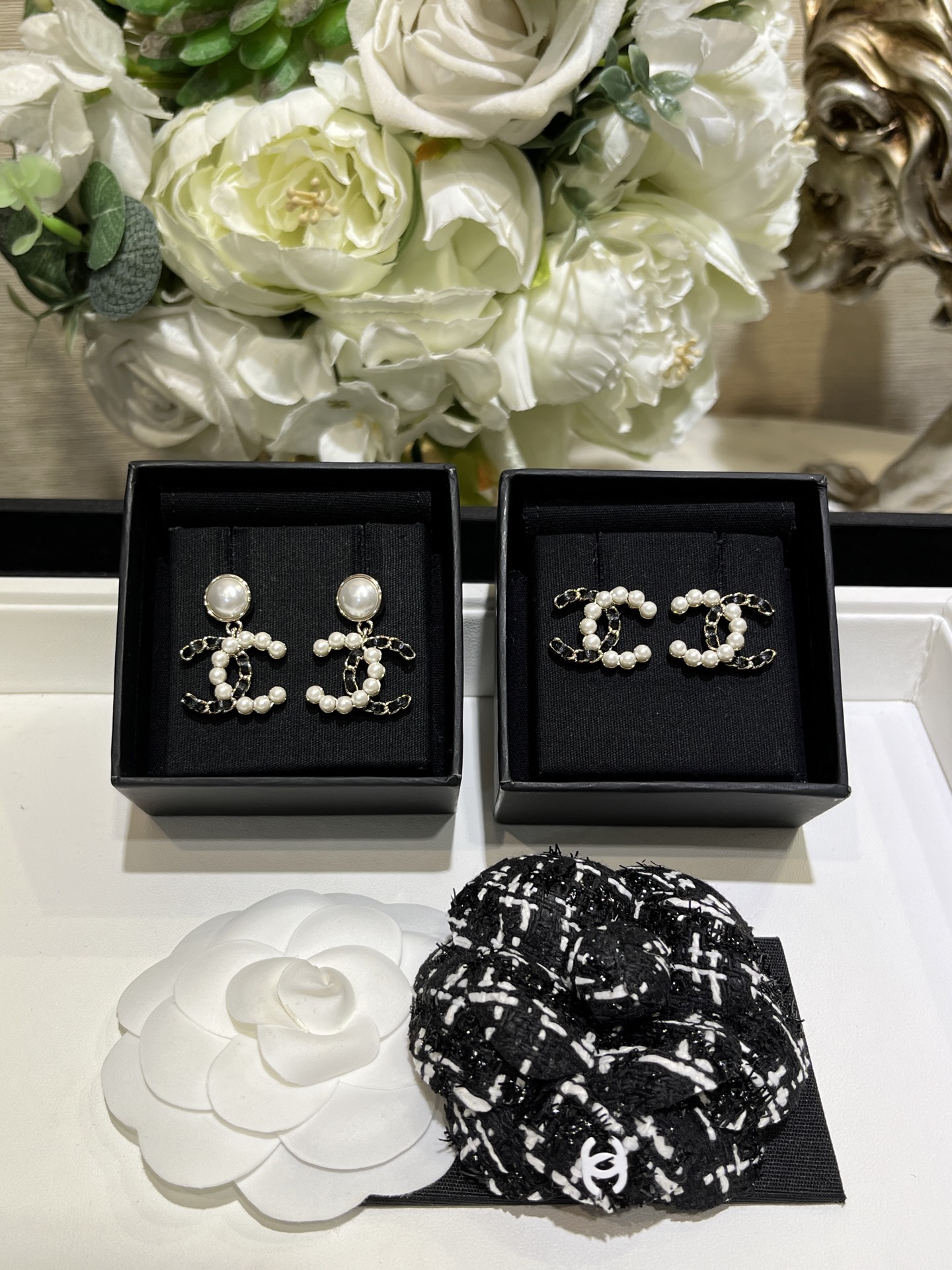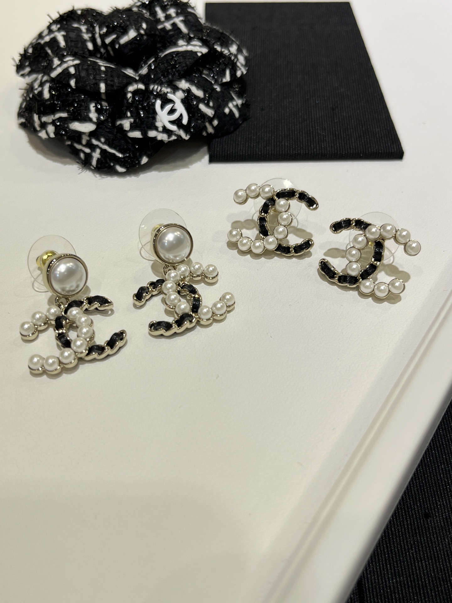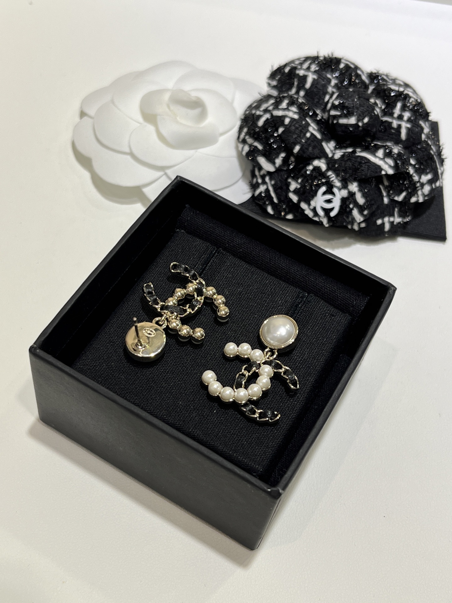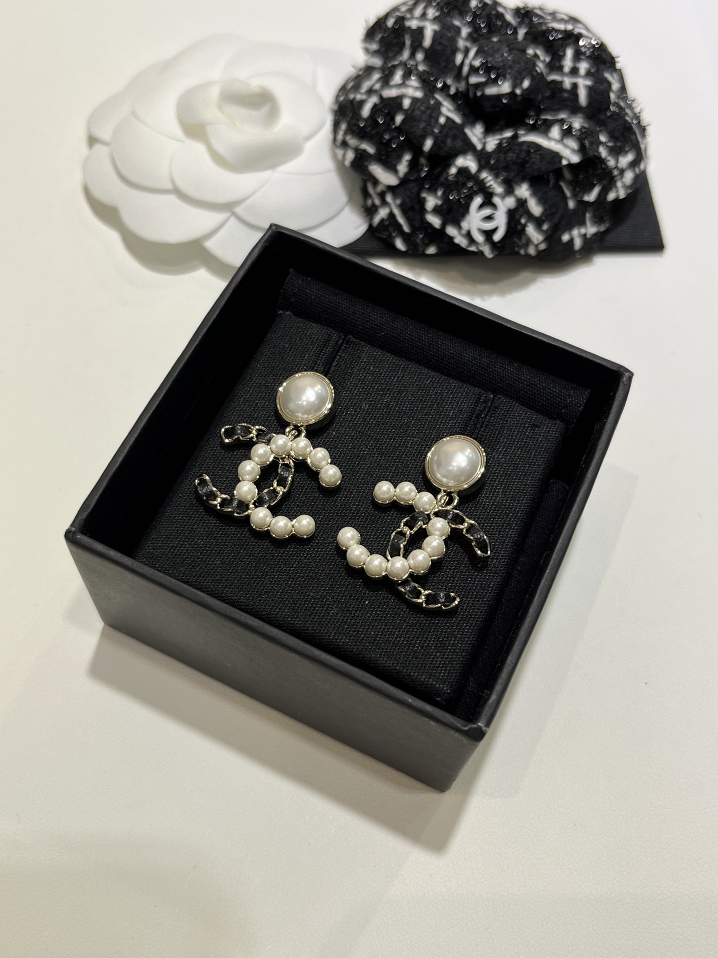 𝑪𝒉𝒂𝒏𝒆* 25K新款珍珠拼皮穿链双C耳环