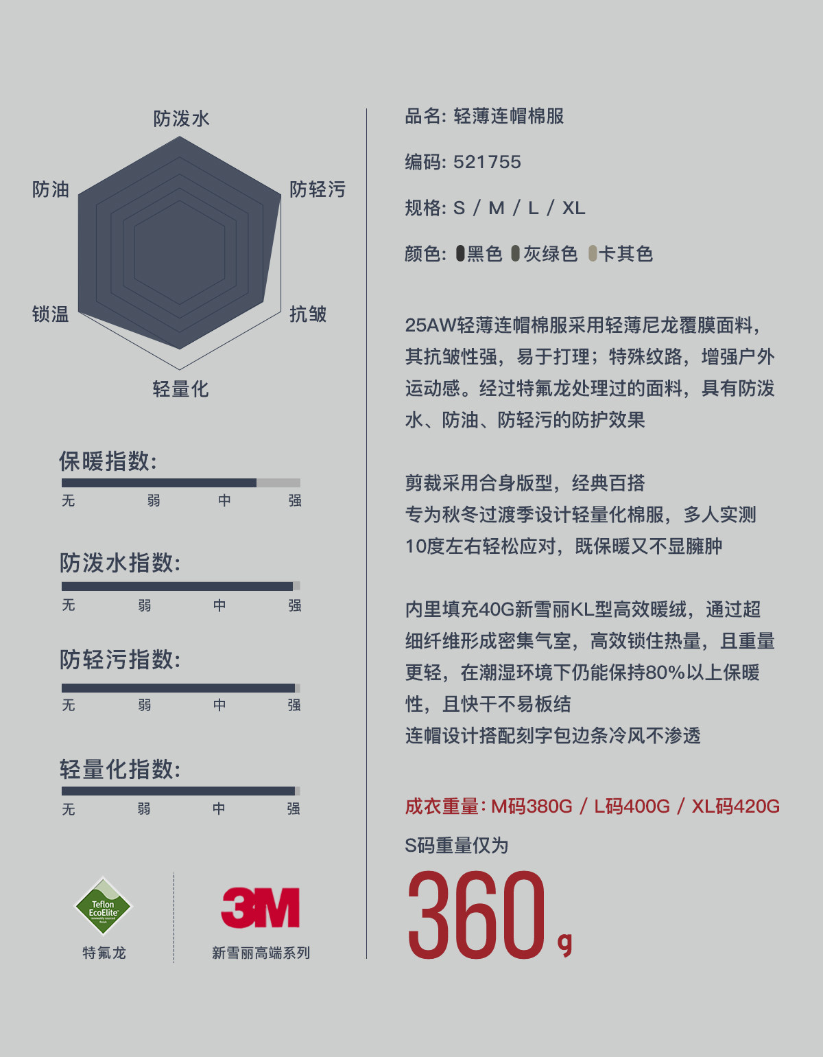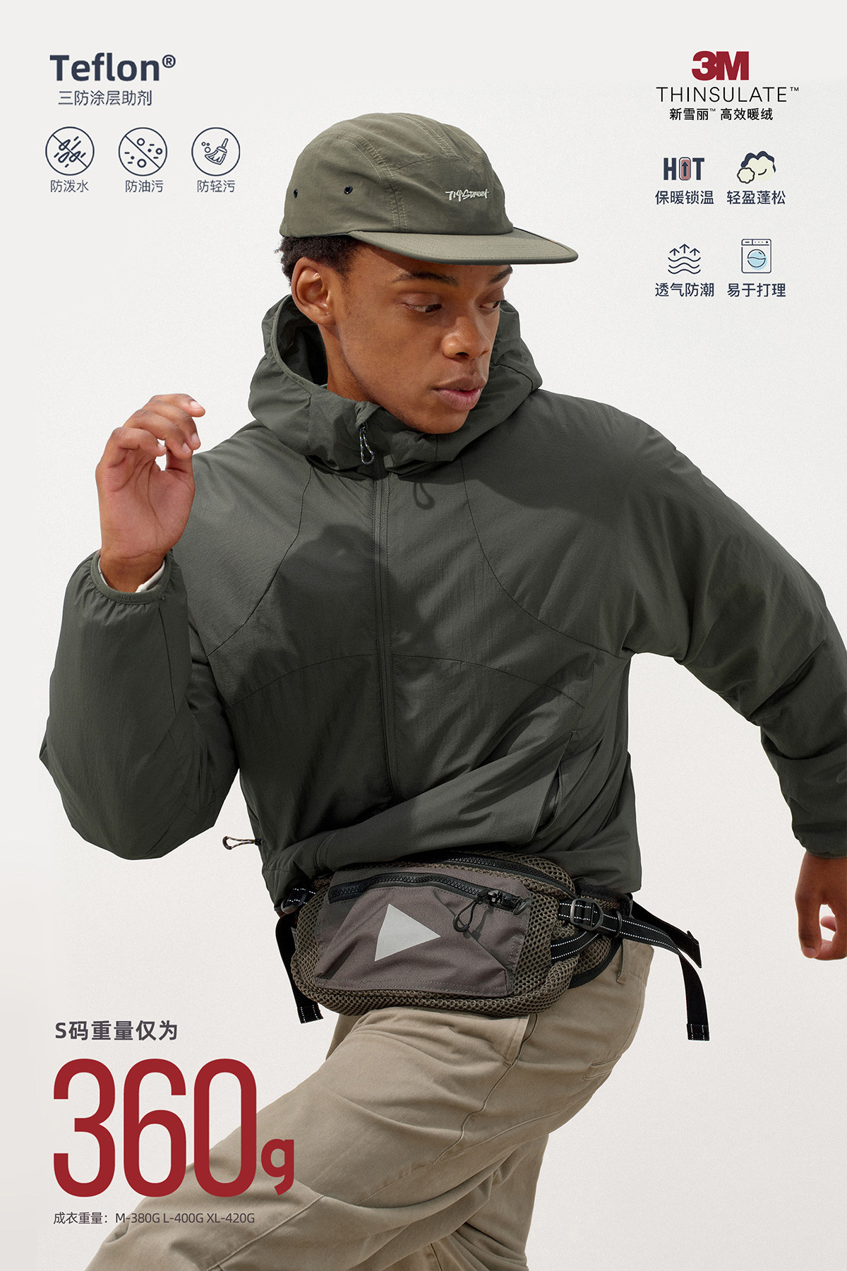 714street轻薄保暖登山棉服2025冬季户外三防连帽新雪丽棉外套男