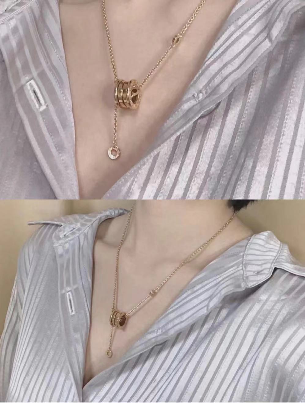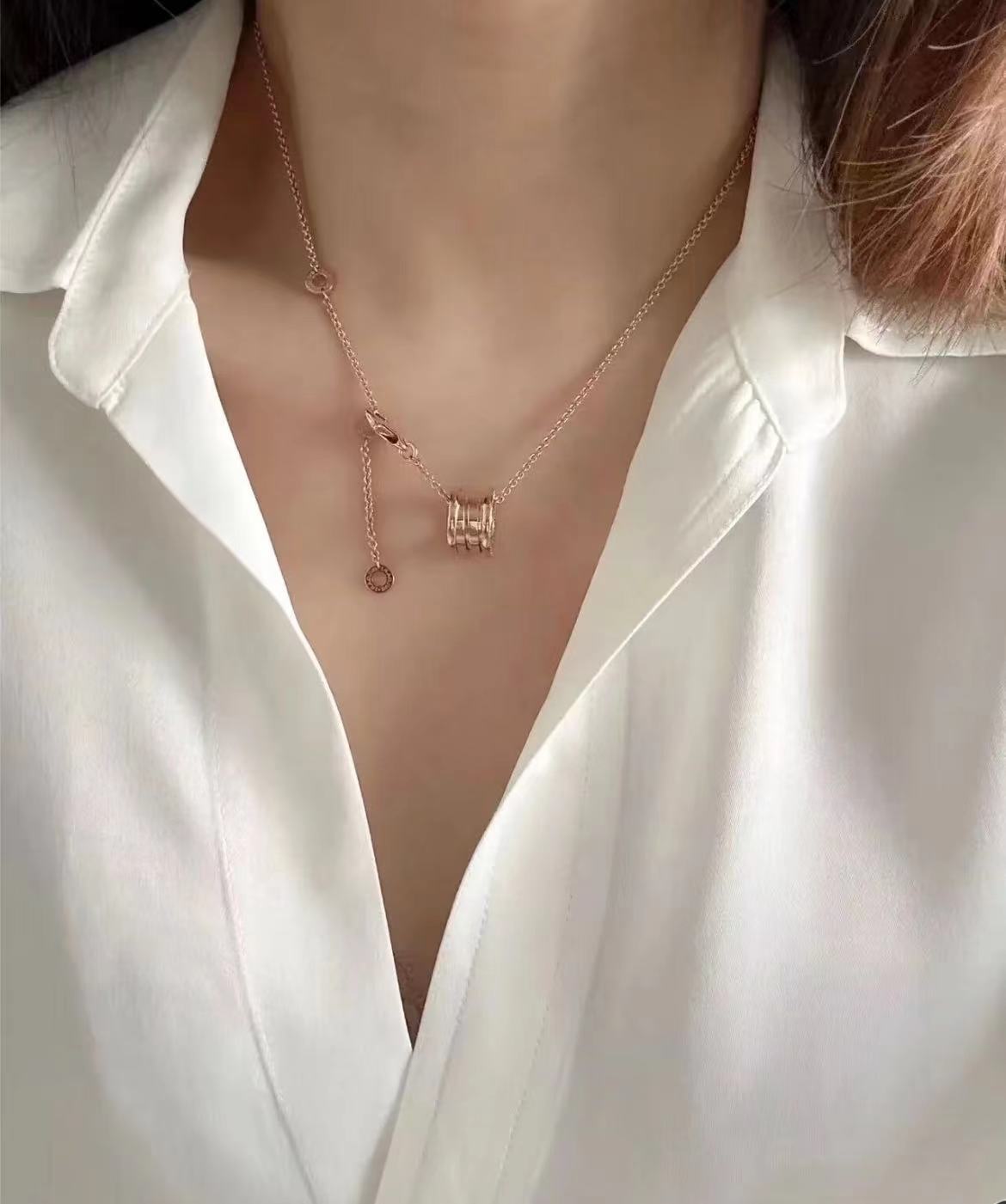 BVLGARI宝格丽18k玫瑰金B.ZERO1系列弹簧项链。之所以称之为弹簧项链,宝格丽弹簧项链它是以举世闻名的圆形露天剧场——罗马斗兽场为灵感而设计,彰显了BULGARI宝格丽的创意视角,并以前卫时尚的吊坠呈现。链长:42/45cm可调节