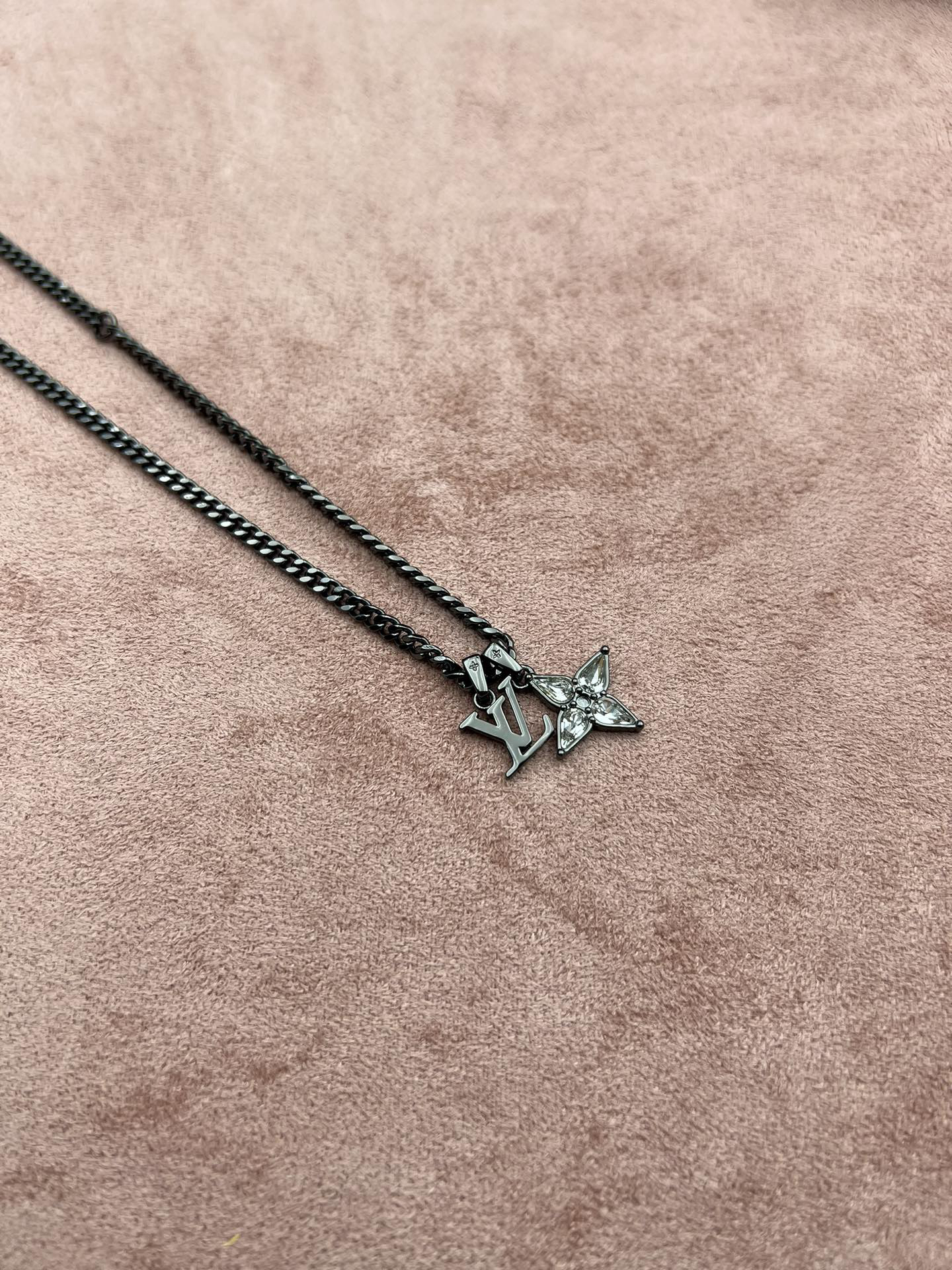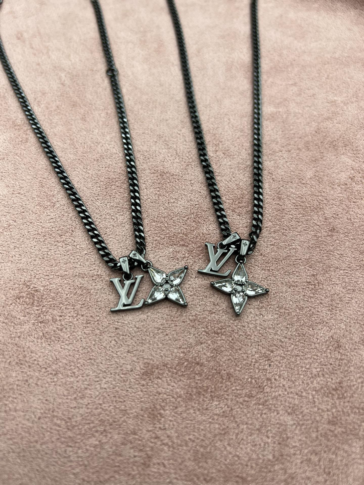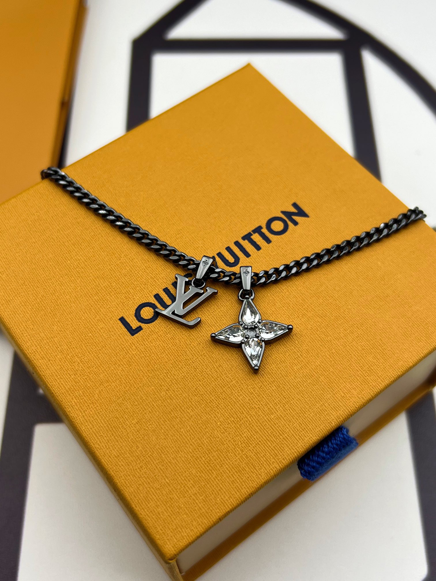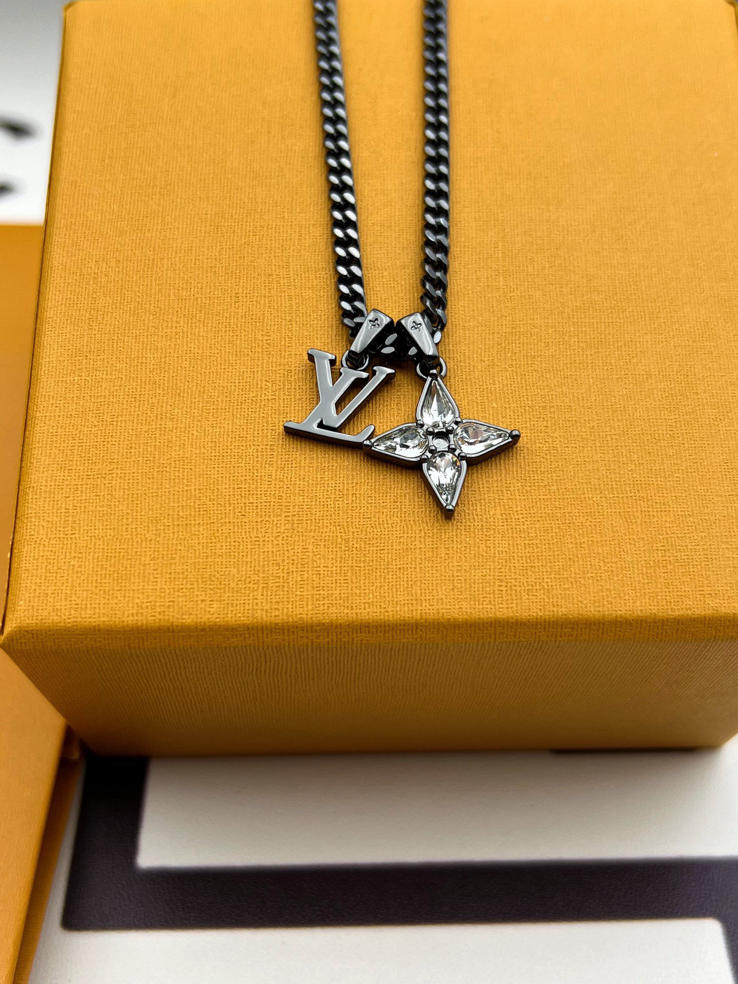 LouIs VUITTON Flower Cut 吊坠幸运四叶草 金属 项链 男款 黑色(SJ)
