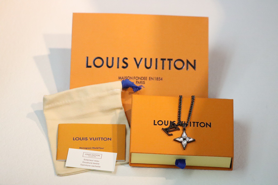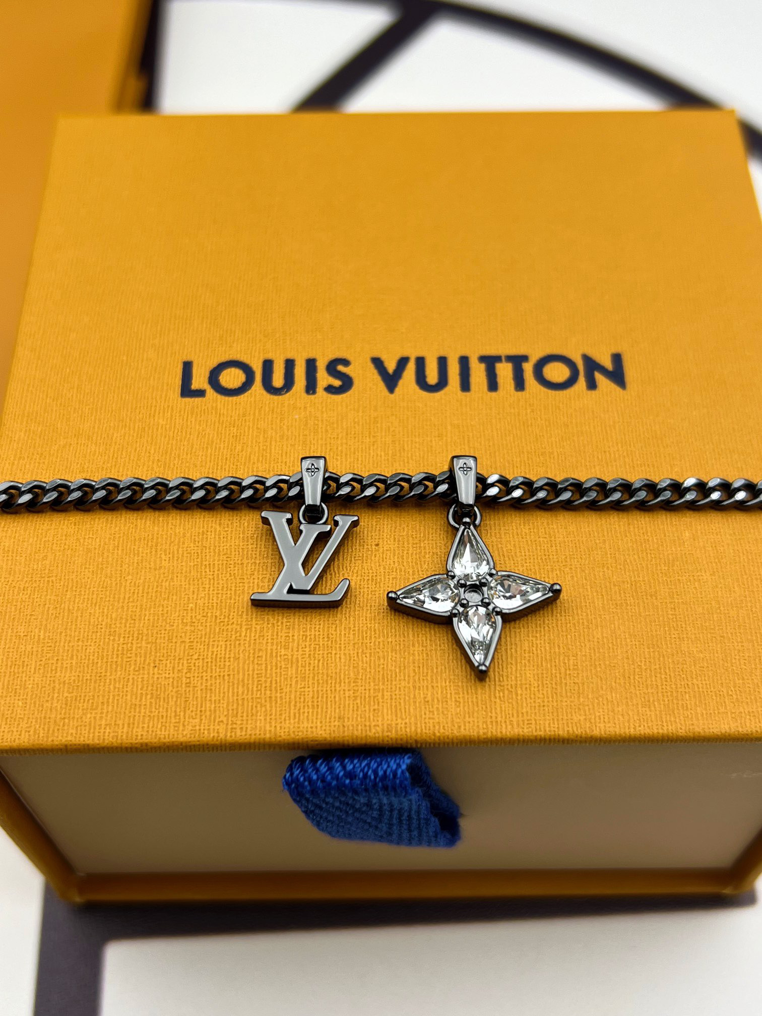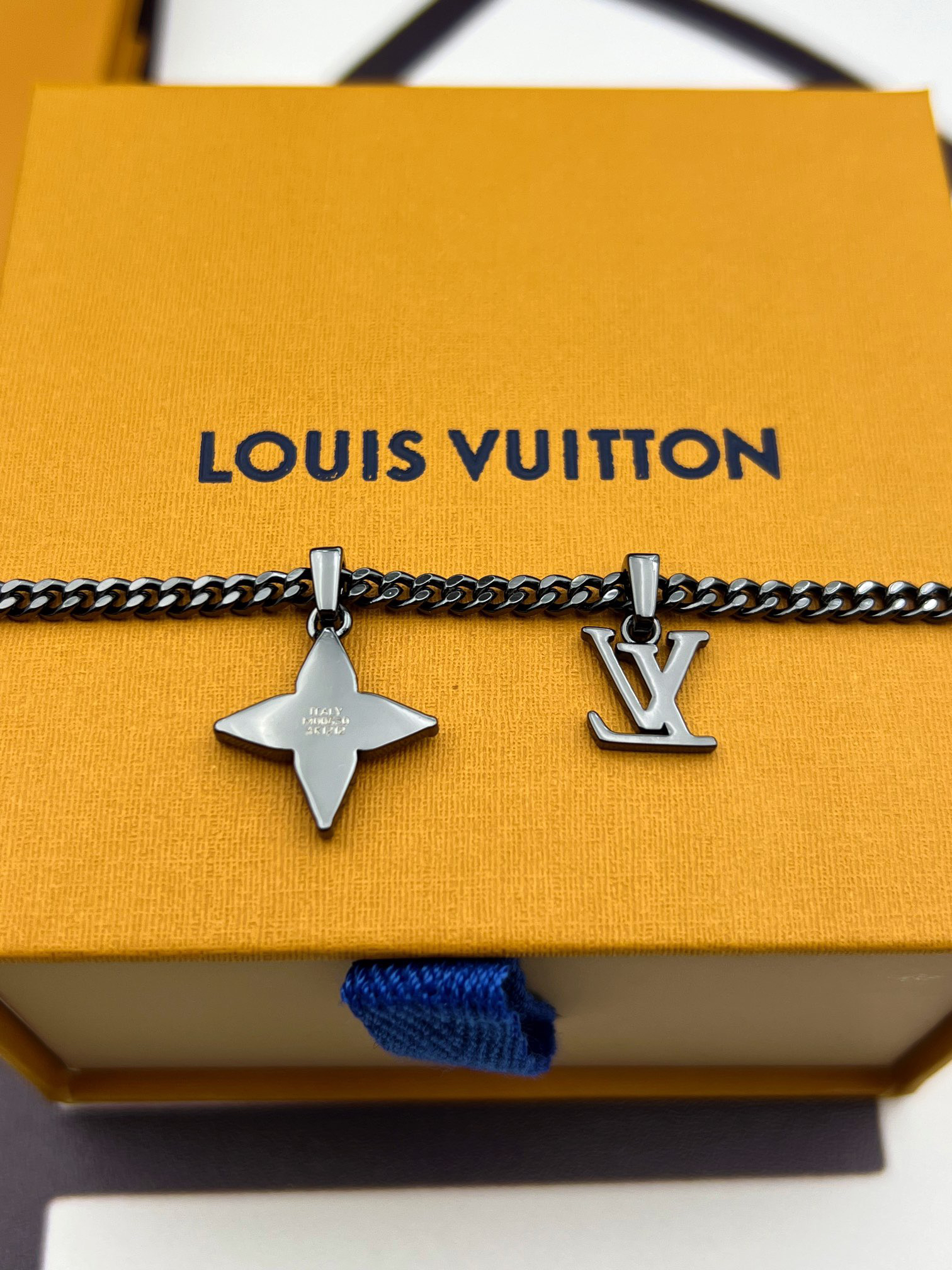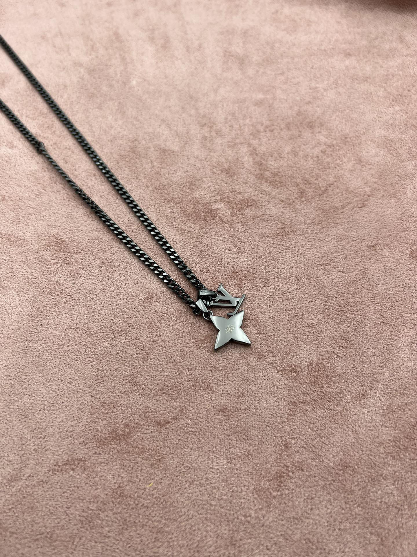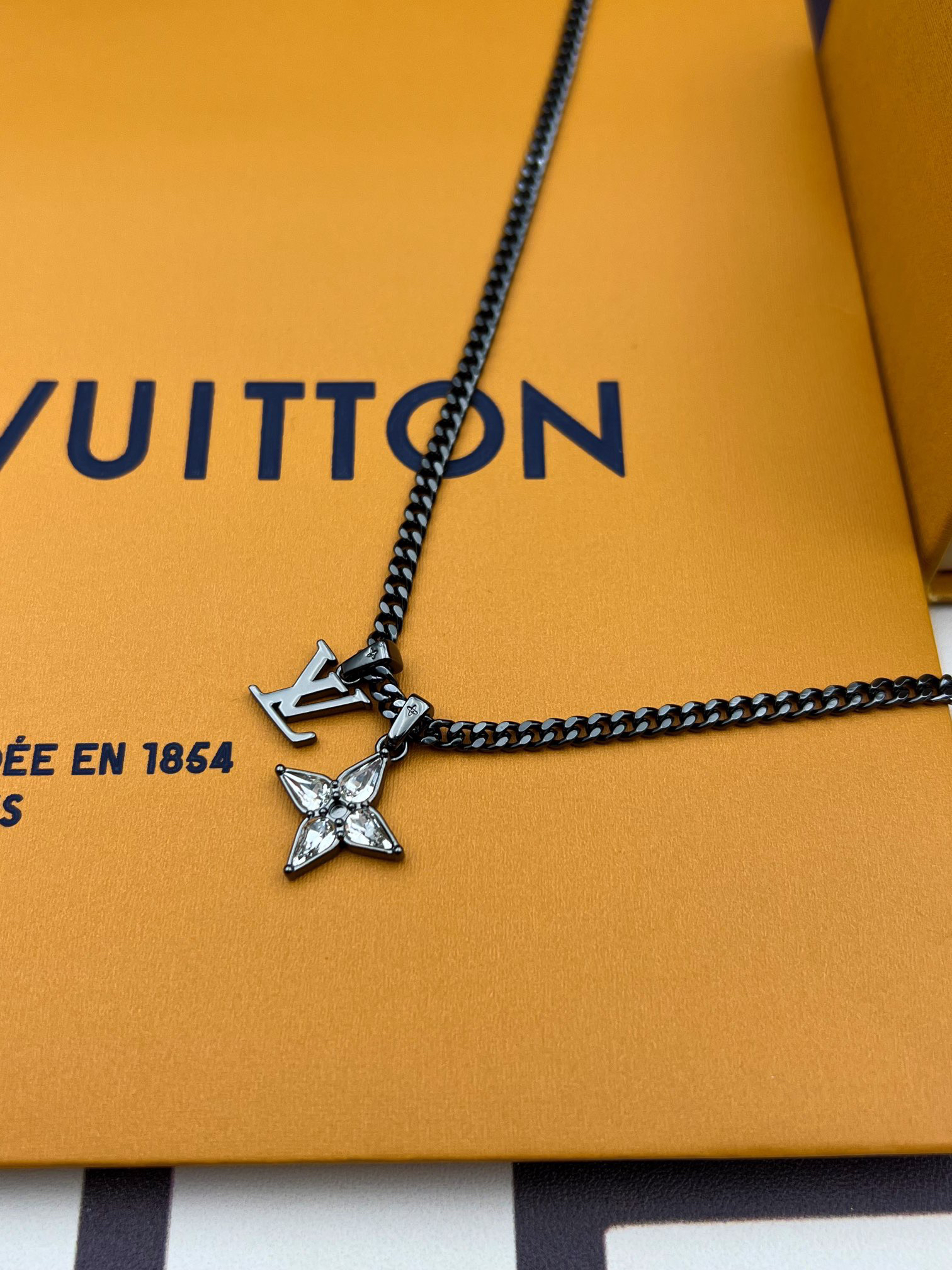 LouIs VUITTON Flower Cut 吊坠幸运四叶草 金属 项链 男款 黑色(SJ)