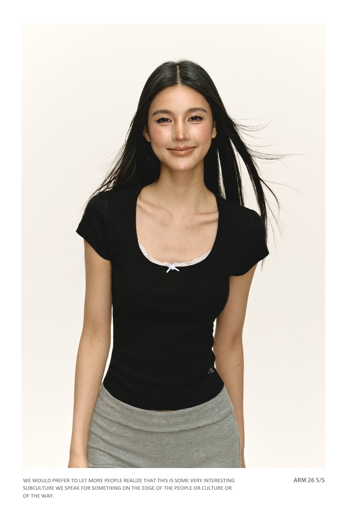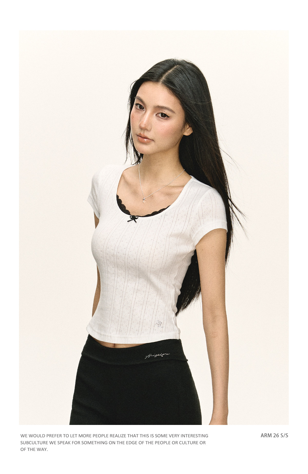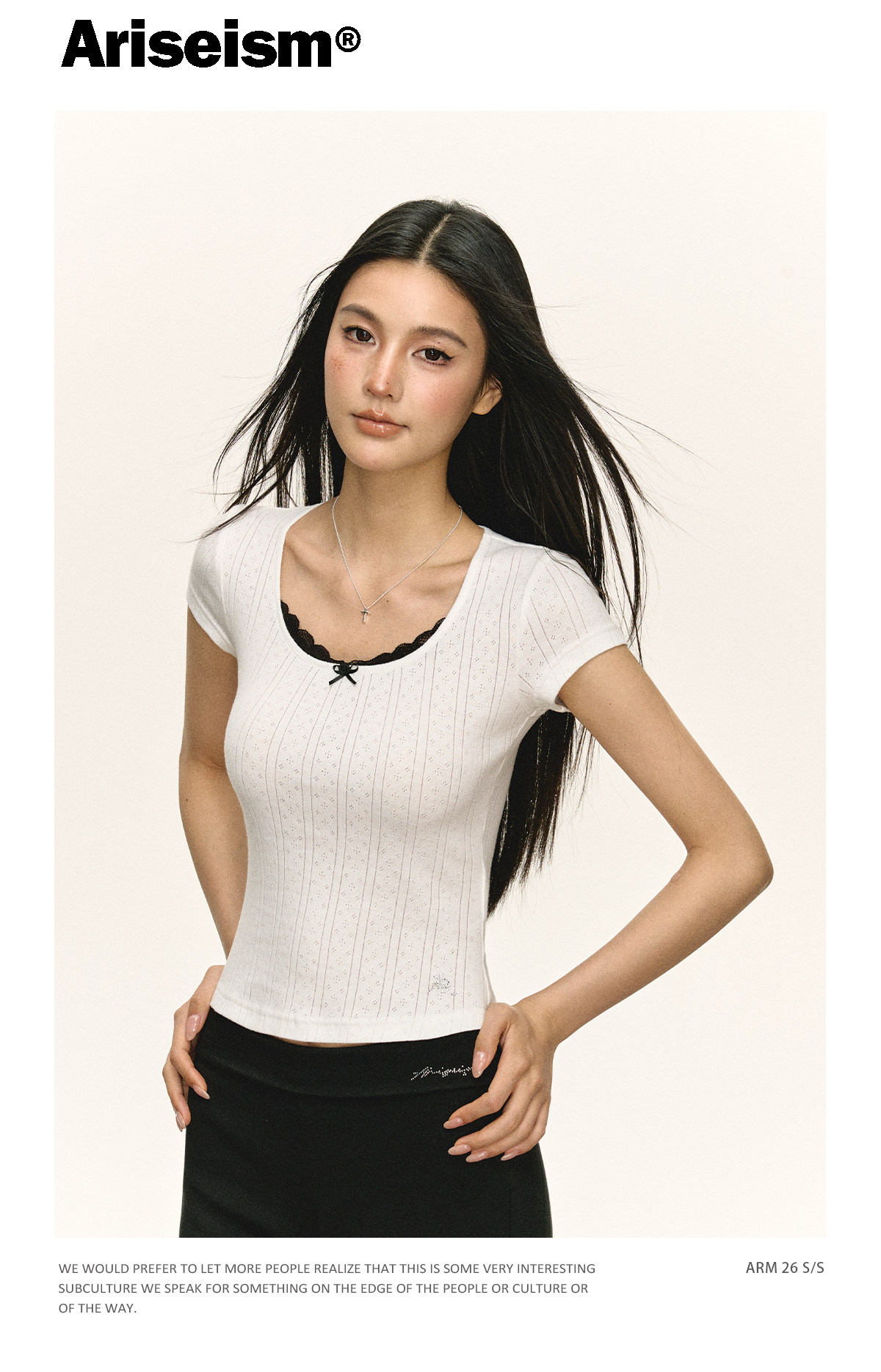 Ariseism 美式复古蝴蝶结镂空短袖T恤女夏季新款上衣