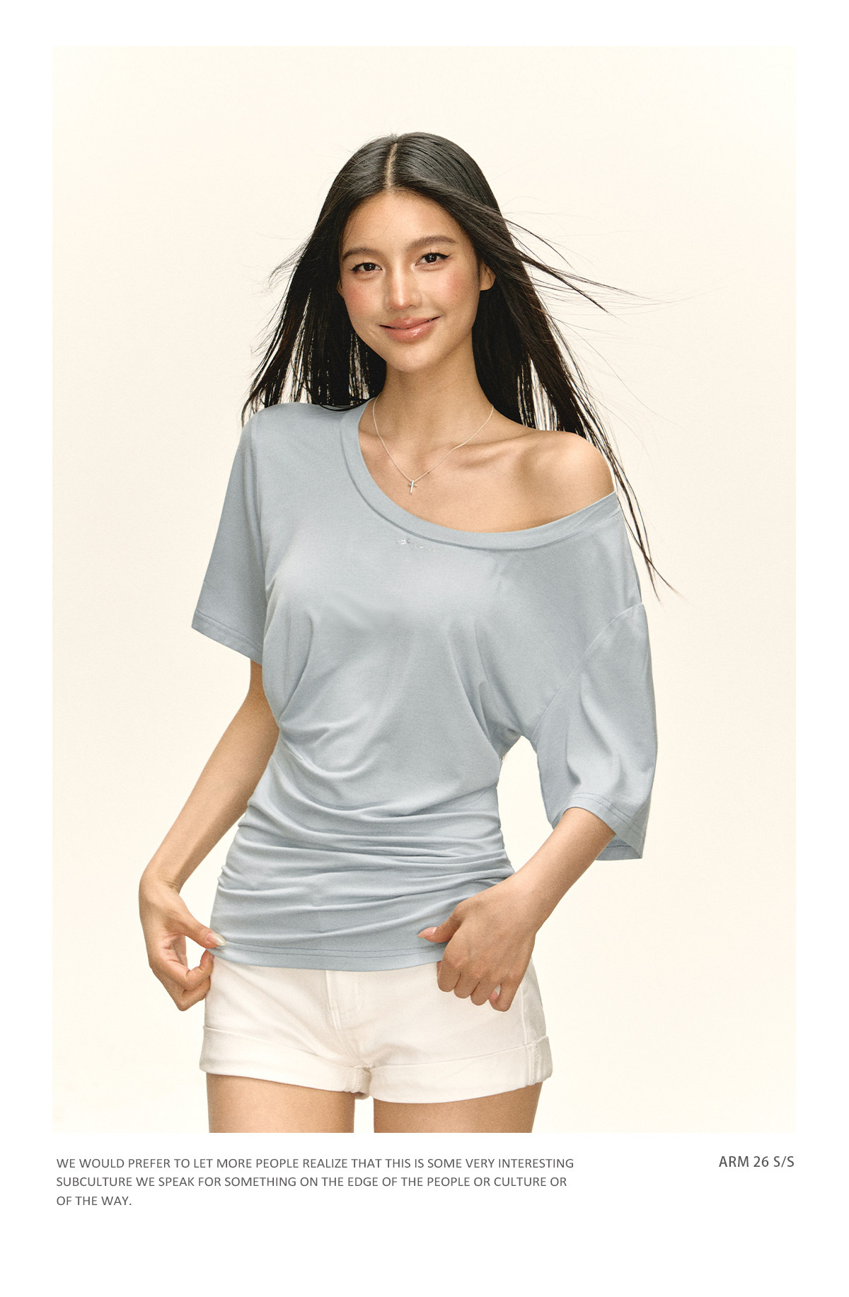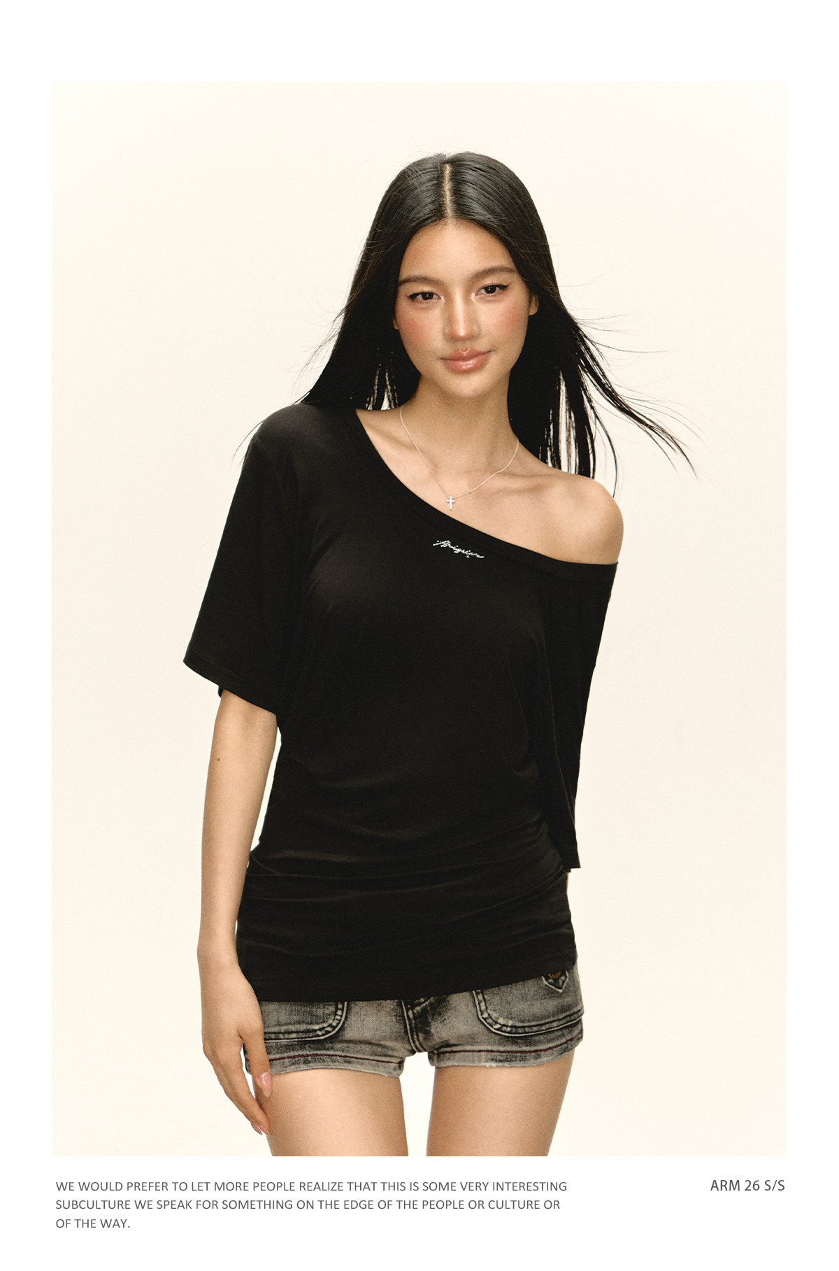 Ariseism 美式复古纯色圆领正肩短袖t恤女2025夏季新款修身上衣