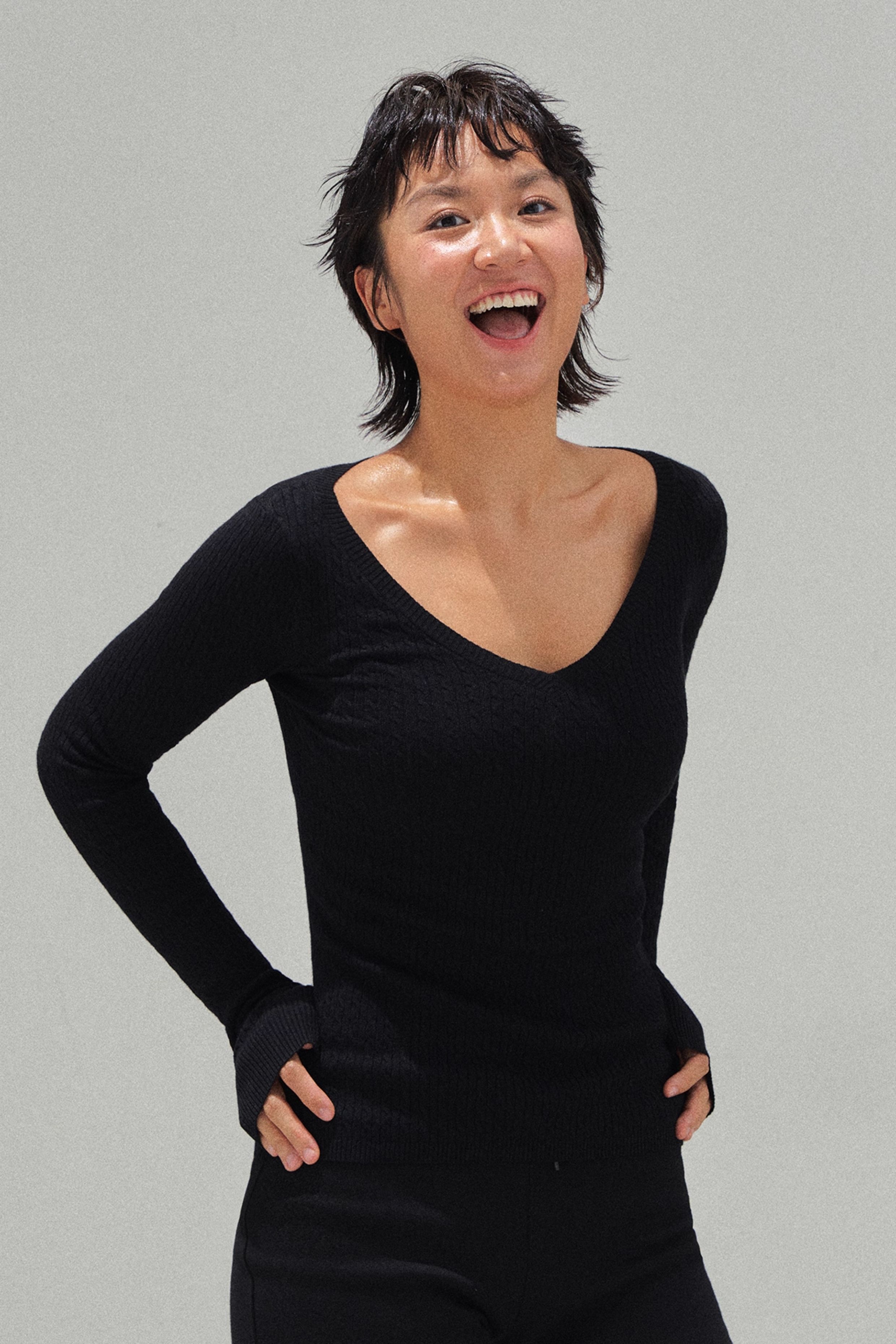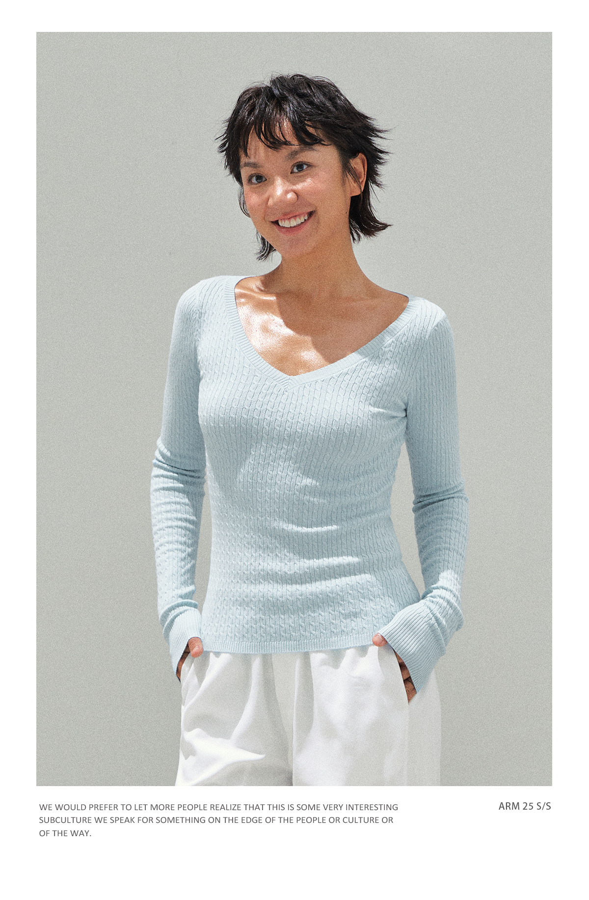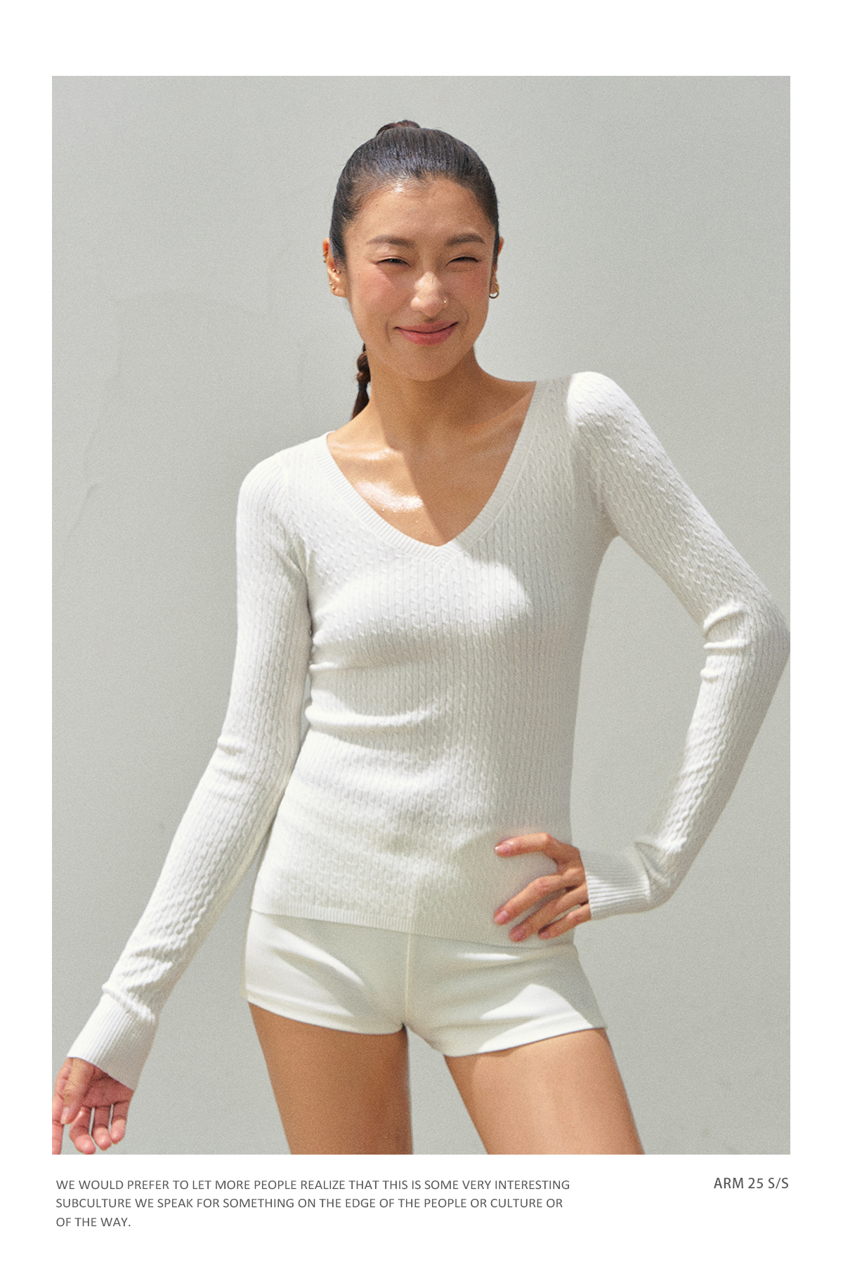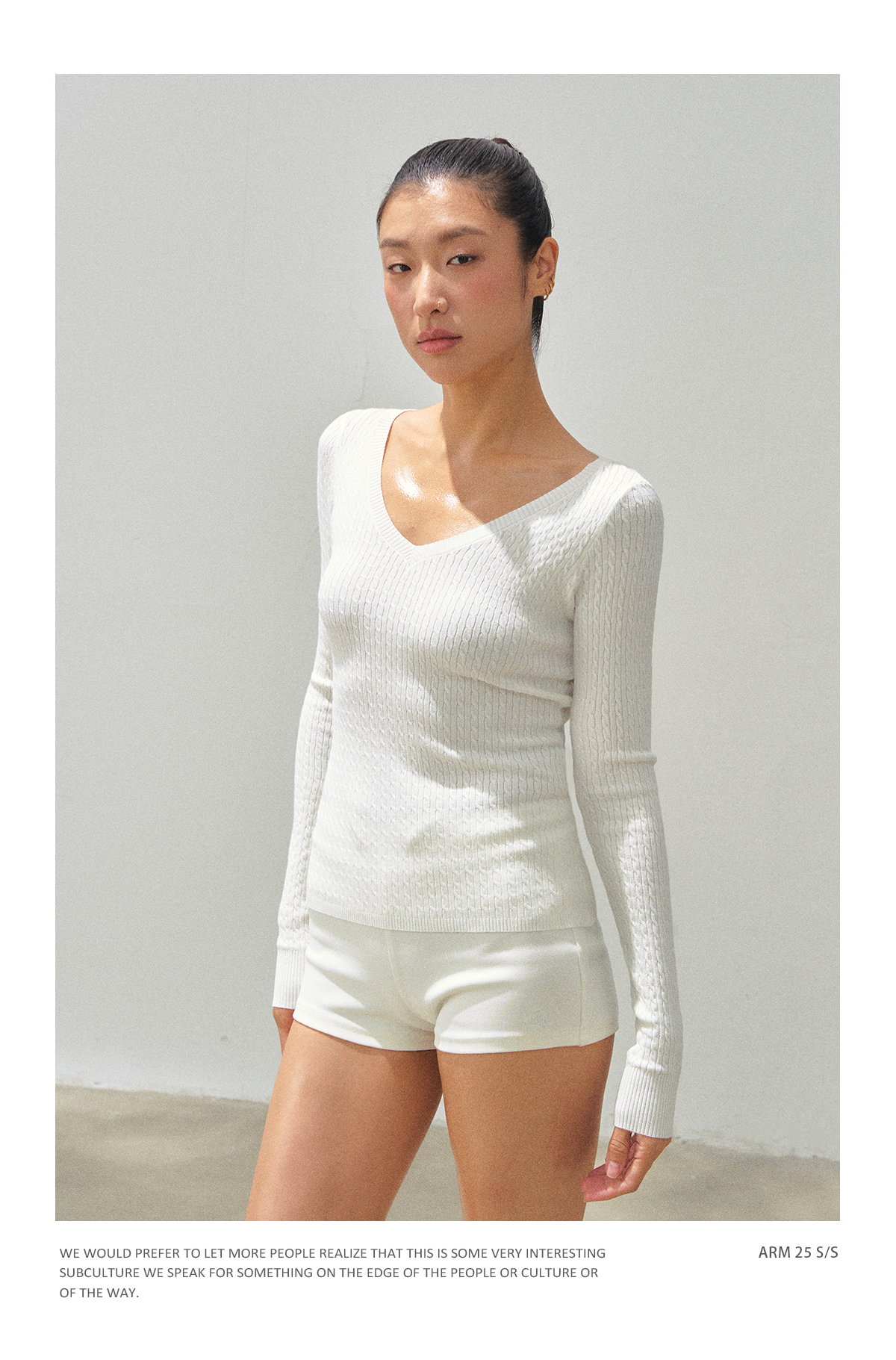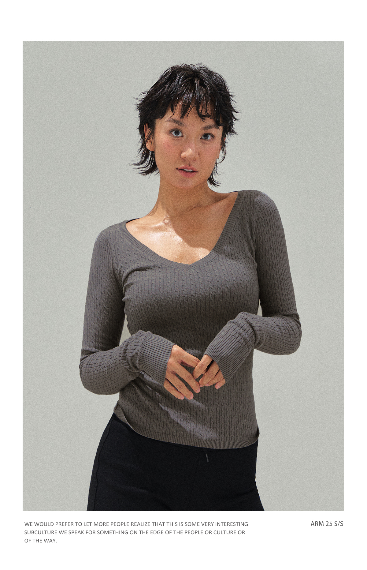 Ariseism 美式复古设计感V领修身打底针织衫女秋季新款毛衣上衣