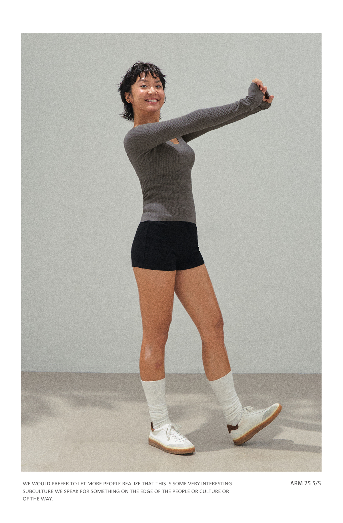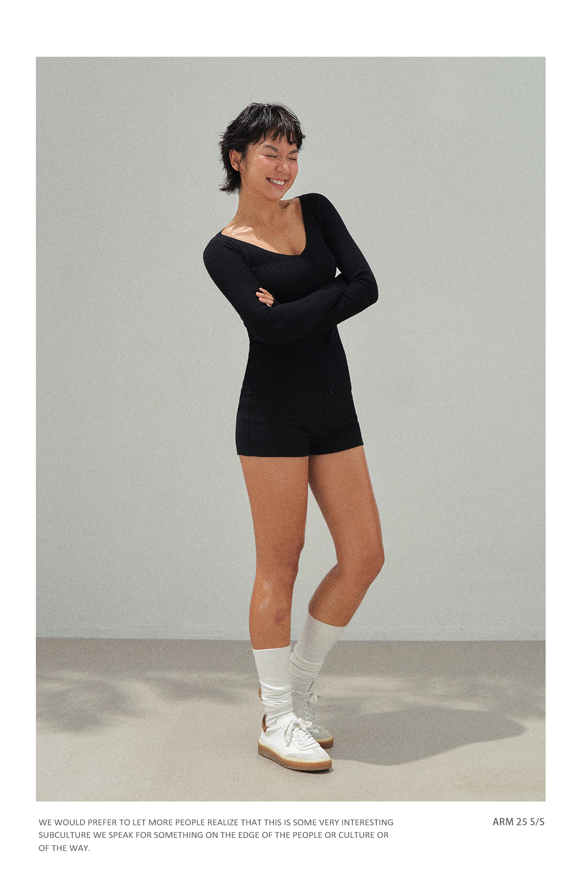 Ariseism 美式复古斜肩长袖上衣+短裤两件套早秋新款套装女