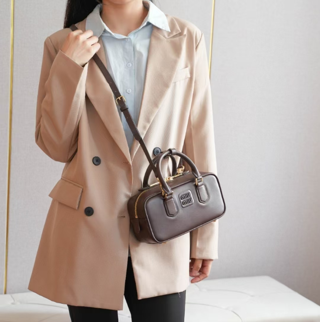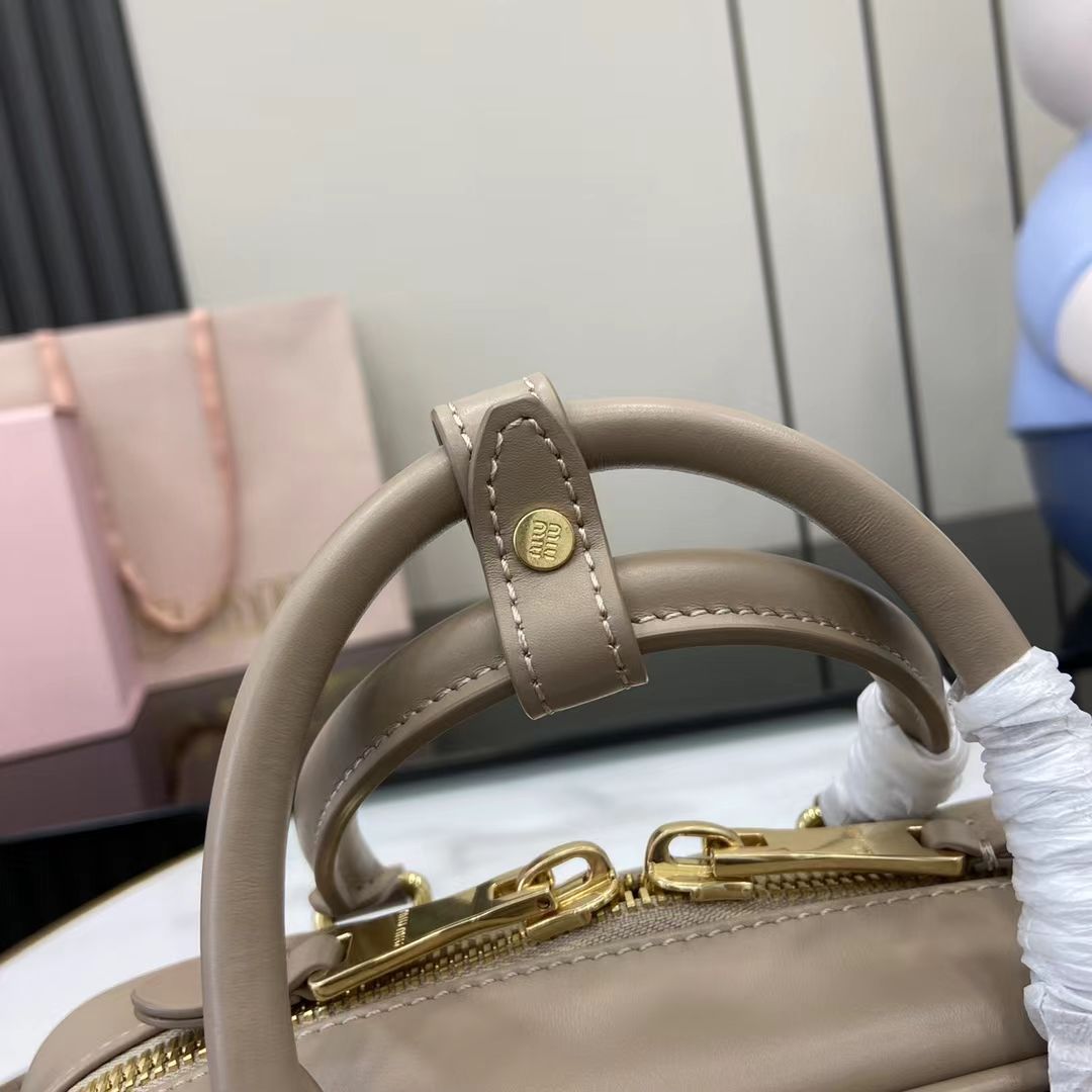 miu家新款保龄球包包,官网主推,今年绝对爆🔥款式,顶级进口小牛皮,miu家独具风格matelasse图案,包身精致立体有型,正面刻字徽标与皮革颜色相呼应,可拆卸可调节皮革长肩带,棉质缎面衬里,配拉链式口袋,众多明星网红同款,配原版包装。小号:22x10.5x7.5cm,中号:27x12x9cm