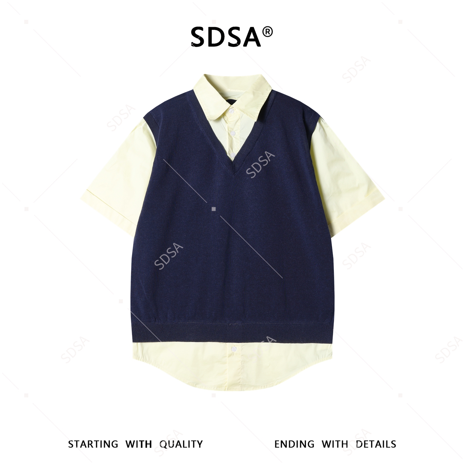 SDSA男装2026新款高贵轻奢韩版撞色假两件针织短袖T恤百搭宽松