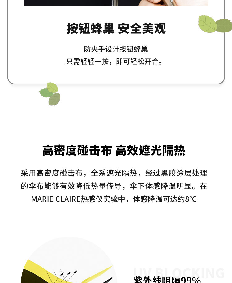 法国MC marie claire遮阳伞女防晒伞便携防紫外线晴雨两用太阳伞