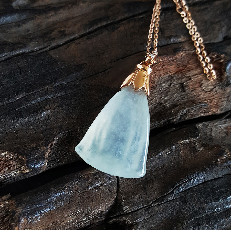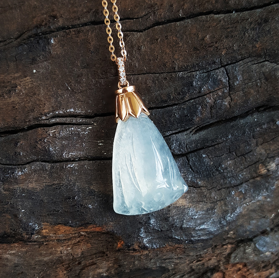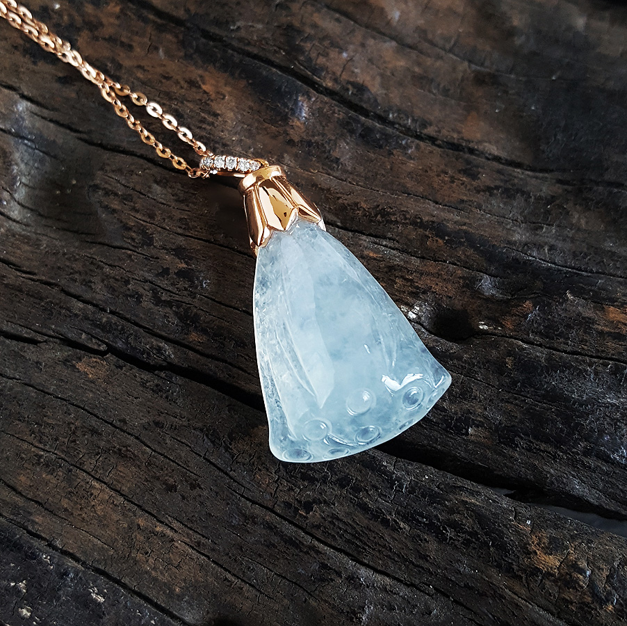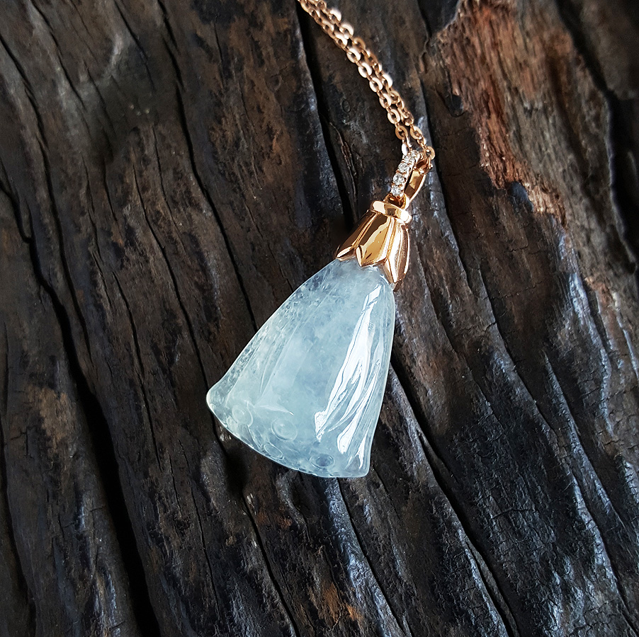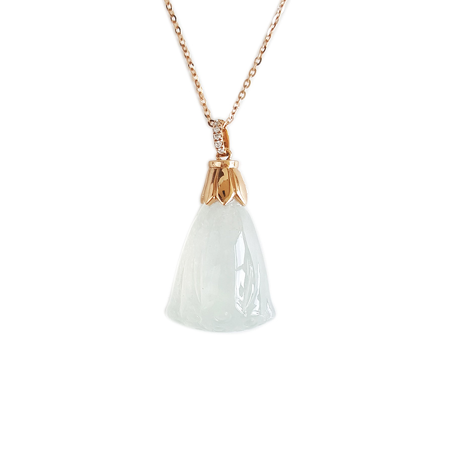 【天然正品】AU750精品玫瑰金镶冰种莲蓬造型翡翠(多子多福)吊坠项链170624XY13