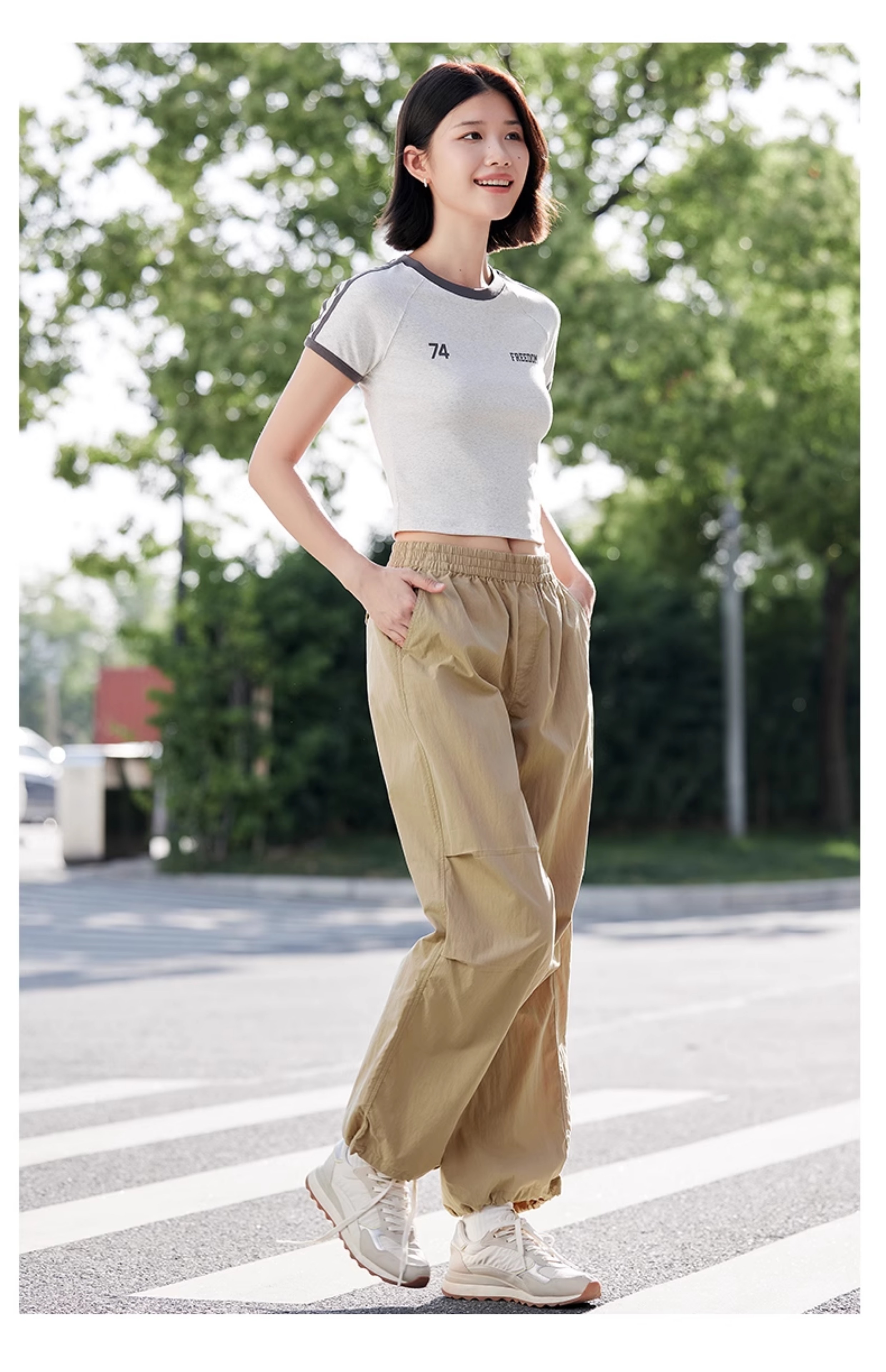 圆领立体装饰新潮风女士吸汗T恤打底衫长袖运动2026春季1Q1222207