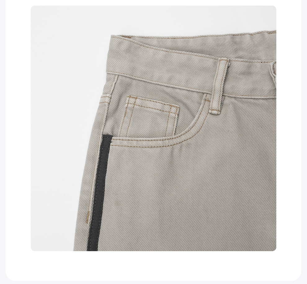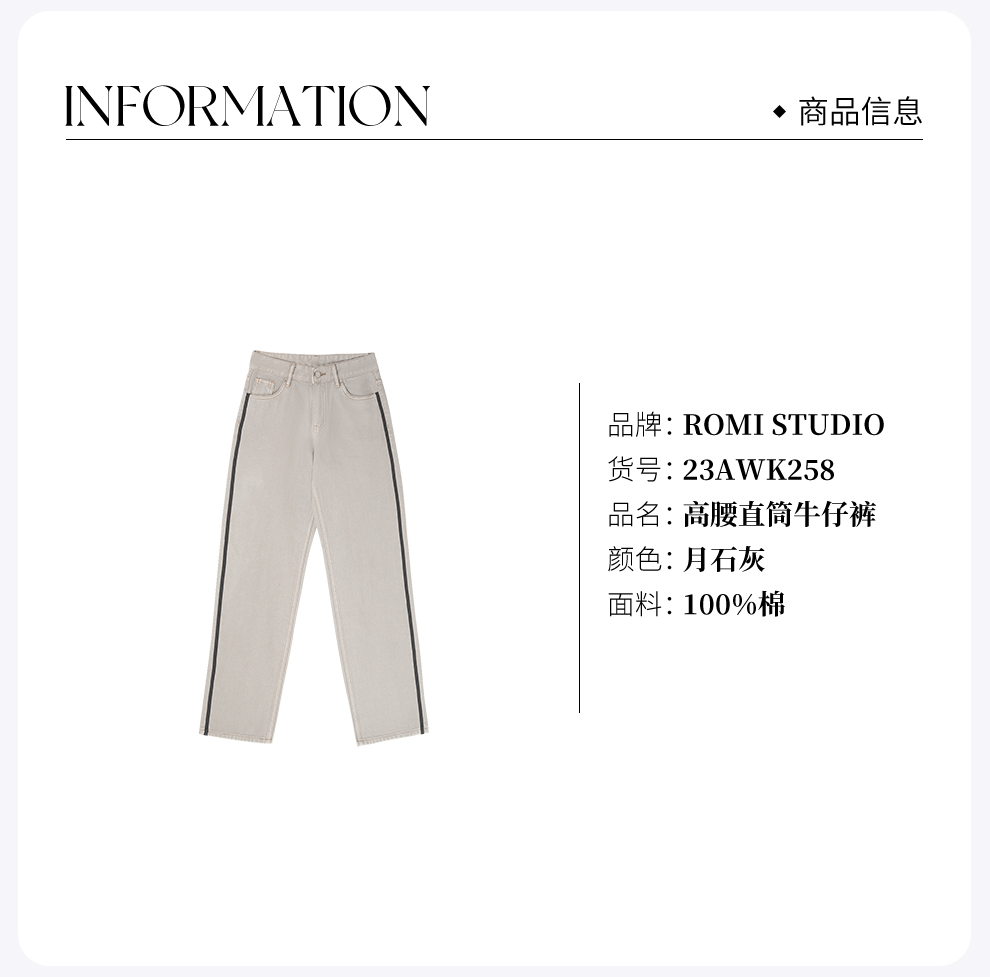 ROMI STUDIO“法式复古”100%棉拼接撞色高腰直筒牛仔裤23AWK258