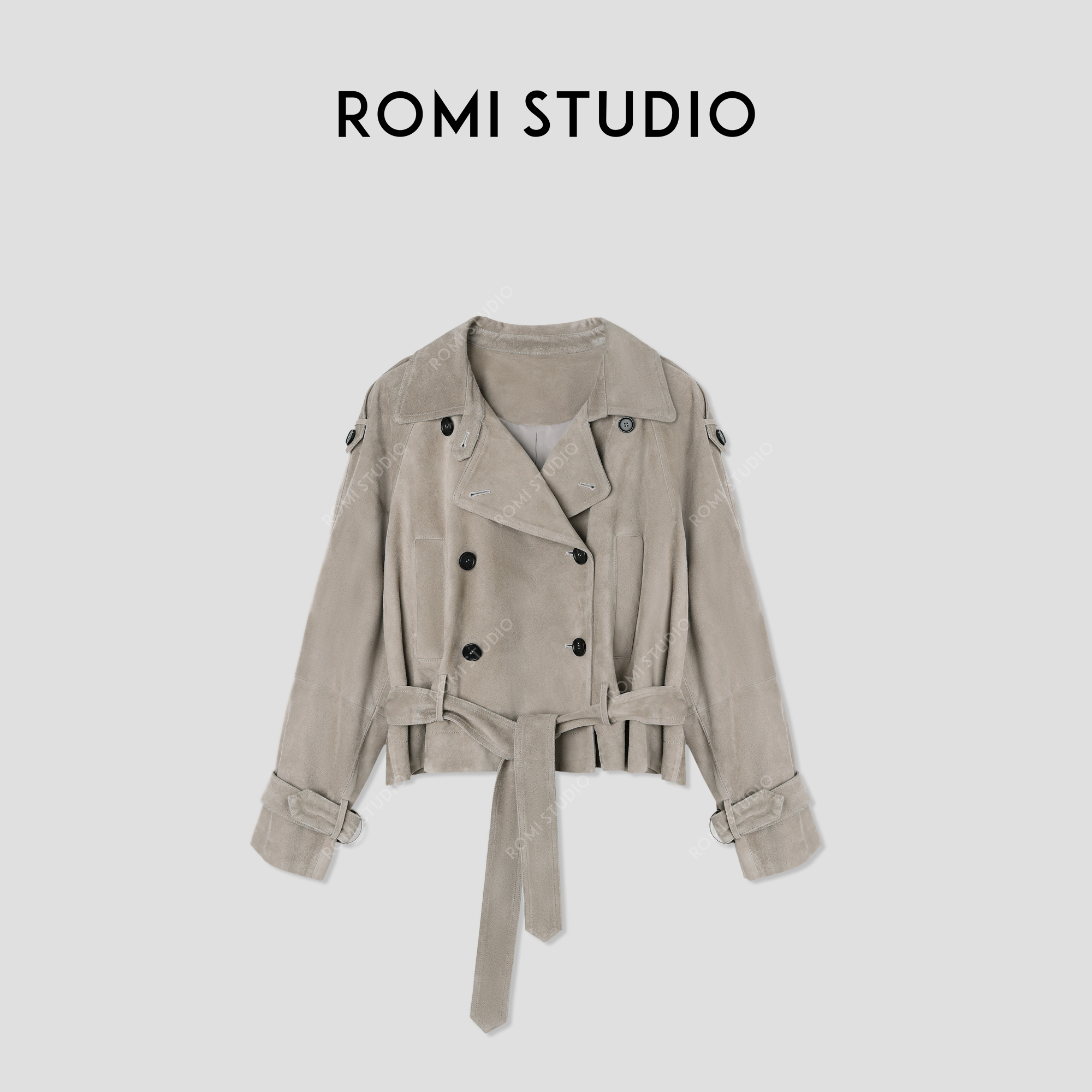 ROMI STUDIO“棕标甄选”意大利混种反绒羊皮腰带皮衣外套 24AWW004