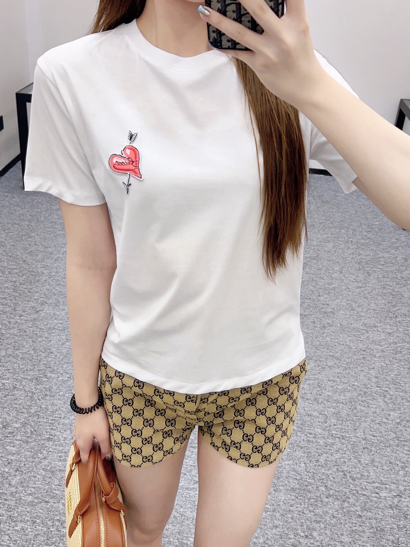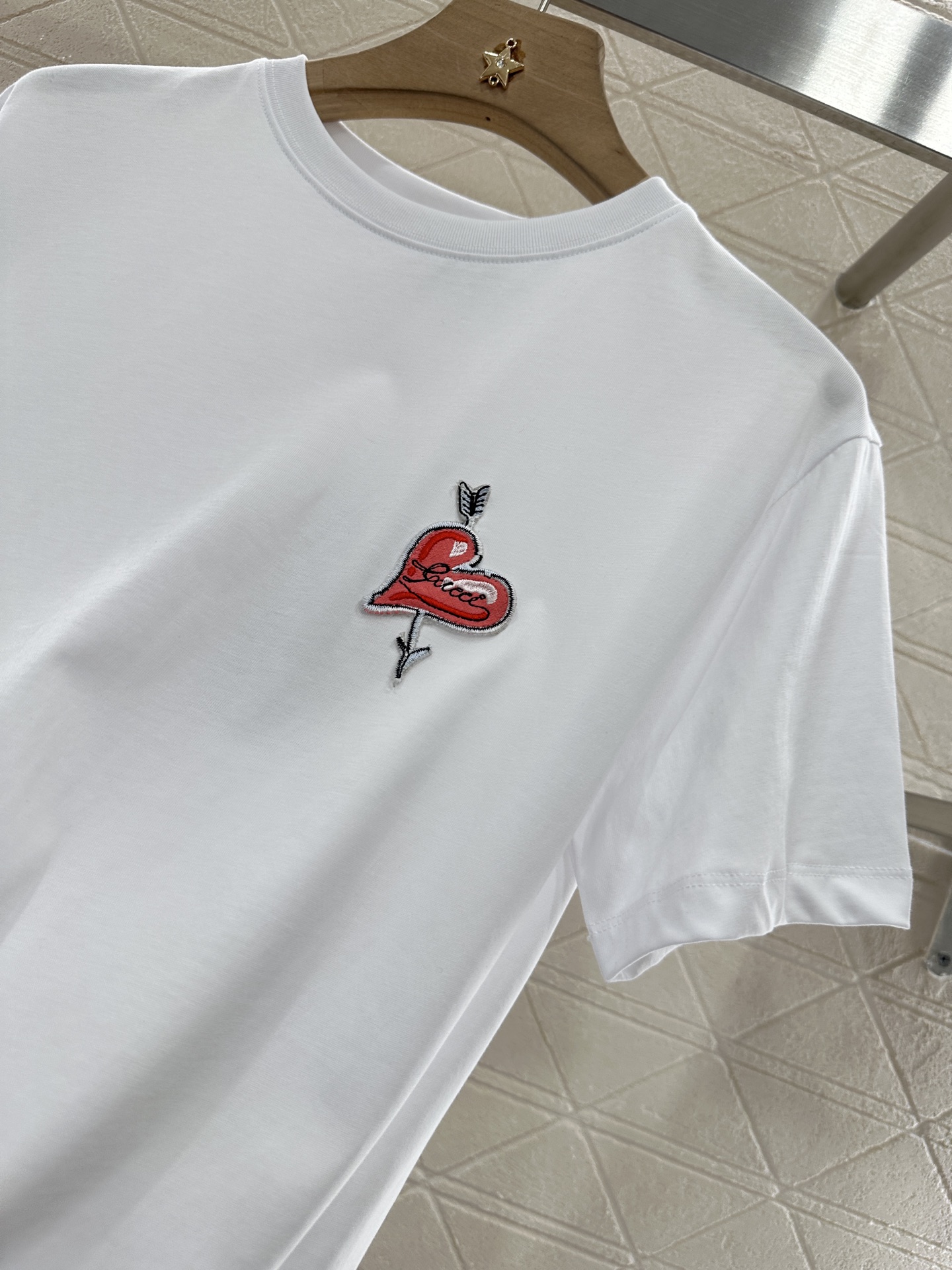 ♥G家*♥2025新品上架 圆领刺绣爱心𝑇𝑒𝑒