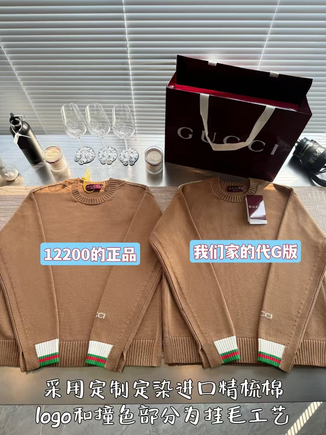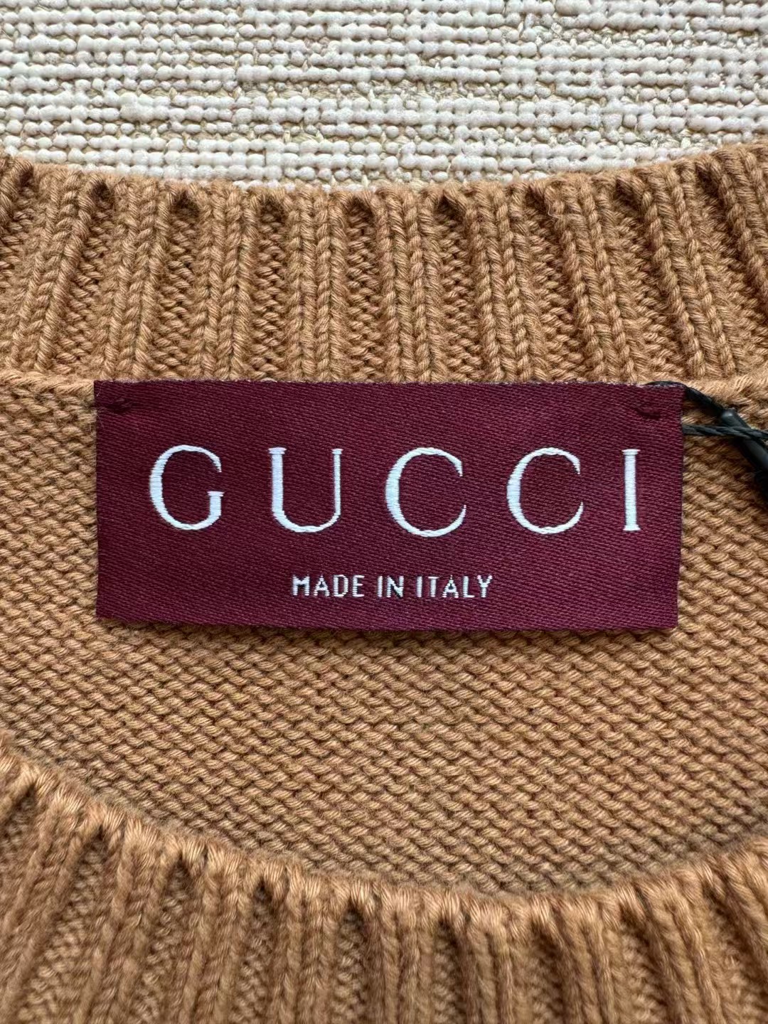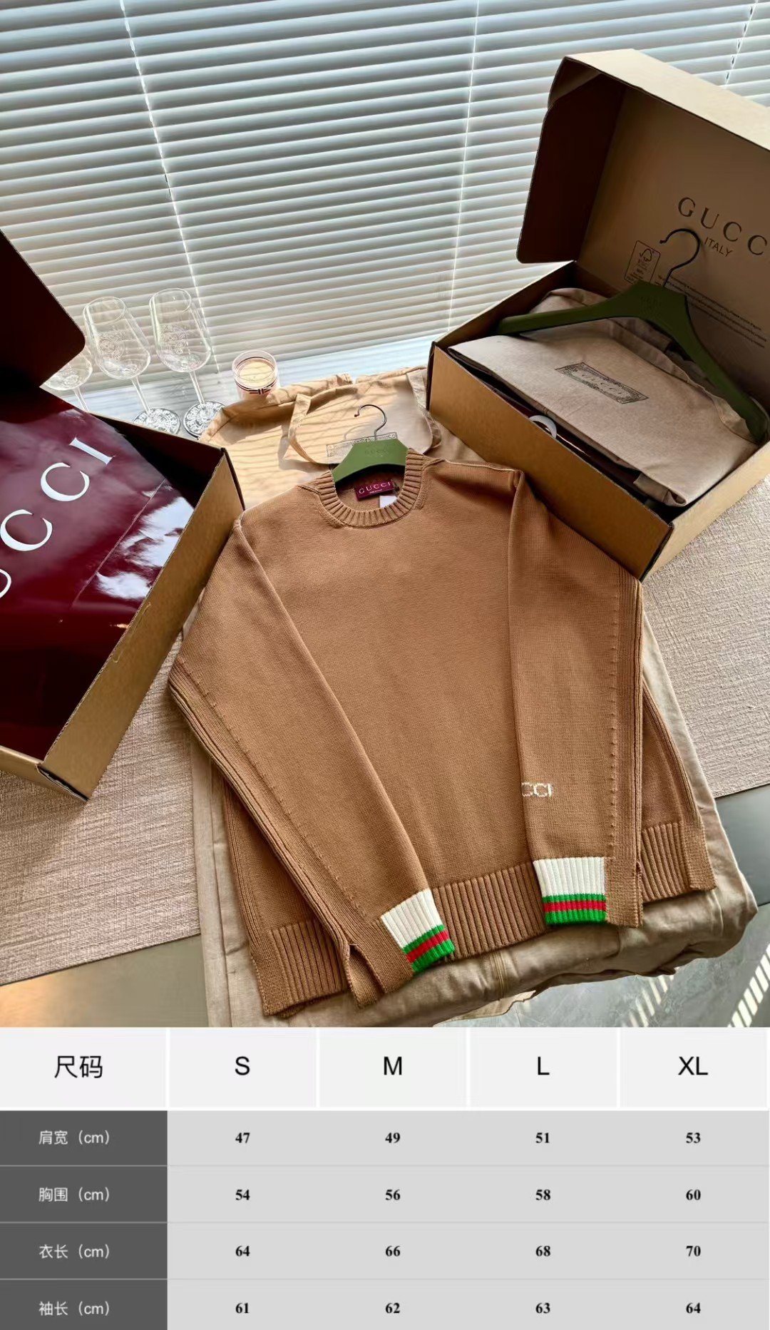 Gucci 24FW高级感满满简约毛衣,超火爆美拉德焦糖色 上身完美穿搭✌️整件衣服12200购买Zp拆解打造,定织精梳棉(比羊毛还贵的纱线)日本进口9针技术织毛而成,领口锁眼工艺做到一致,提花部位跟纱线融为一体达到最高级别,真正做到1:1copy 闭眼入 码数:S M L XL