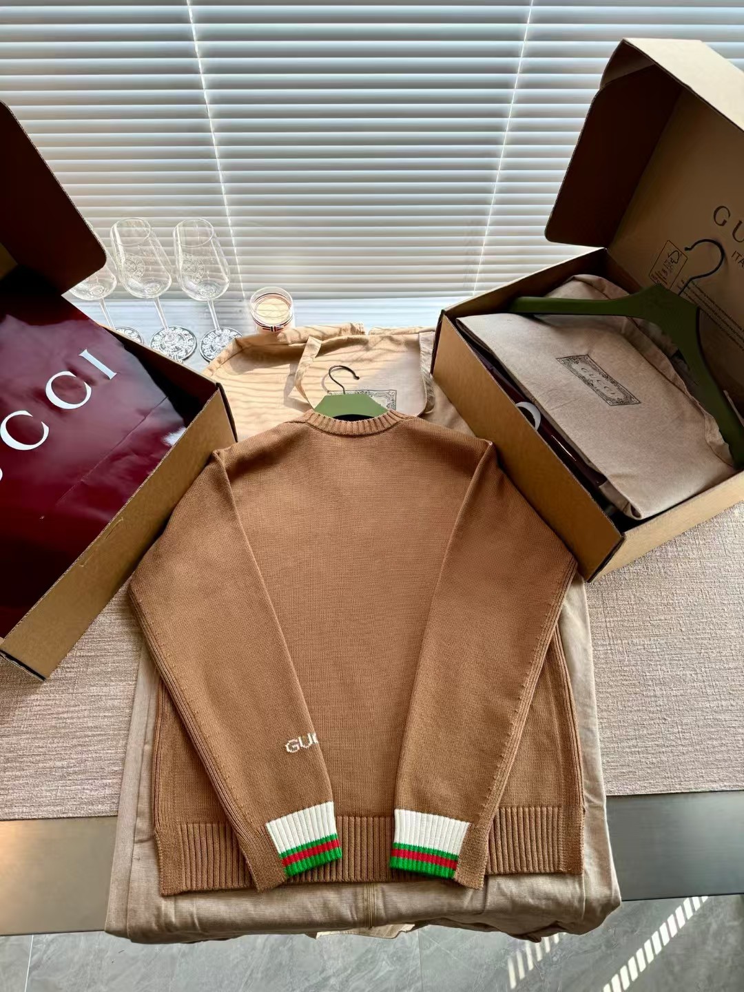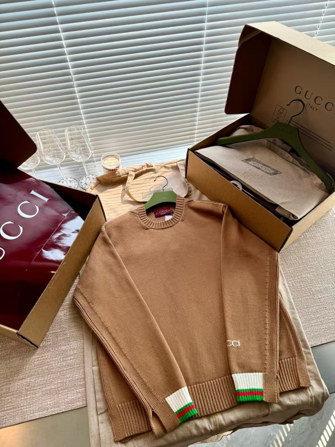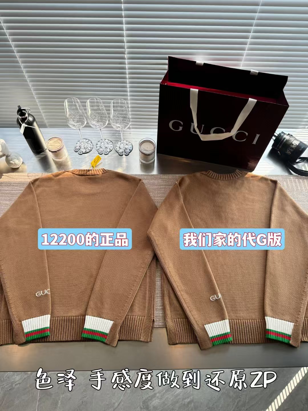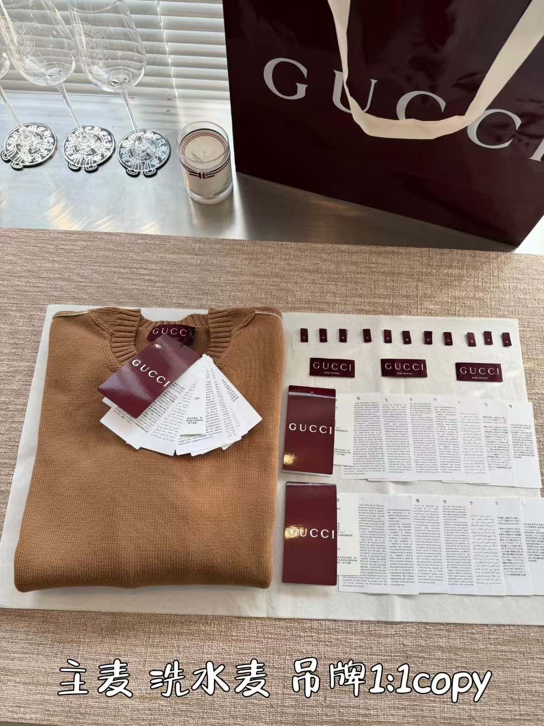 Gucci 24FW高级感满满简约毛衣,超火爆美拉德焦糖色 上身完美穿搭✌️整件衣服12200购买Zp拆解打造,定织精梳棉(比羊毛还贵的纱线)日本进口9针技术织毛而成,领口锁眼工艺做到一致,提花部位跟纱线融为一体达到最高级别,真正做到1:1copy 闭眼入 码数:S M L XL