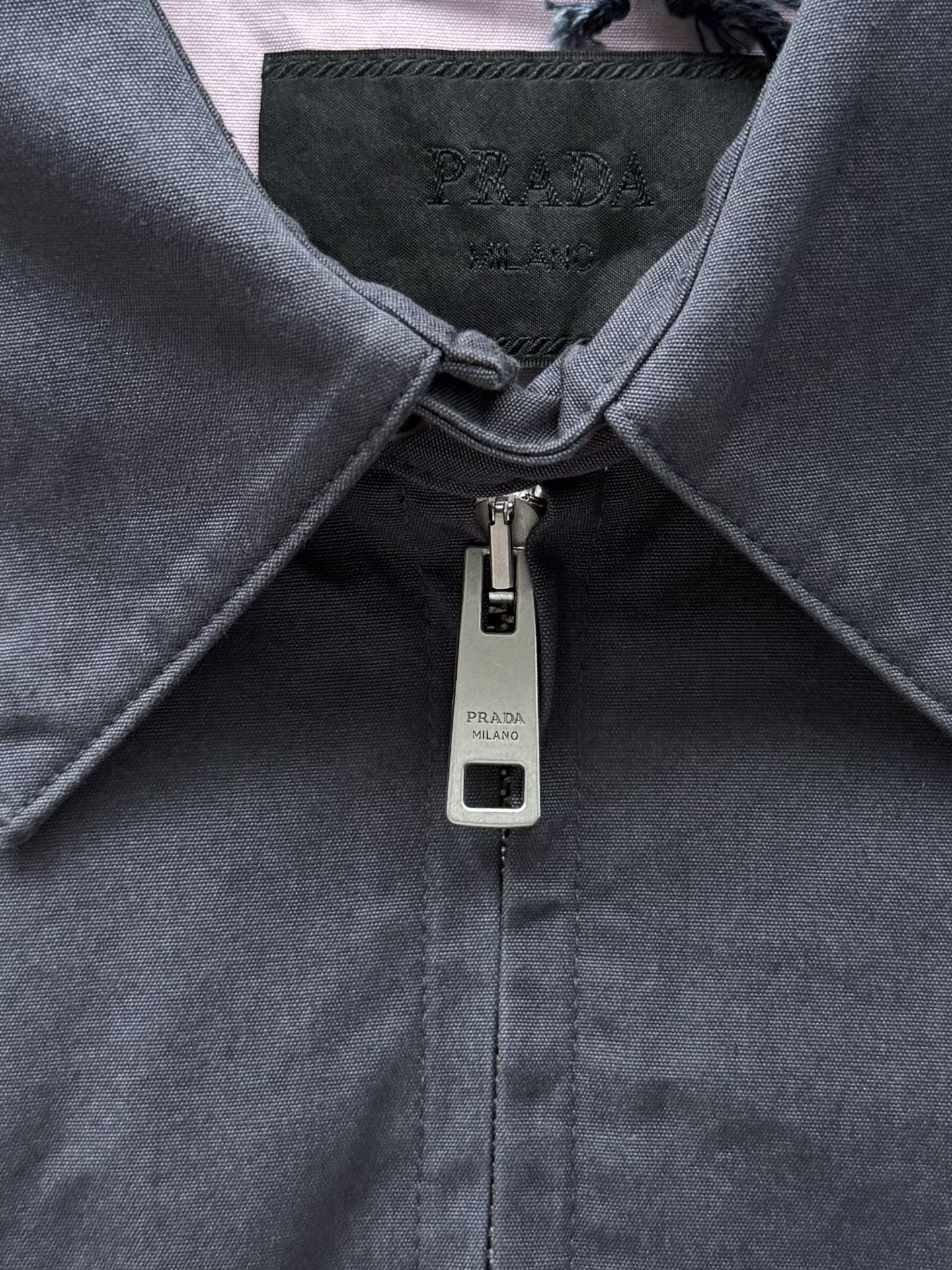 PRADA25FW刺绣字母标识棉质外套‼️整件衣服19300购买ZP拆解打造,定制棉质面料,做到100%全棉进口纱线,胸前饰以刺绣字母标识设计,松紧袖口 下摆,门襟开模定制PRADA字母logo拉链,真正做到1:1copy 闭眼入 码数:46 48 50 52