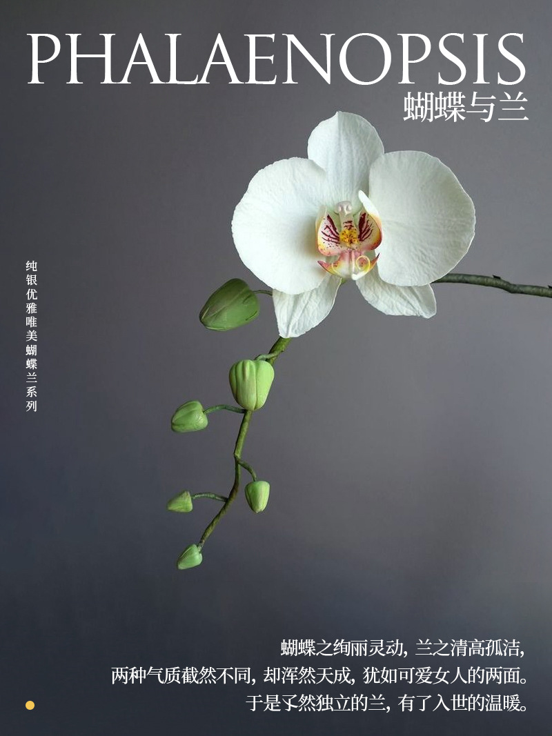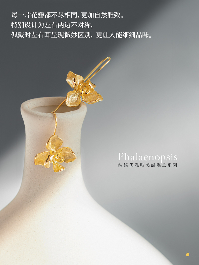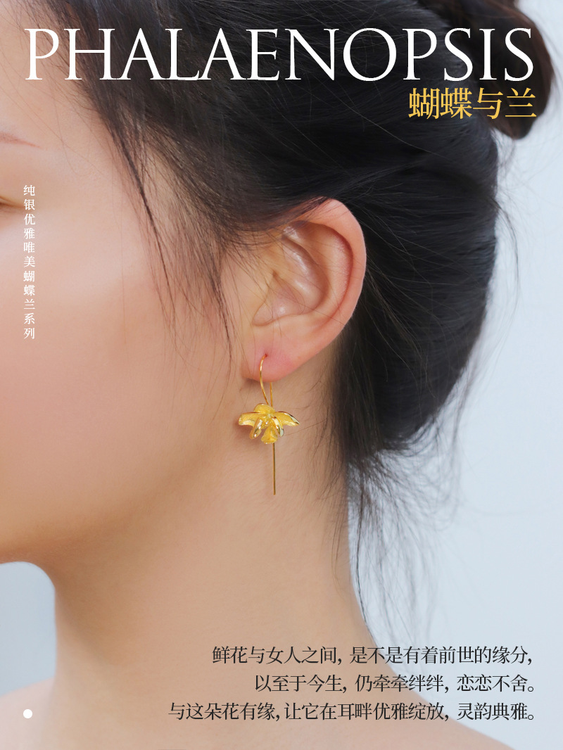 蝴蝶与兰 纯银蝴蝶兰耳饰