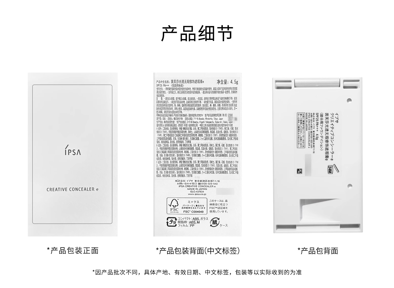 茵芙莎IPSA 纯美无瑕修饰遮瑕膏SPF25/PA+++(三色遮瑕)4.5g
