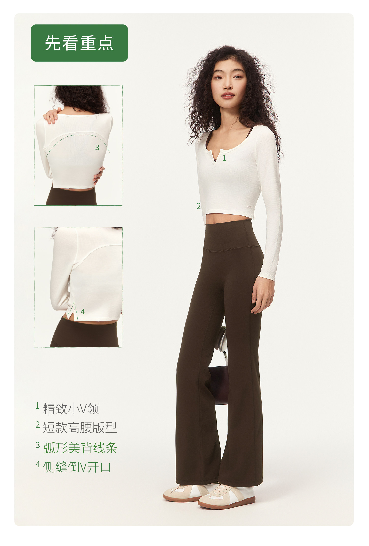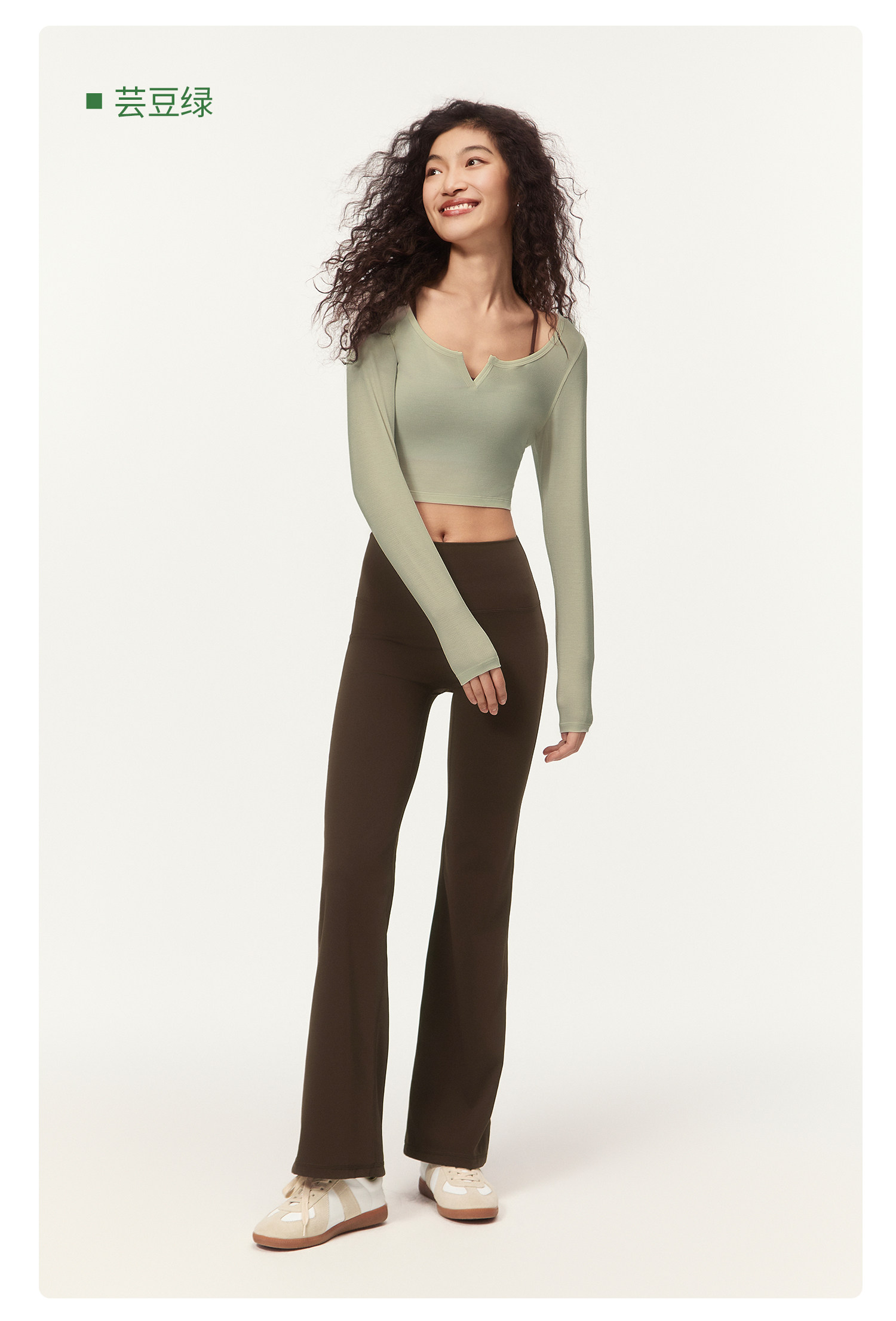 YOTTOY大U领长袖瑜伽服 女收腰修身运动健身 普拉提训练上衣