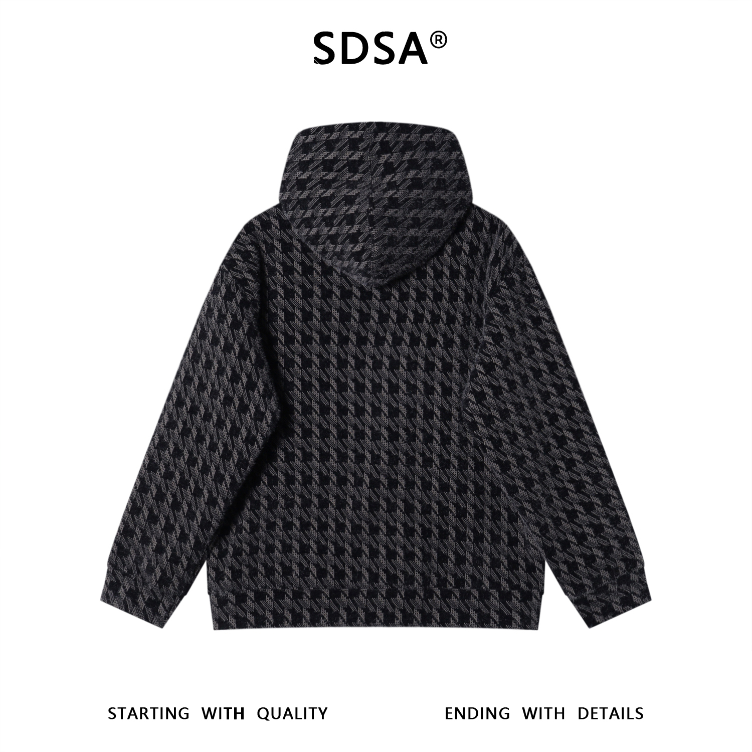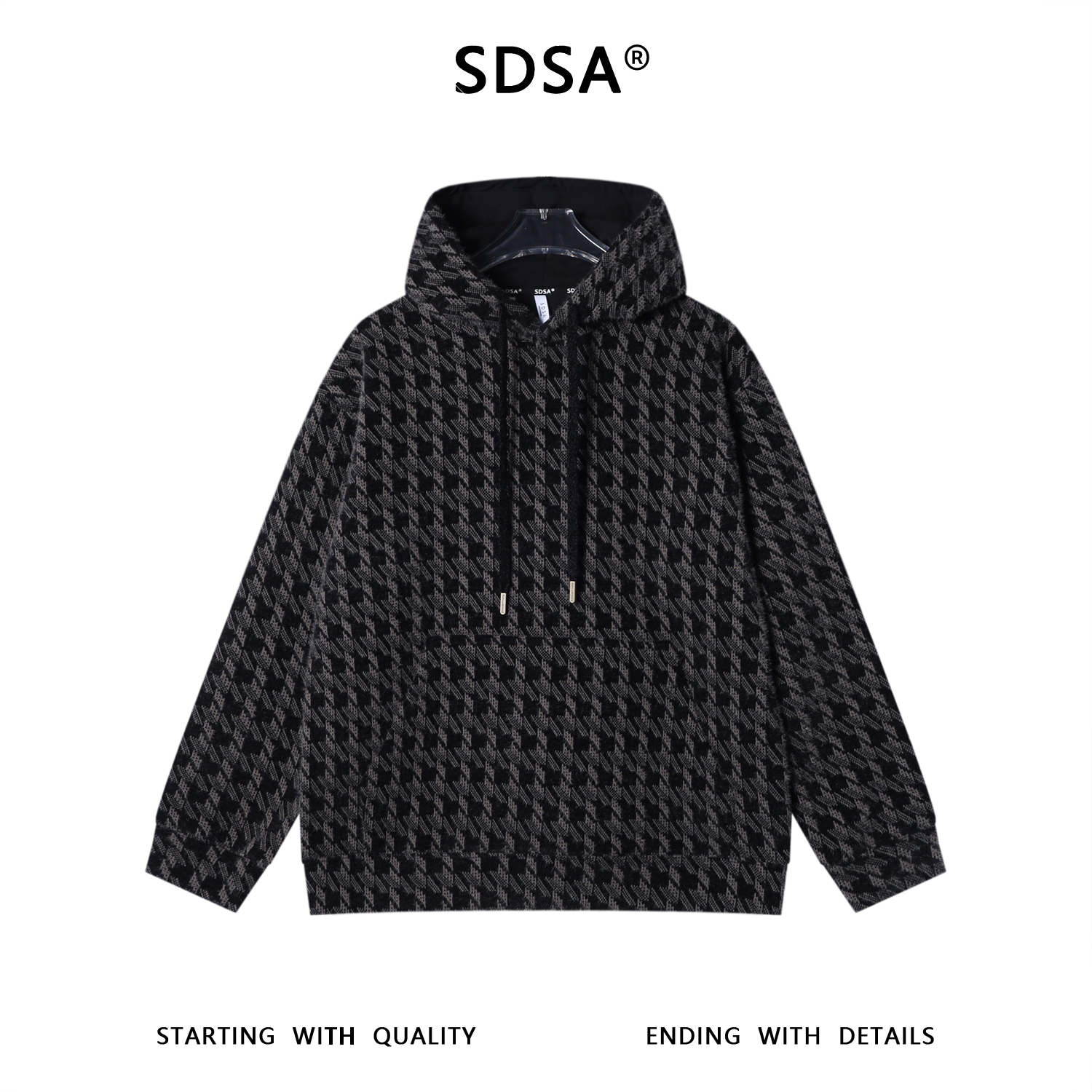 WY1322SDSA男士秋冬新款痞帅男装潮牌绒毛撞色格子抽绳连帽卫衣百搭时尚