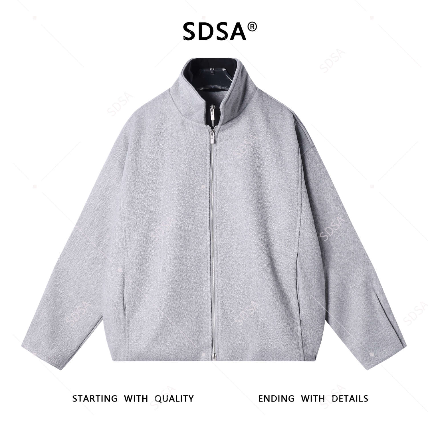 SDSA男士秋冬新款痞帅男装时尚简约撞色拉链立领毛呢夹克外套百搭