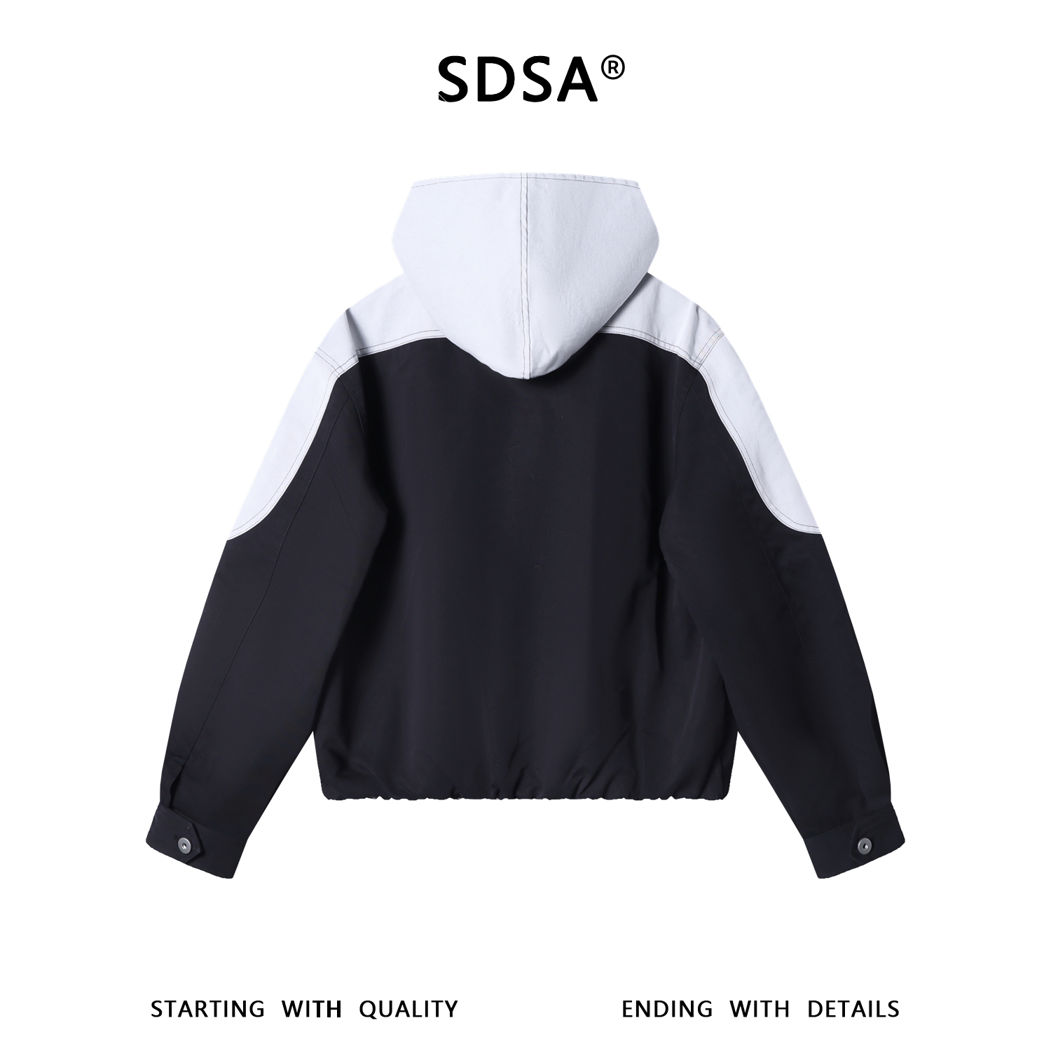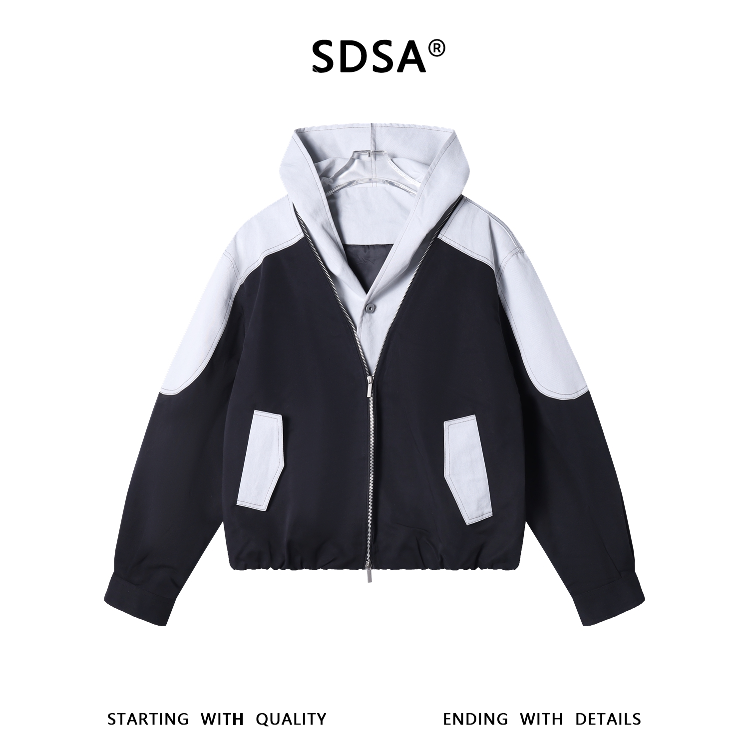 SDSA男装2026新款高贵轻奢韩版拼接假两件连帽夹克外套百搭宽松