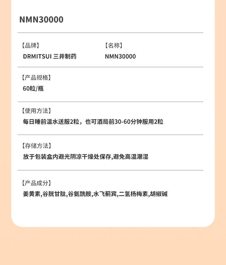三井制药生命基因NMN30000衰老线粒体童颜丸高含量年轻态肝烟酰胺