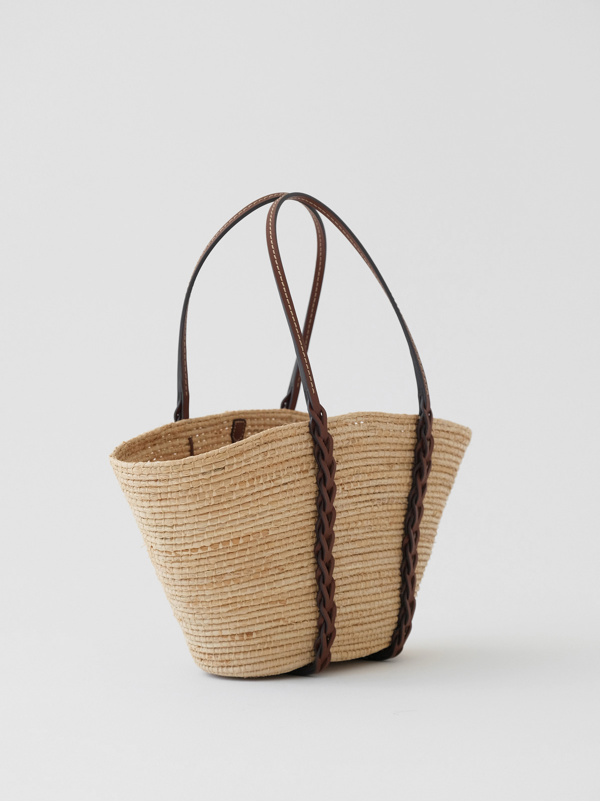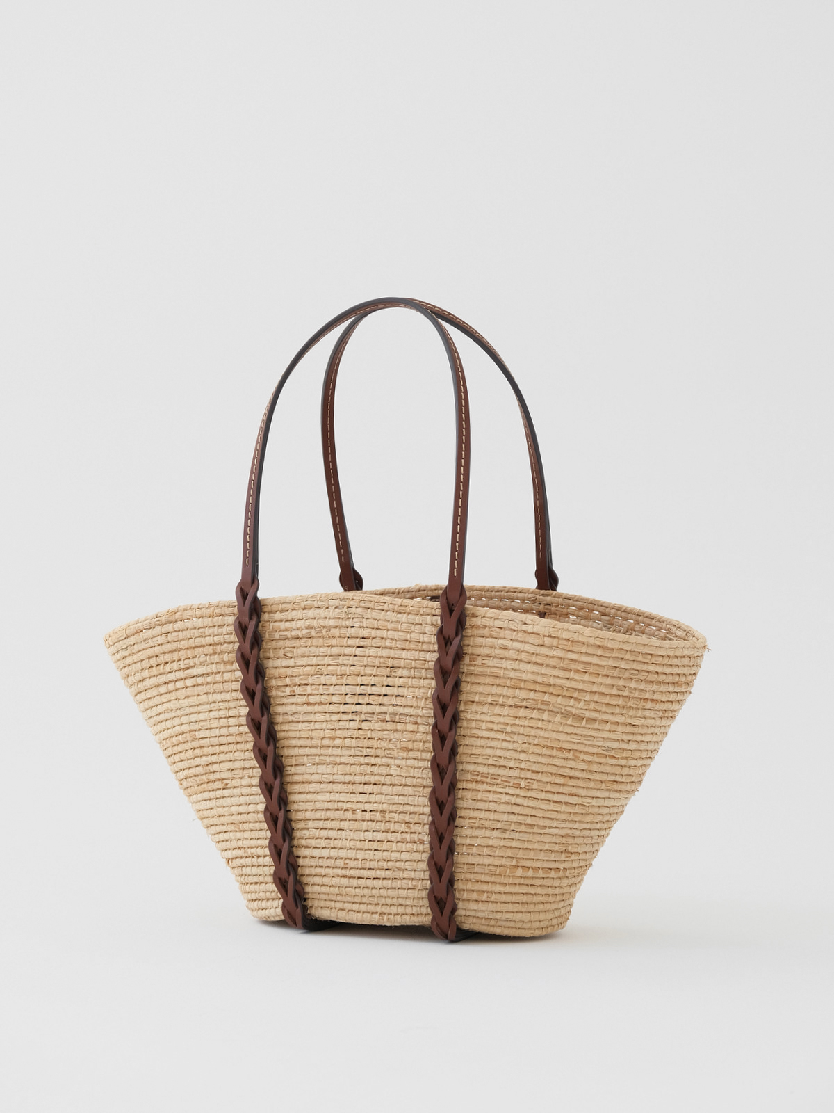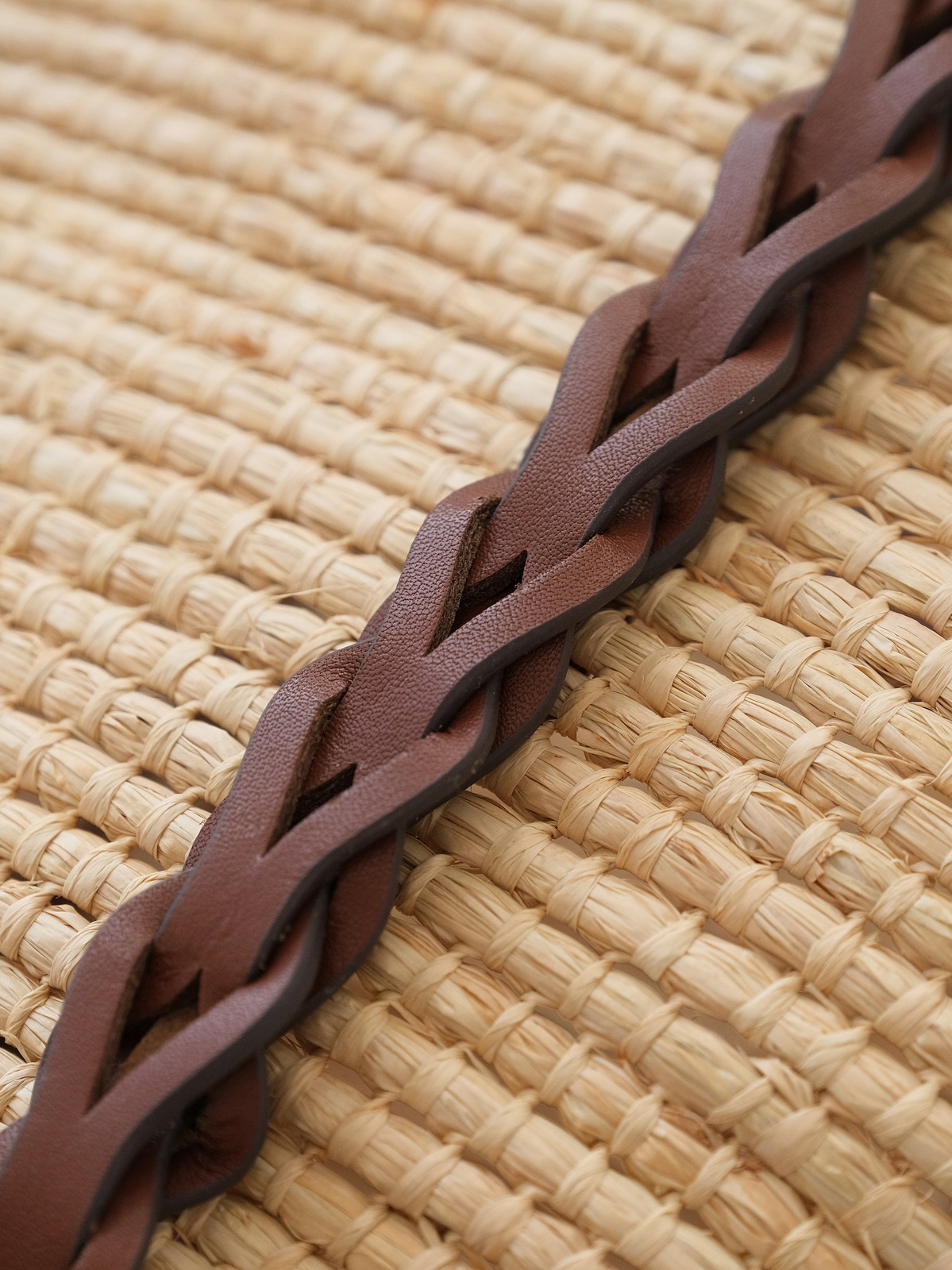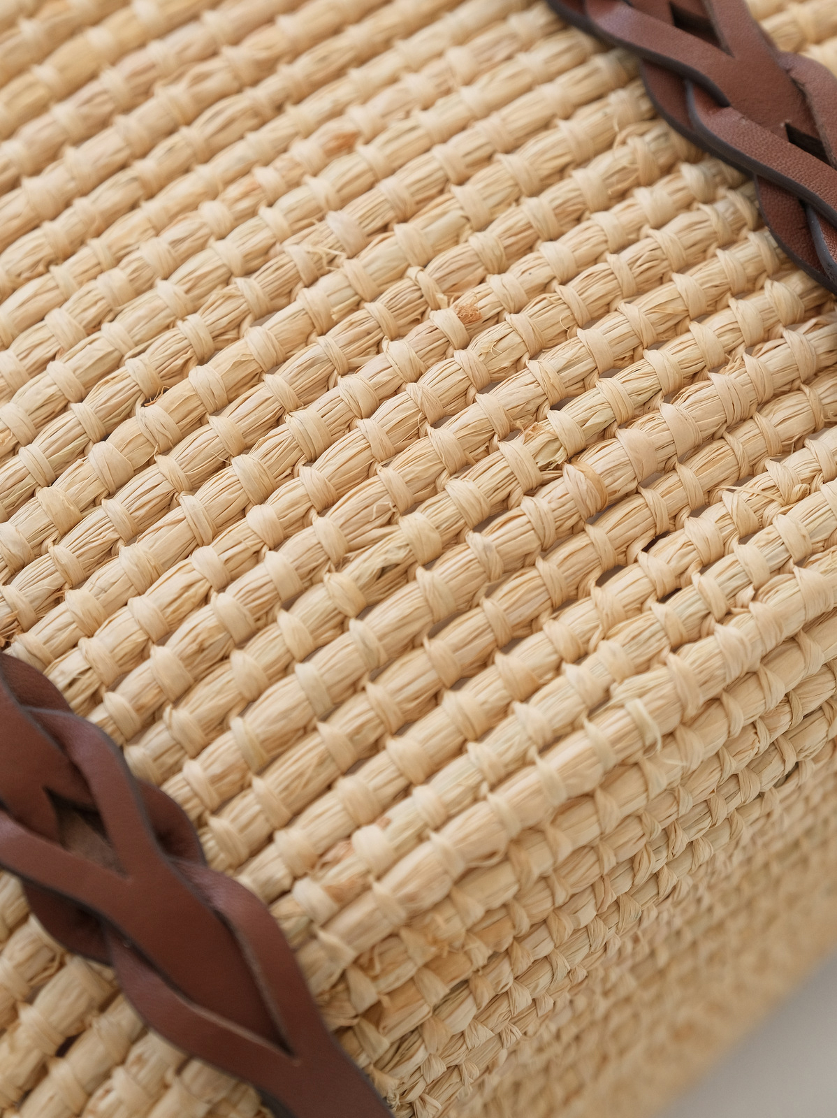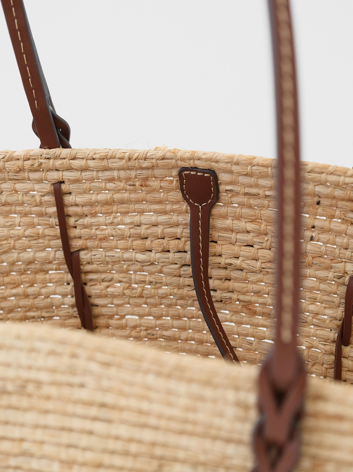 BT348-PRADA普拉达 三角形烫印徽标 稻草柳条拼皮革 托特包Tote包购物袋单肩手提包 原色(RG*MM)