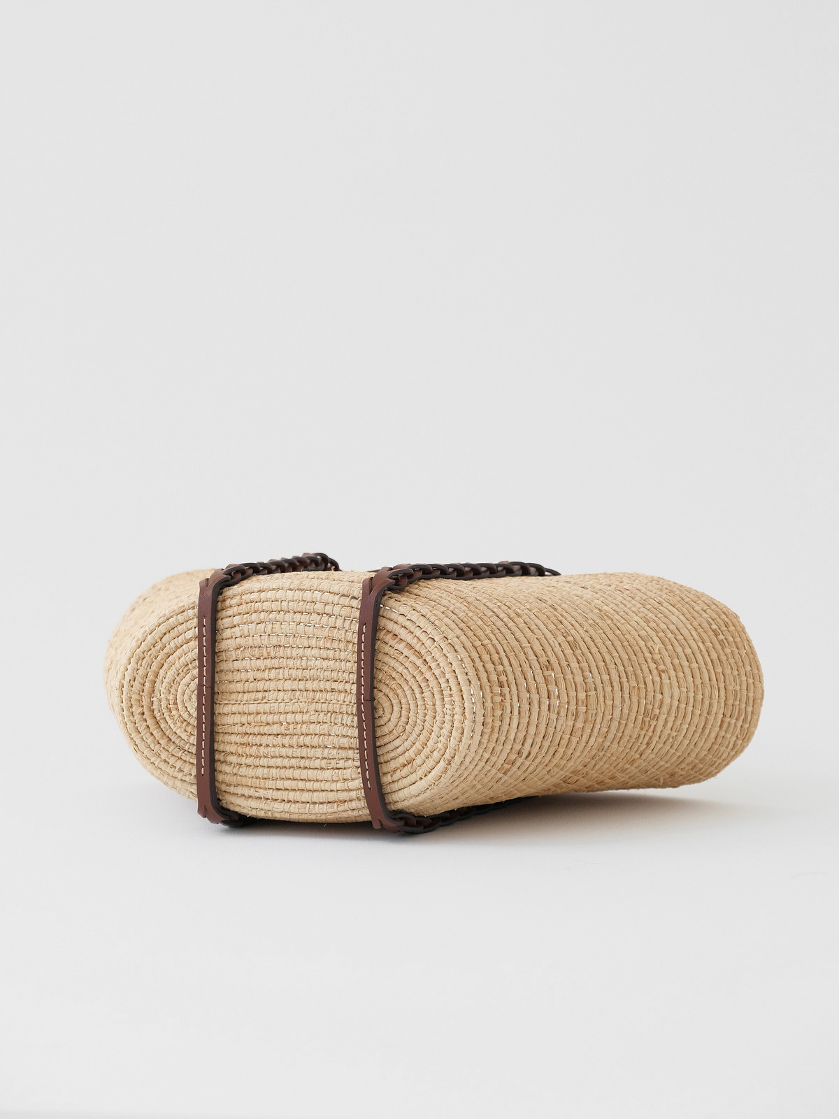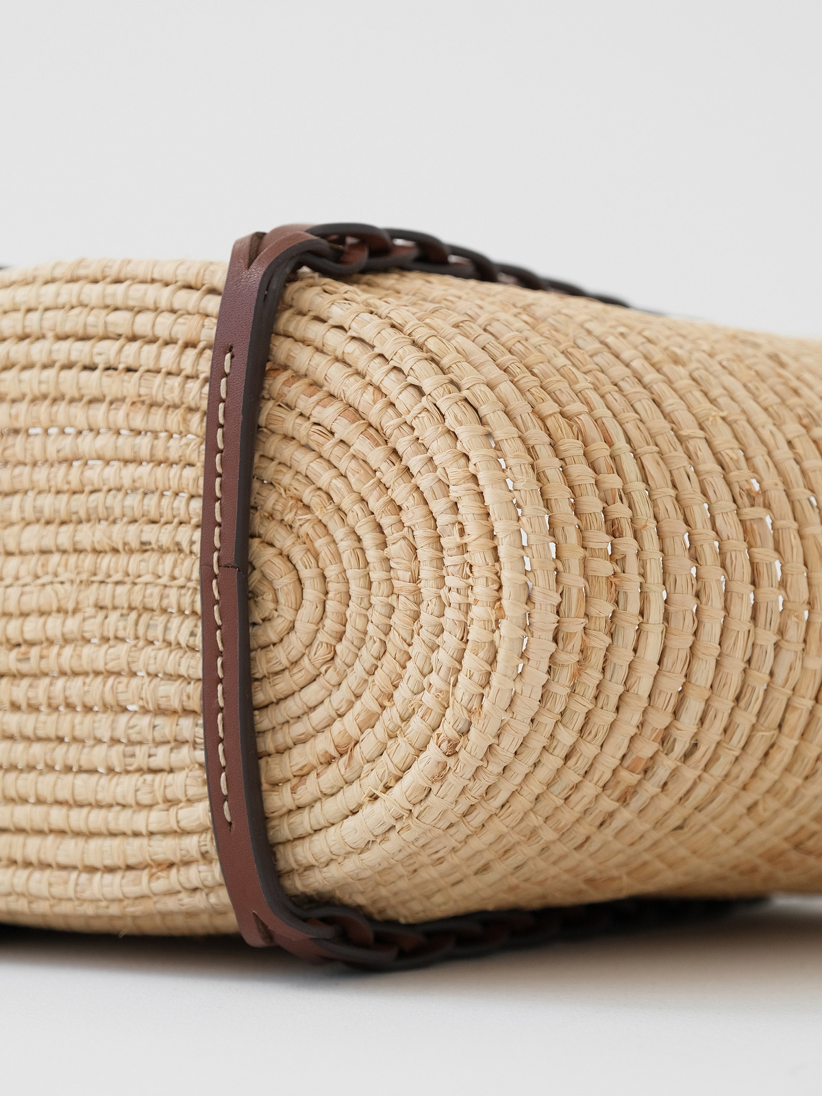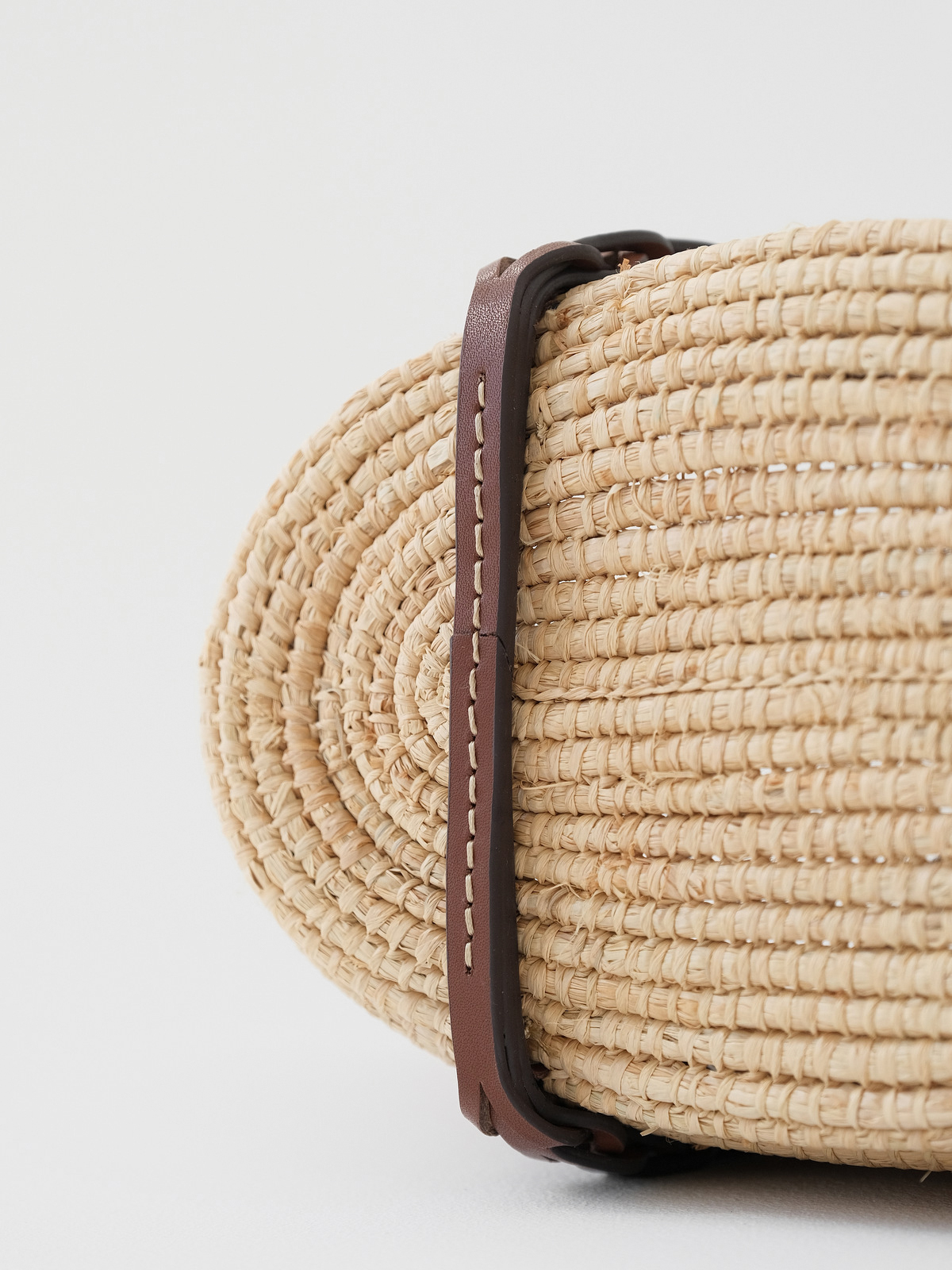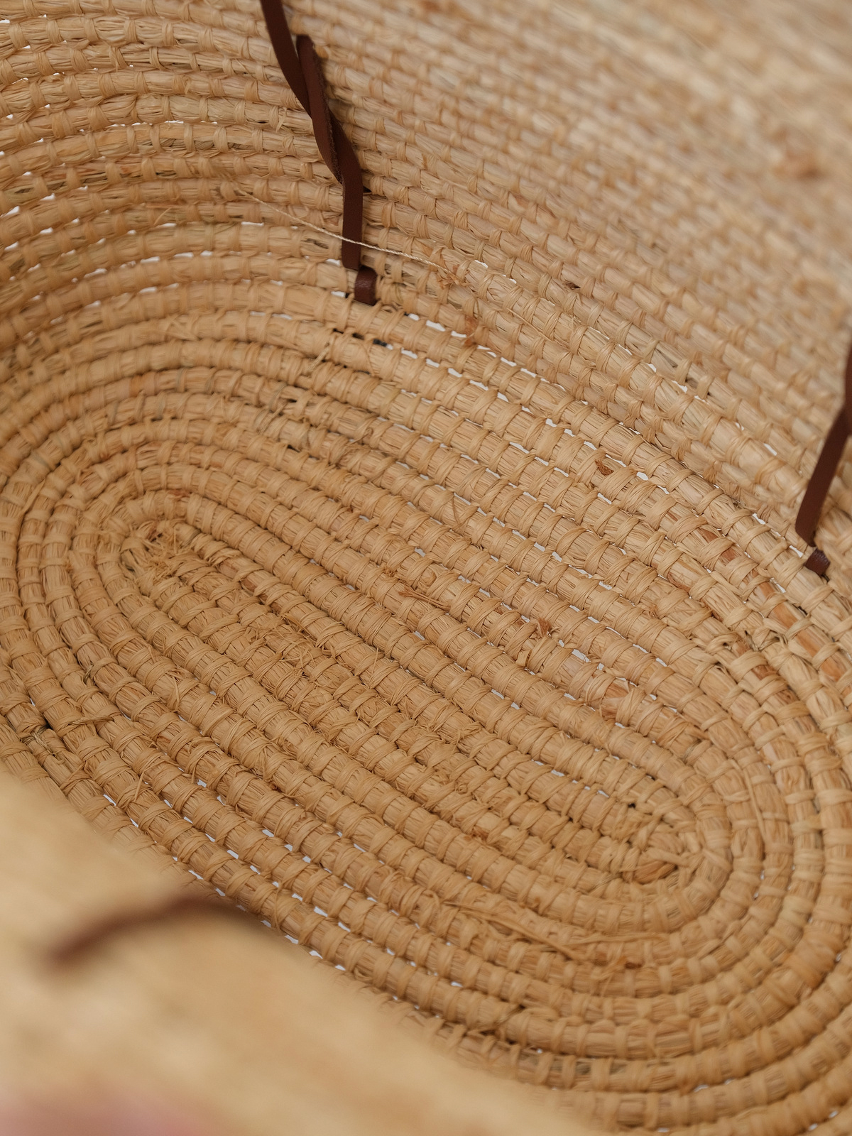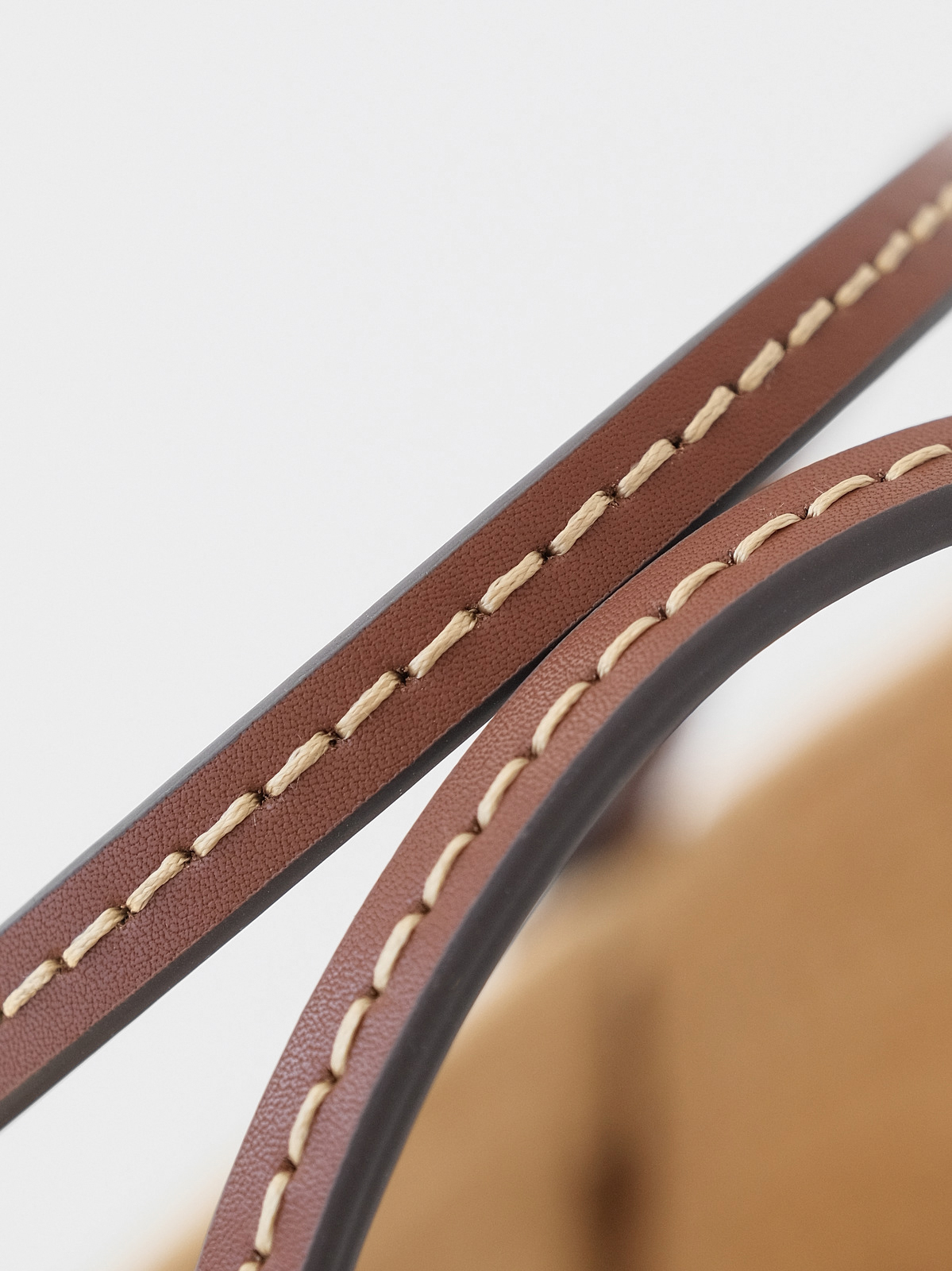 BT348-PRADA普拉达 三角形烫印徽标 稻草柳条拼皮革 托特包Tote包购物袋单肩手提包 原色(RG*MM)