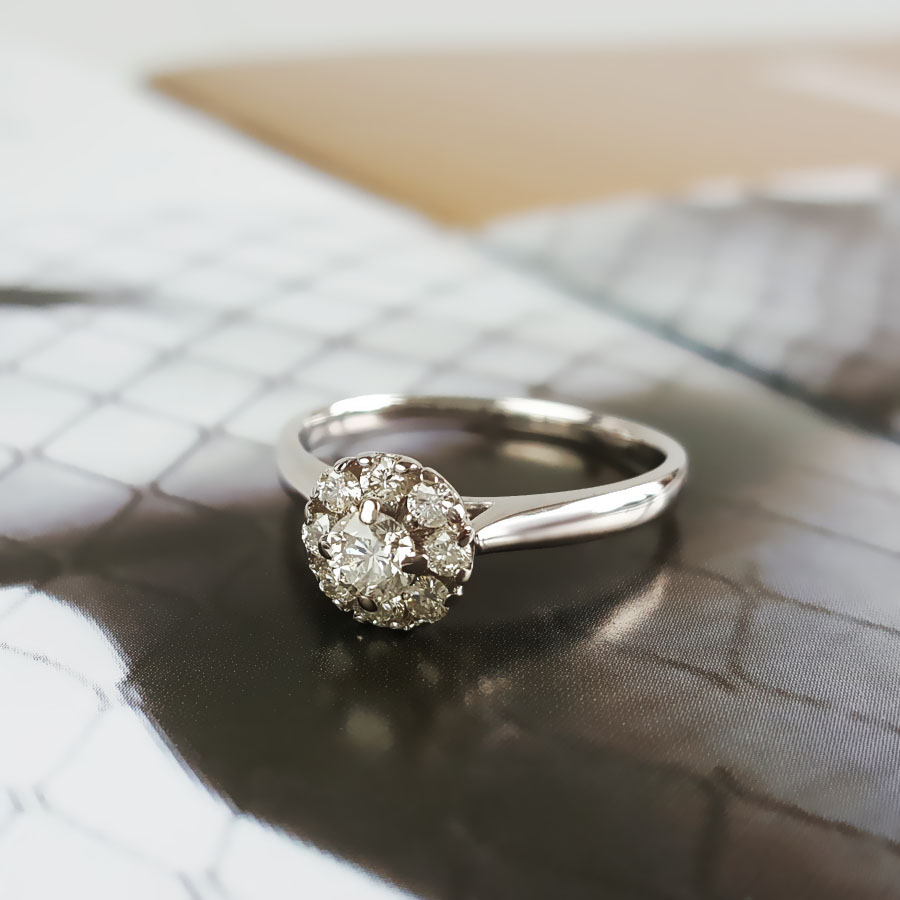 名称 | AU750白金时尚简约花朵造型0.25克拉钻石戒指 克拉钻石戒指 |