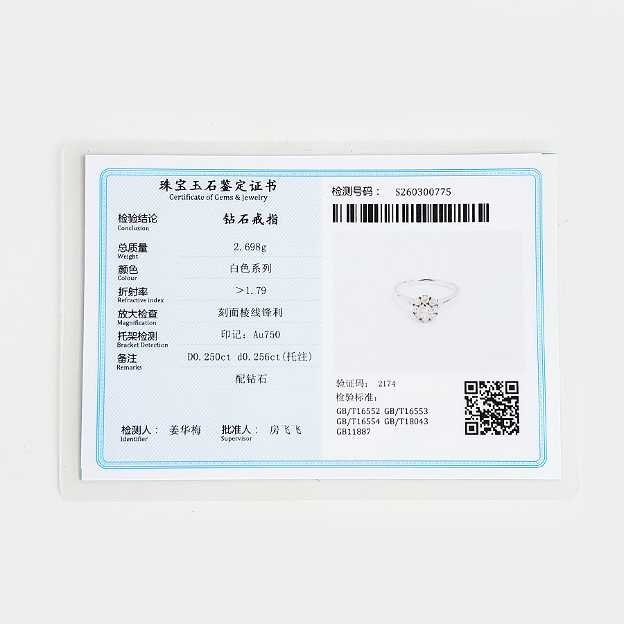 颜色/材质 | 白色/钻石/AU750白金 |