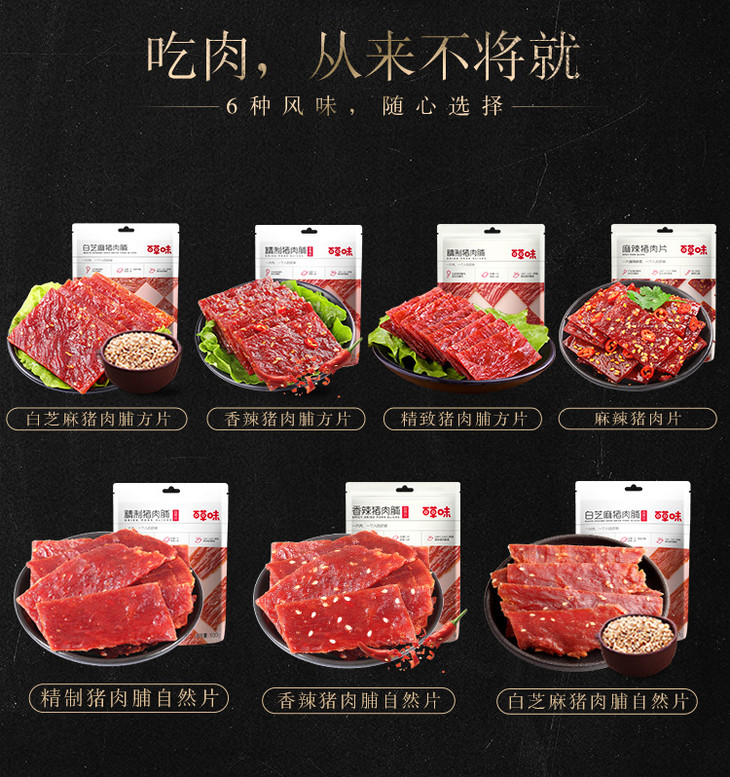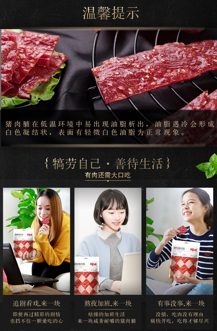 【满299减210】百草味猪肉脯100g 零食小吃靖江肉干