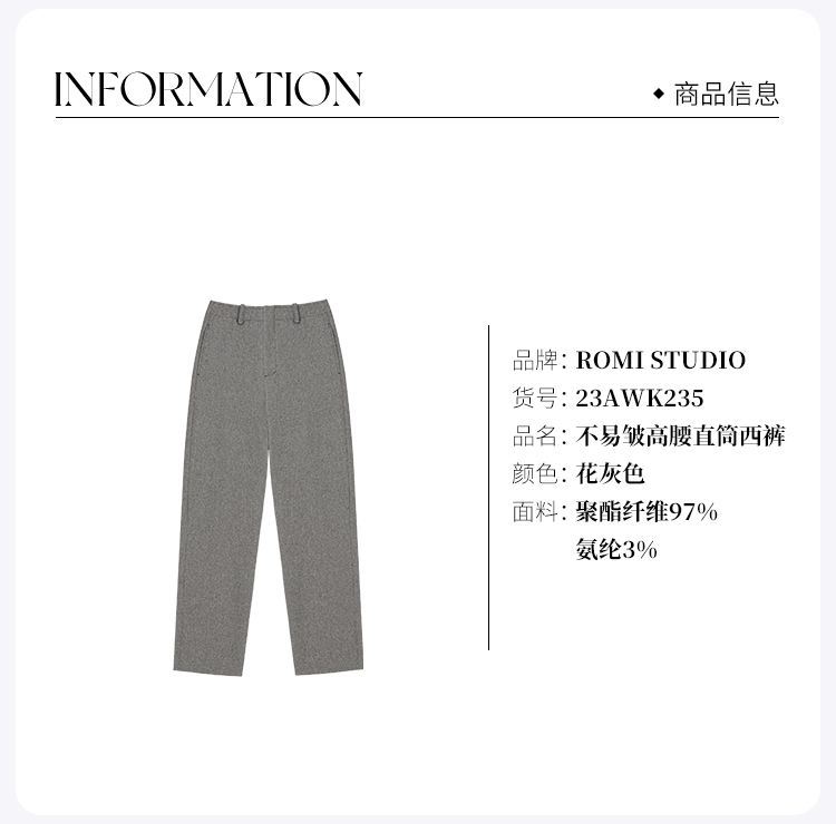 ROMI STUDIO“率性优雅”高密花纱立裁不易皱高腰直筒西裤 23AWK235