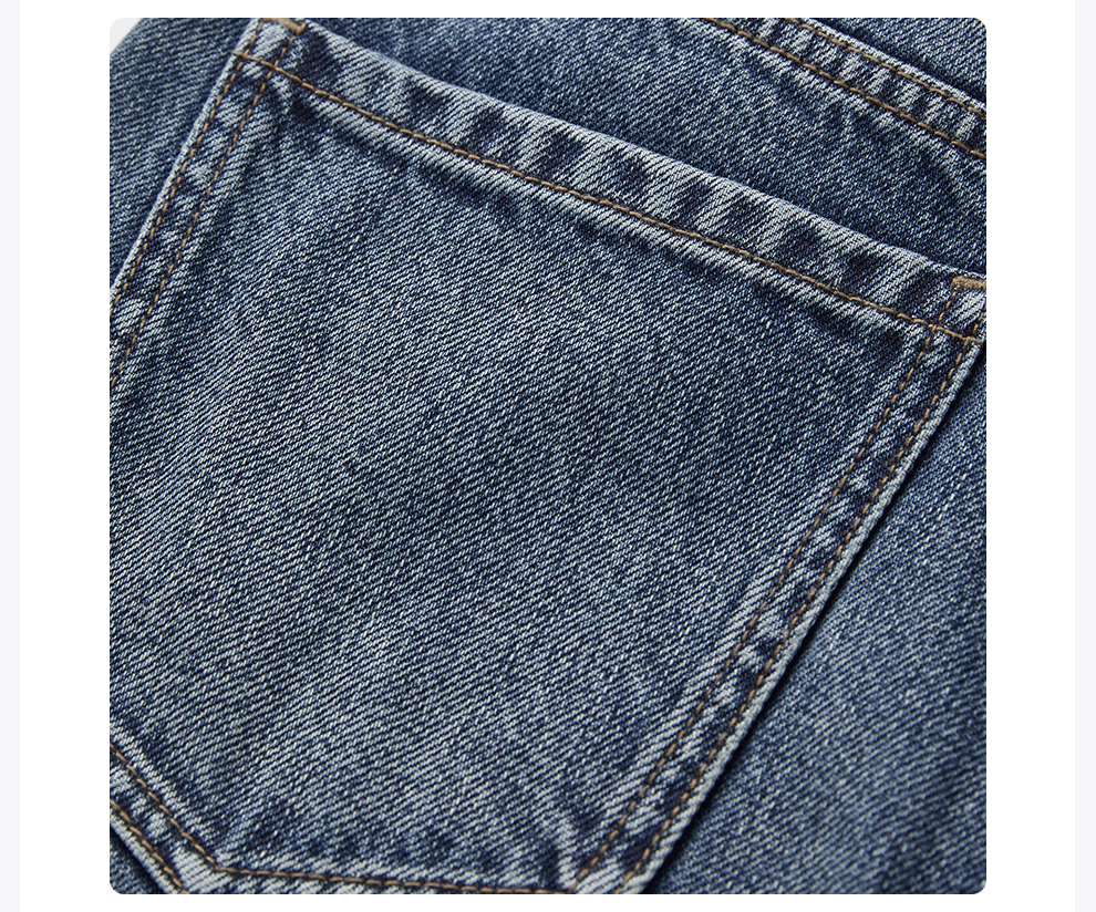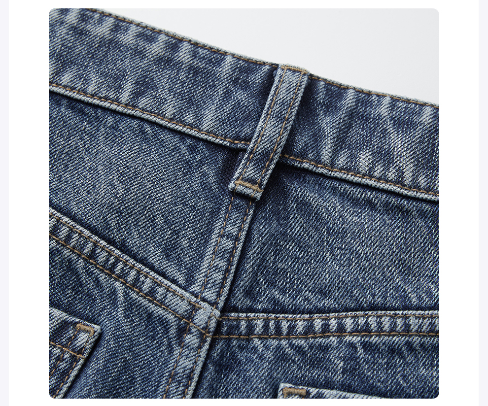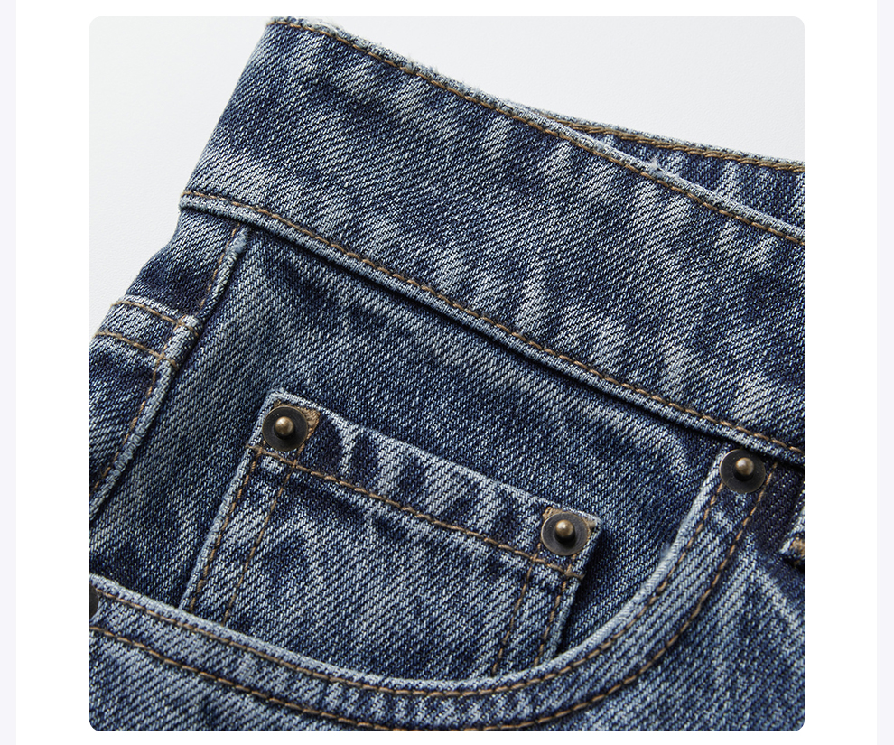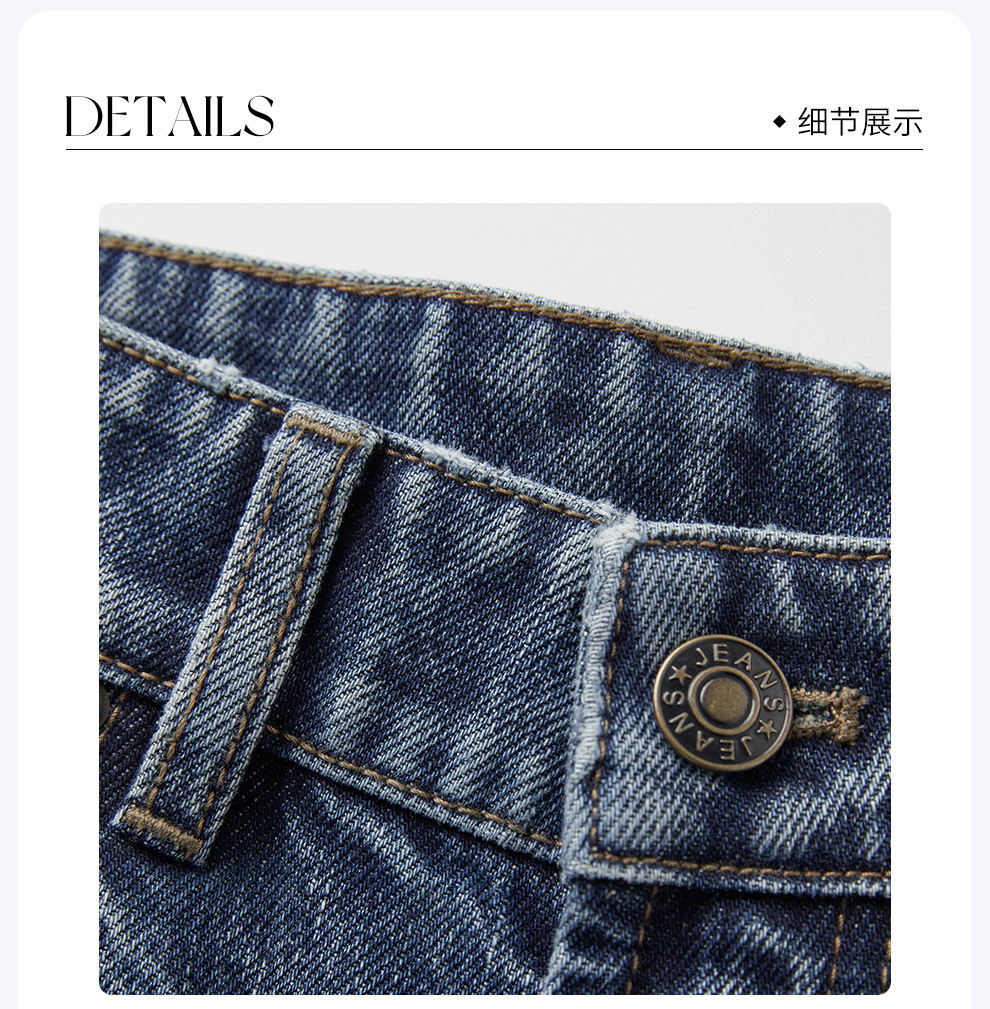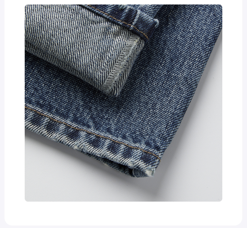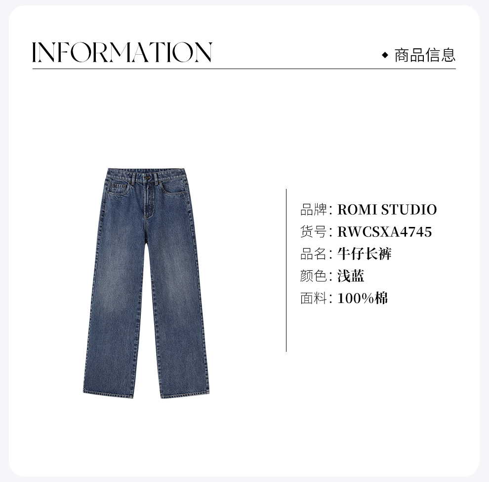 ROMI STUDIO“复古丹宁”斜纹棉水洗猫须翻边直筒牛仔裤RW24WXD1086