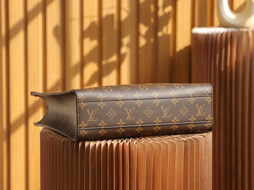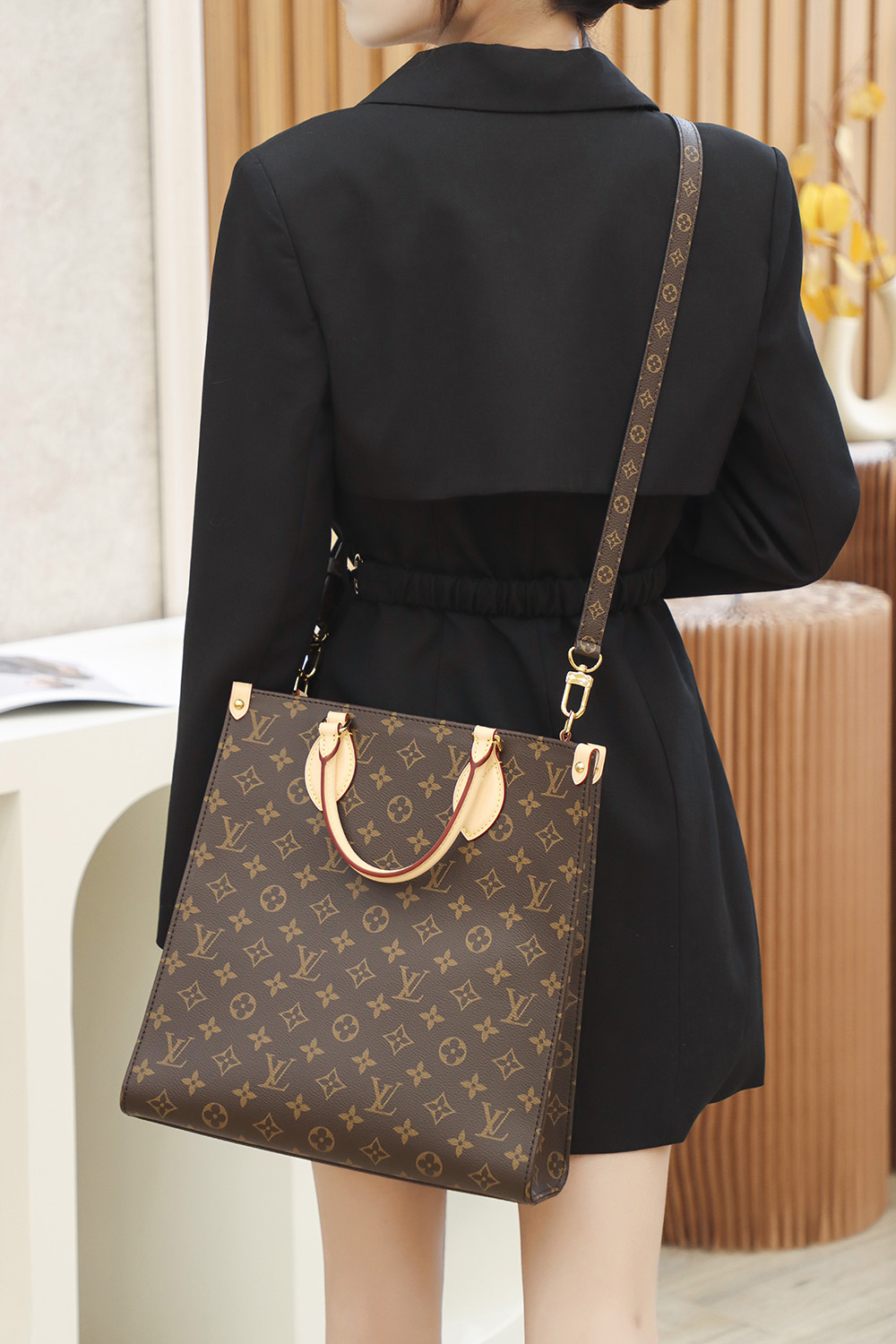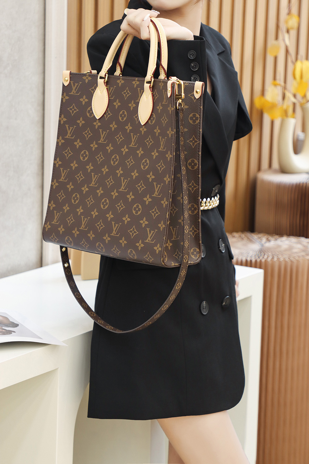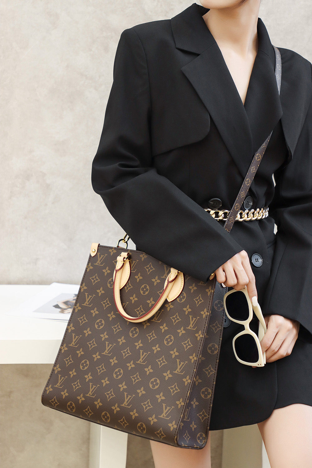 此款造型经典的Sac Plat手袋在光滑的MONOGRAM帆布衬托下,极尽低调的的优雅。