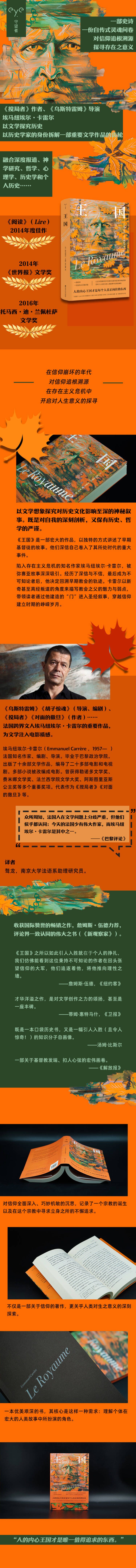 《王国》是一部宏大的作品,以独特的方式讲述了早期基督徒的故事——他们深信自己卷入了其所处时代的重大事件,他们看似不可思议的信仰后来竟征服了世界……