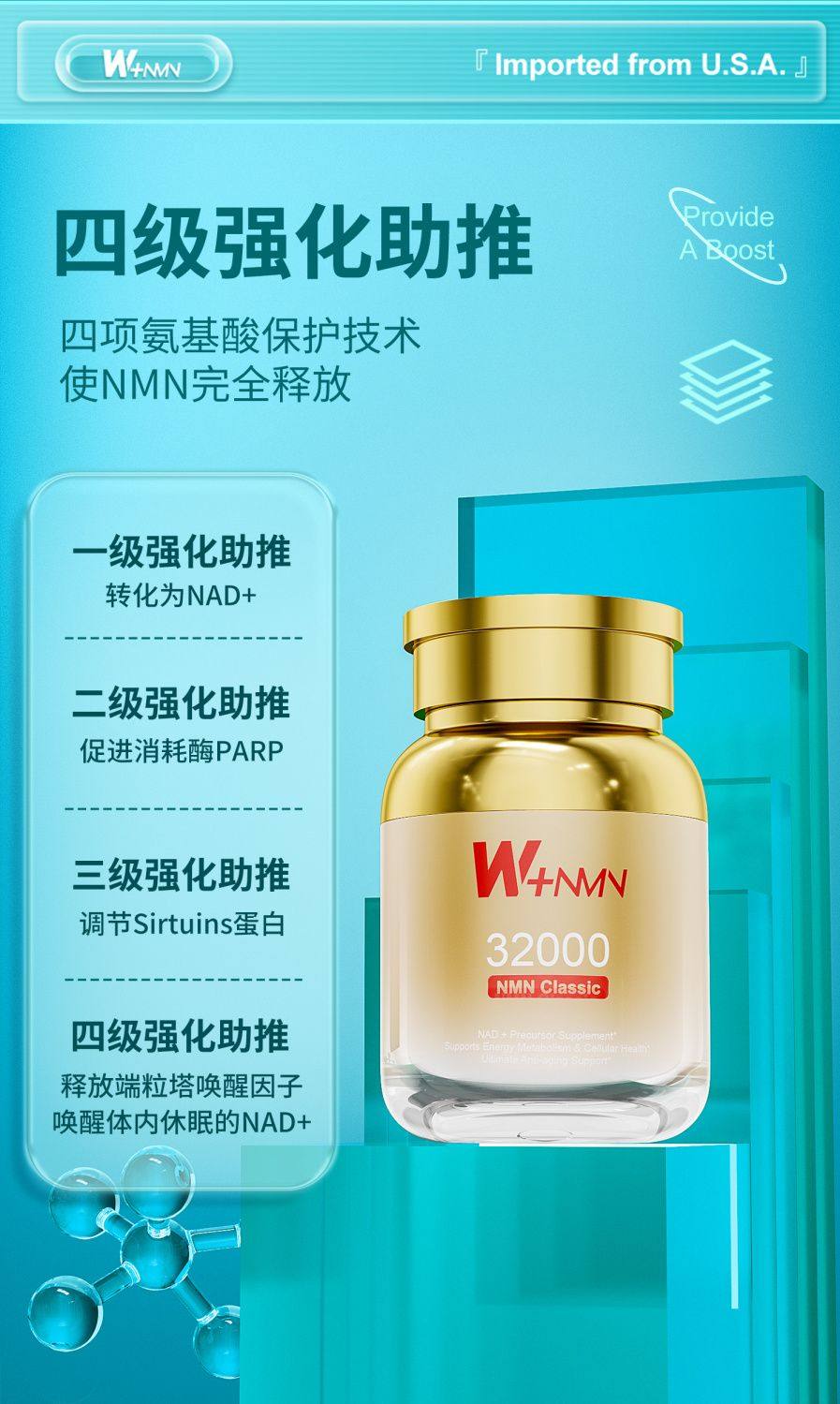 美国进口W+端粒塔NMN32000男女通用增强型NAD+补充剂原装正品80粒