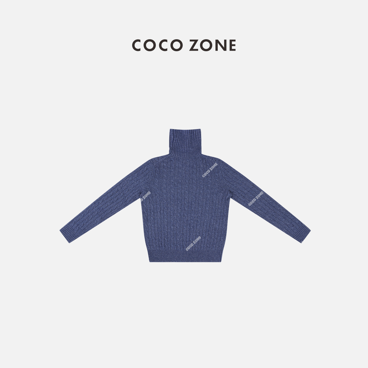 COCO ZONE洋气高领麻花纹针织衫纯色休闲毛织上衣23C50020