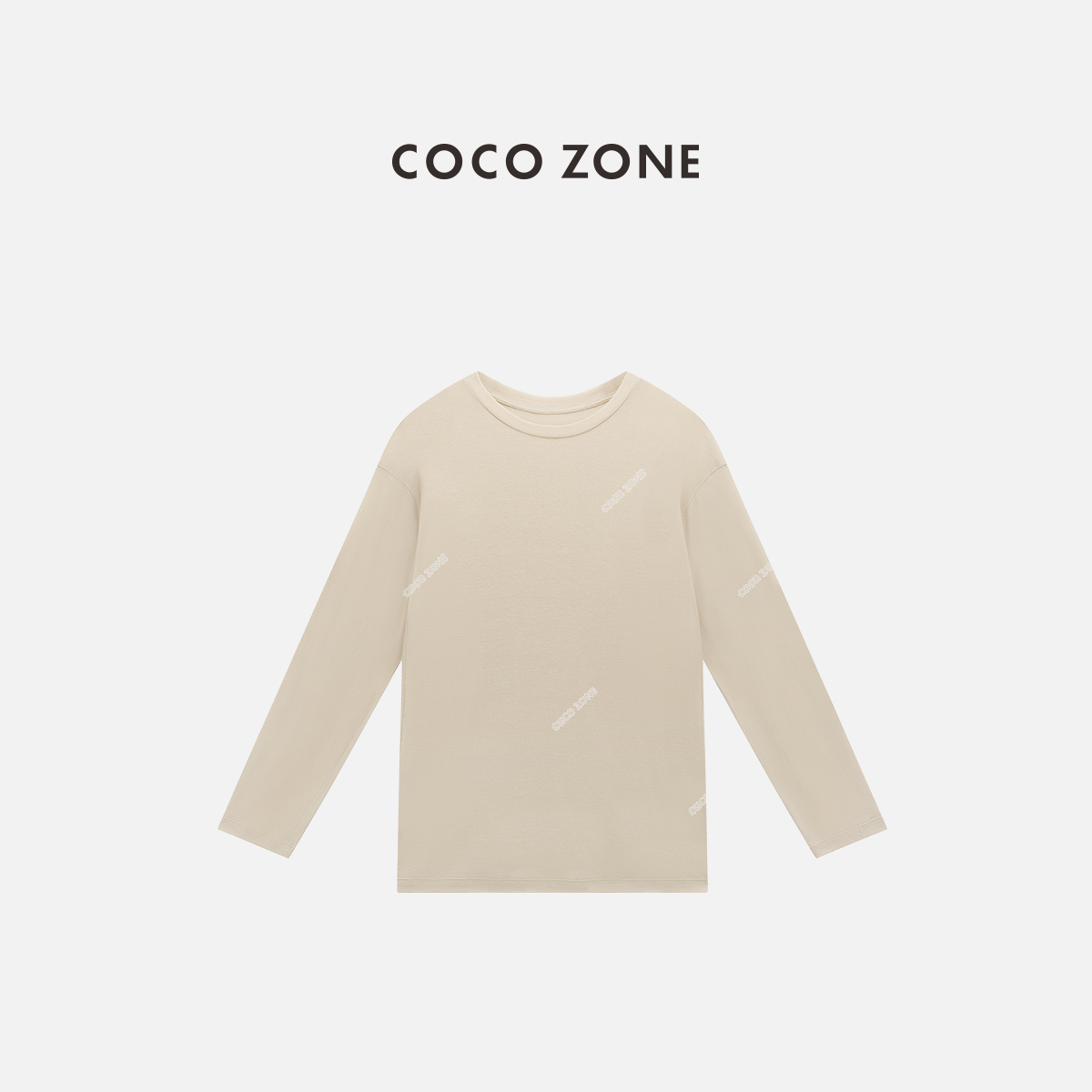 COCO ZONE "卡其冰感T“ 时尚圆领百搭长袖T恤纯色显瘦上衣CC1B1442