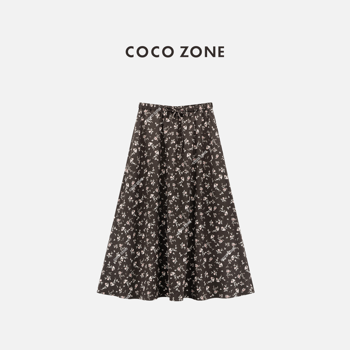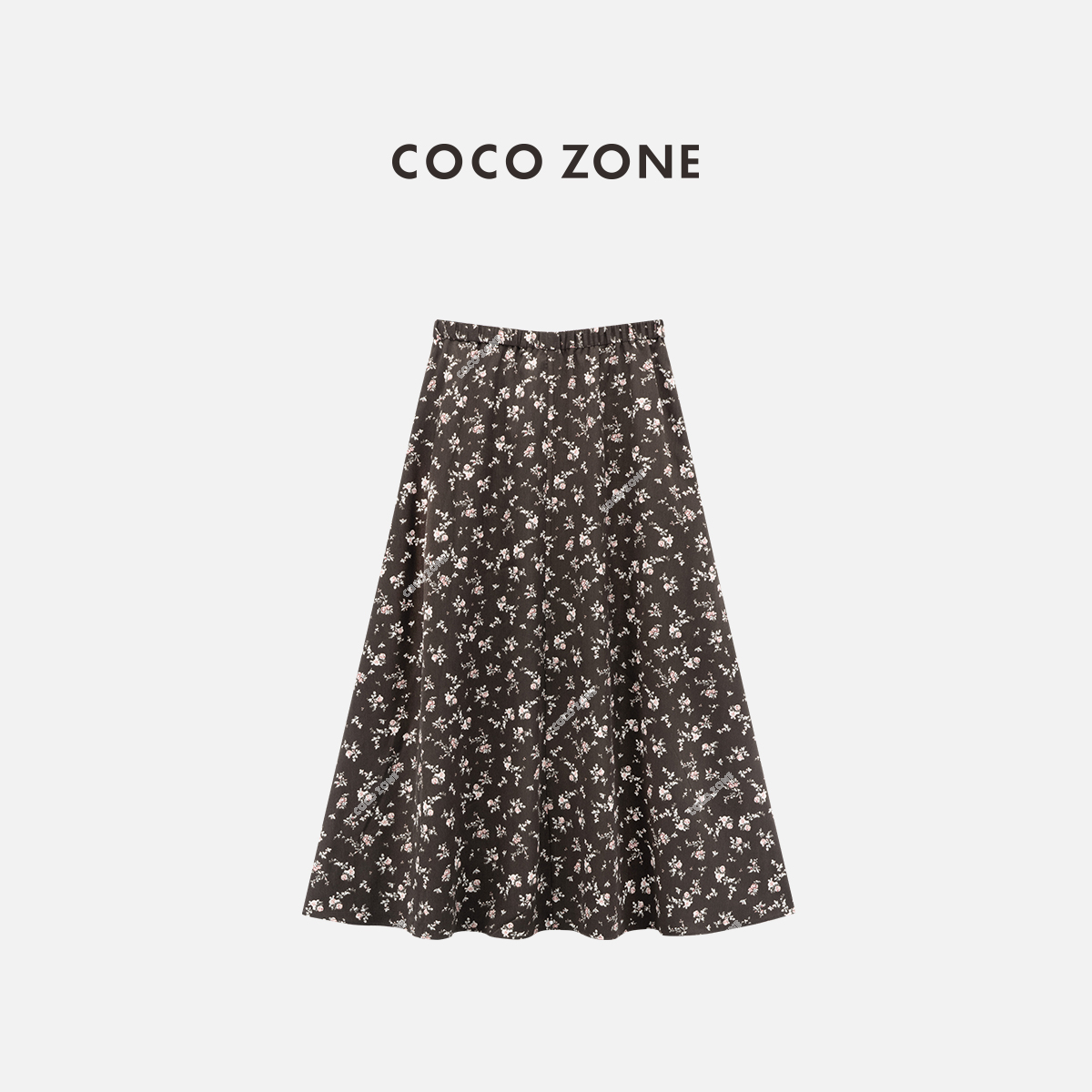 COCO ZONE "晚棠半裙”法式时尚碎花半身裙气质撞色中长裙CC2C1257