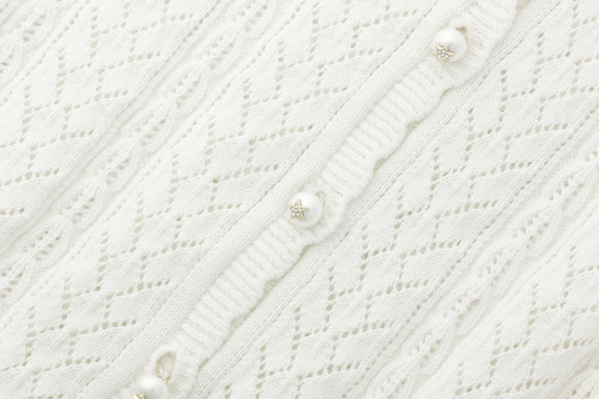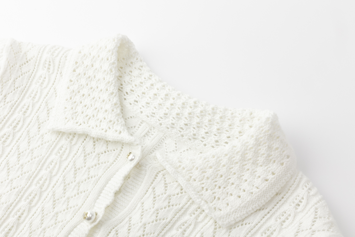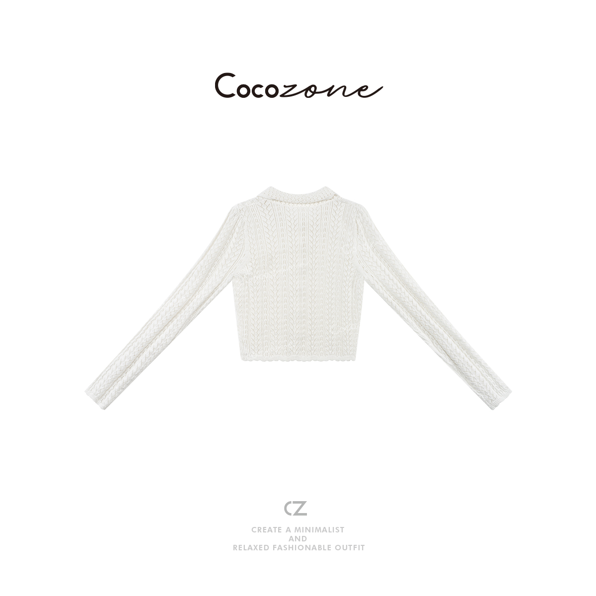 COCO ZONE 25年春季法式小众镂空翻领针织开衫ACD2A0194