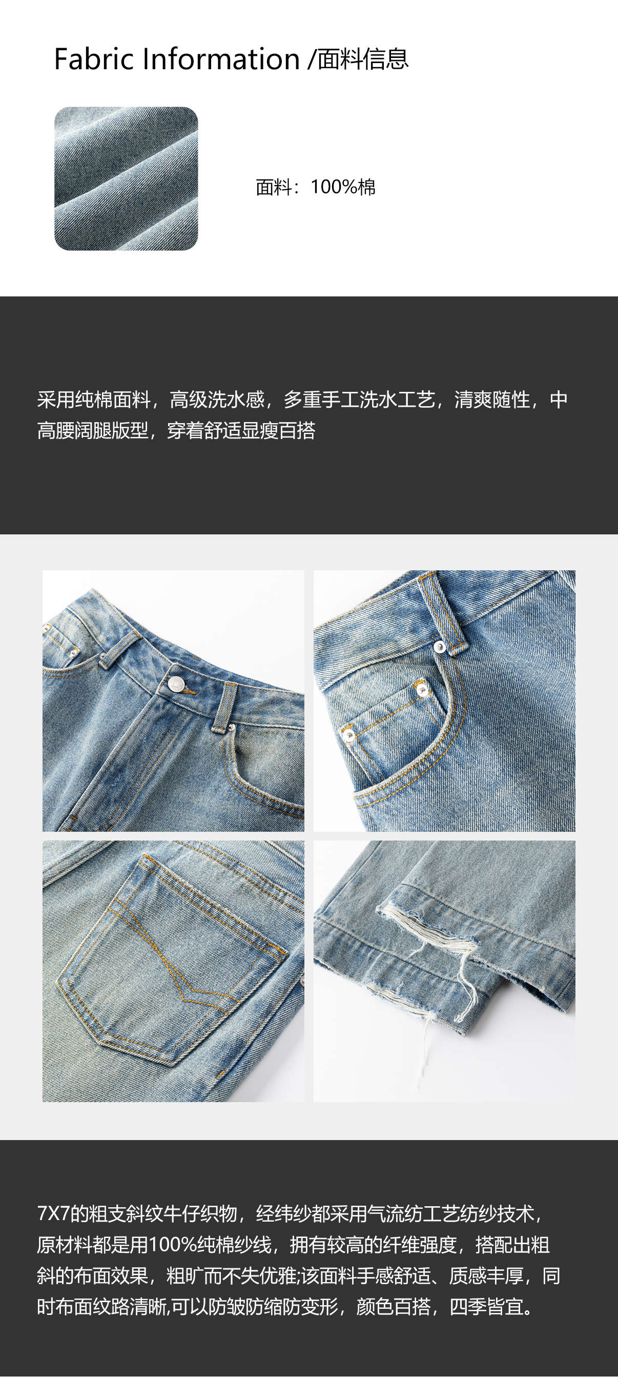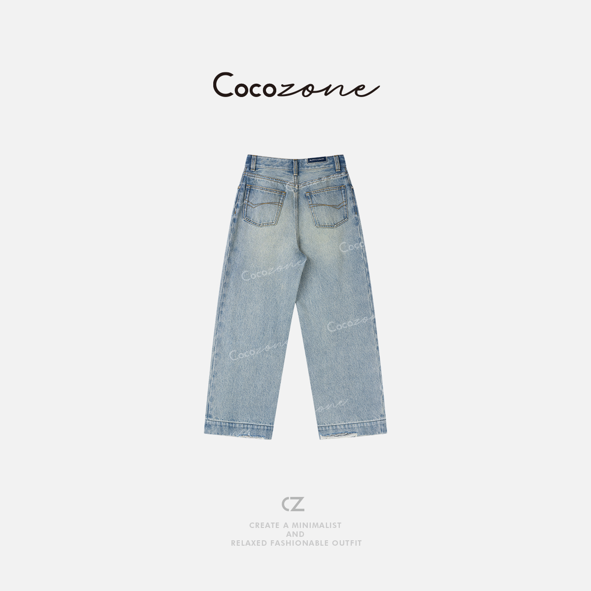 COCO ZONE 刘一一【100棉】洗水显瘦直筒做旧牛仔裤CD1A0502